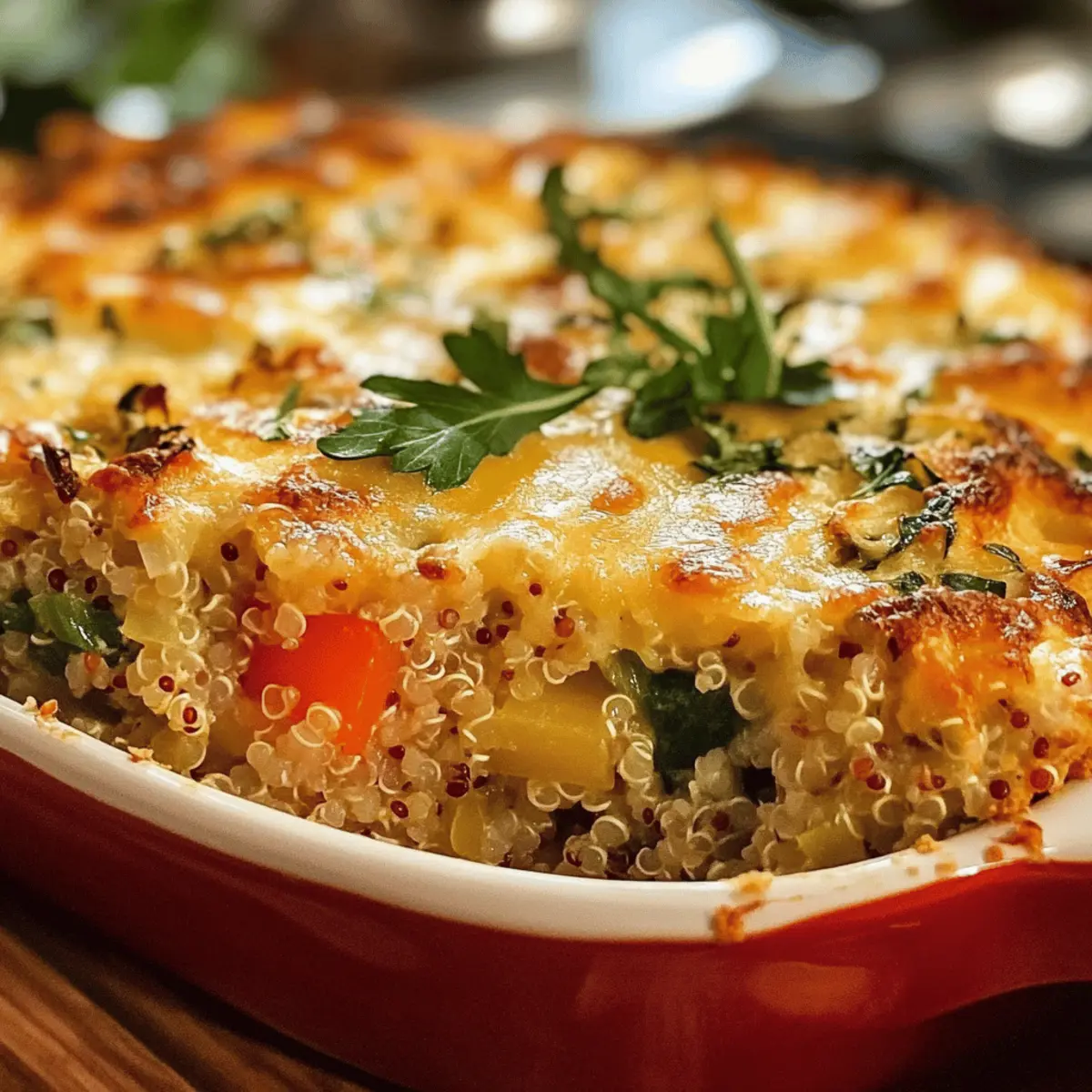 Während ich am Wochenende in meiner Küche stand, um eine neue Idee auszuprobieren, gesellten sich mir die Farben frischer Gemüse und die wohlriechenden Aromen von Kräutern. Nach ein paar Experimenten entpuppte sich mein Veggie-Packed Quinoa Casserole: eine nahrhafte und einfache Mahlzeit für alle, die auf selbstgemachte Köstlichkeiten stehen. Diese Quinoa casserole mit viel Gemüse ist perfekt für die hektischen Wochentage, denn sie lässt sich im Voraus zubereiten und ist dabei nicht nur gesund, sondern auch super vielseitig. Mit ihrer Kombination aus proteinreicher Quinoa und bunten Gemüse können Sie geschmacklich nichts falsch machen! Möchten Sie wissen, wie leicht und schmackhaft gesunde Küche sein kann? Warum ist dieses Rezept so besonders? Einzigartig in der Vielfalt: Diese Quinoa casserole mit viel Gemüse kombiniert verschiedene Gemüsesorten, die nicht nur lecker sind, sondern auch eine Fülle an Nährstoffen bieten. Einfach zuzubereiten: Mit nur wenigen Schritten können Sie eine reichhaltige und nahrhafte Mahlzeit kreieren, die sich perfekt für das Meal Prep eignet. Zeitersparnis garantiert: Perfekt für hektische Wochentage – einfach zubereiten, backen und genießen! Schmackhafte Aromen: Die Kombination aus zart geschmortem Gemüse und schmelzendem Käse verleiht diesem Gericht eine unwiderstehliche Geschmackstiefe. Kreative Anpassungen: Variieren Sie die Zutaten je nach Saison oder Vorlieben – Brokkoli oder grüne Erbsen passen hervorragend! Probieren Sie auch die Kombination mit einer frischen Beilage, wie einem einfachen grünen Salat, für ein komplettes Abendessen. Zutaten für die Quinoa Casserole mit viel Gemüse • Diese Quinoa casserole mit viel Gemüse ist nicht nur lecker, sondern auch einfach zuzubereiten. Für die Basis Quinoa – Flüssigkeitsaufnahme und proteinreiche Grundlage, was den Einsatz von Brühe besonders vorteilhaft macht. Gemüsebrühe – Sorgt für zusätzlichen Geschmack und Feuchtigkeit beim Kochen; Wasser ist eine tolle, wenn Sie es etwas milder mögen. Olivenöl – Ideal zum Anbraten des Gemüses und zum Verfeinern des Geschmacks; verwenden Sie einfach Ihr bevorzugtes Öl. Für das Gemüse Zwiebel – Gibt eine herzhafte Grundnote; versuchen Sie Schalotten oder Lauch für einen milderen Geschmack. Knoblauch – Fügt aromatische Tiefe hinzu; frischer Knoblauch ist immer die bessere Option! Paprika – Bringt Süße und Crunch, und jede Farbe ist willkommen! Zucchini – Erhöht das Volumen und den Nährstoffgehalt; gerne durch Sommersquash ersetzen. Cherrytomaten – Saftig und spritzig für den perfekten Geschmack; ersetzen Sie sie durch gewürfelte Tomaten, falls nötig. Babyspinat – Liefert eine extra Portion Grün; auch Grünkohl oder Mangold sind tolle Alternativen. Champignons – Sorgt für Umami und eine angenehme Textur; wählen Sie Ihre Lieblingssorte! Für die Würzung Getrockneter Oregano – Perfekte Ergänzung für das Geschmacksprofil; frischer Oregano bringt Frische, aber in anderer Menge. Getrockneter Basilikum – Für eine italienische Note; verwenden Sie frischen Basilikum, wenn möglich – einfach anpassen. Geräuchertes Paprika – Für zeitgenössischen, rauchigen Geschmack; normales Paprika tun es bei weniger Intensität. Rote Pfefferflocken – Optionale Würze; nach Geschmack hinzufügen oder reduzieren. Für die Cremigkeit und den Belag Tomatensauce – Für zusätzliche Feuchtigkeit und Geschmack; selbstgemacht ist großartig, aber auch Fertigsauce ist okay. Griechischer Joghurt – Für einen cremigen und leicht säuerlichen Geschmack; vegan? Einfach durch pflanzlichen Joghurt ersetzen! Mozzarella-Käse – Ideal zum Schmelzen und für die Cremigkeit; auch Cheddar gibt einen klasse Effekt! Parmesankäse – Für zusätzlichen nussigen Geschmack und eine goldene Kruste; bei Bedarf durch Hefeflocken ersetzen. Frische Petersilie oder Basilikum – Für den letzten Schliff und Frische nach dem Backen; andere frische Kräuter sind ebenfalls möglich. Schritt-für-Schritt-Anleitung für die Quinoa Casserole mit vielen Gemüseleckereien Step 1: Quinoa kochen Bringen Sie in einem mittleren Topf die Gemüsebrühe zum Kochen. Fügen Sie die abgespülte Quinoa hinzu und reduzieren Sie die Hitze, um sie 12-15 Minuten lang simmern zu lassen, bis die Flüssigkeit vollständig aufgesogen ist. Die Quinoa sollte nach dem Kochen fluffig sein. Mit einer Gabel auflockern und beiseite stellen. Step 2: Gemüse anbraten Erhitzen Sie in einer Pfanne bei mittlerer Hitze das Olivenöl und fügen Sie die gewürfelte Zwiebel und den gehackten Knoblauch hinzu. Sautieren Sie beides etwa 2 Minuten lang, bis sie weich und duftend sind. Geben Sie die Paprika, Zucchini, Champignons und Cherrytomaten in die Pfanne und braten Sie alles 5-7 Minuten lang, bis das Gemüse weich ist. Rühren Sie dann den Babyspinat und die getrockneten Kräuter ein. Step 3: Sauce zubereiten In einer separaten Schüssel vermischen Sie die Tomatensauce, den griechischen Joghurt und die roten Pfefferflocken. Rühren Sie gut um, bis alles gut vermischt und cremig ist. Diese Sauce wird die Quinoa Casserole mit vielen Gemüseleckereien bereichern und für eine köstliche Geschmacksbasis sorgen. Step 4: Ofen vorheizen und alles kombinieren Heizen Sie den Ofen auf 190°C vor. Kombinieren Sie die gekochte Quinoa, das angebratene Gemüse und die vorbereitete Sauce in einer großen Schüssel und vermengen Sie alles gründlich. Übertragen Sie die Mischung in eine gefettete Auflaufform (ca. 23×33 cm) und verteilen Sie sie gleichmäßig. Step 5: Käse hinzufügen und backen Bestreuen Sie die Quinoa Casserole mit Mozzarella- und Parmesan-Käse. Decken Sie die Form mit Aluminiumfolie ab und backen Sie das Gericht 20 Minuten lang. Entfernen Sie die Folie und backen Sie es für weitere 10 Minuten, bis der Käse blubbernd und goldbraun ist. Achten Sie darauf, dass der Käse gleichmäßig schmilzt. Step 6: Servieren und genießen Lassen Sie die Quinoa Casserole mit vi