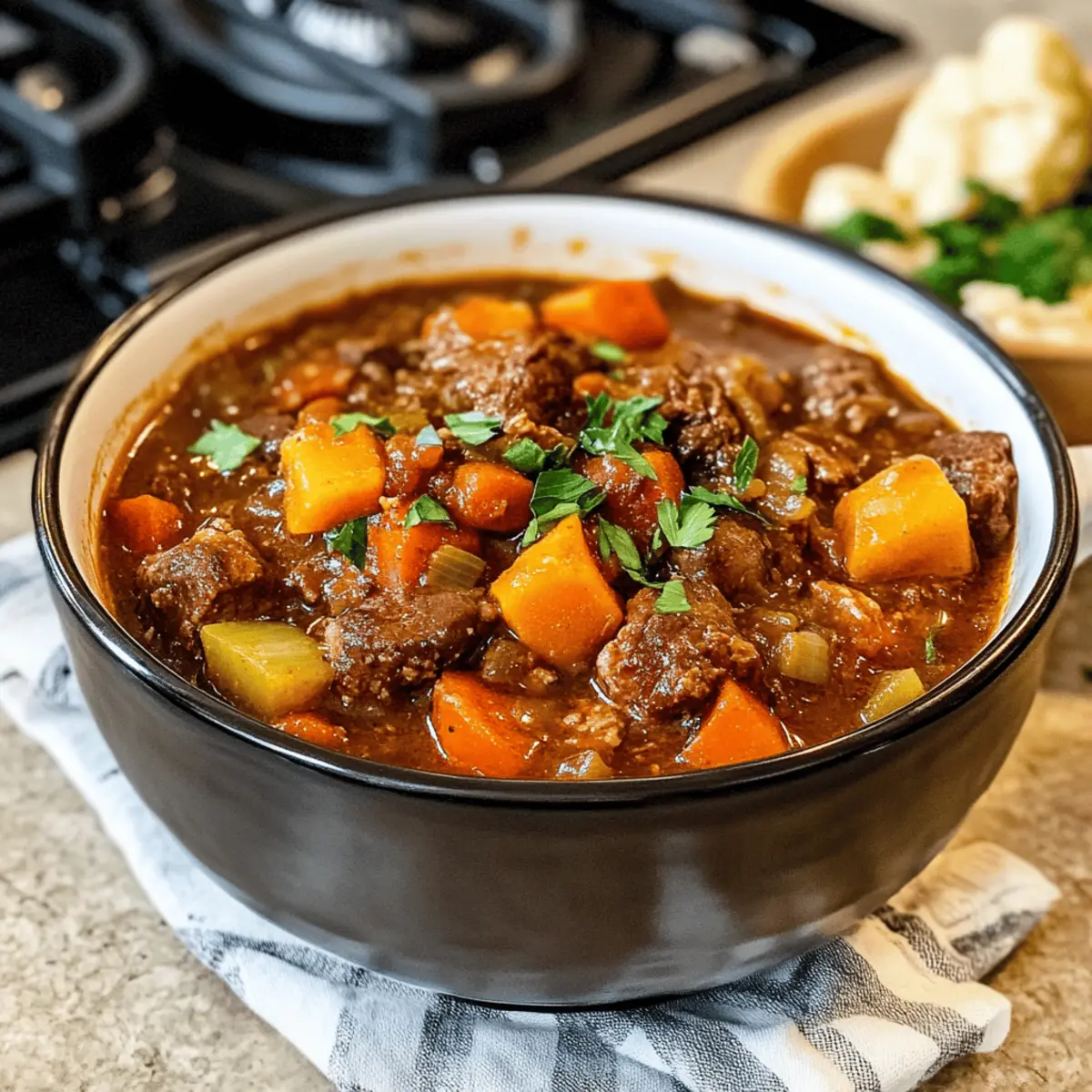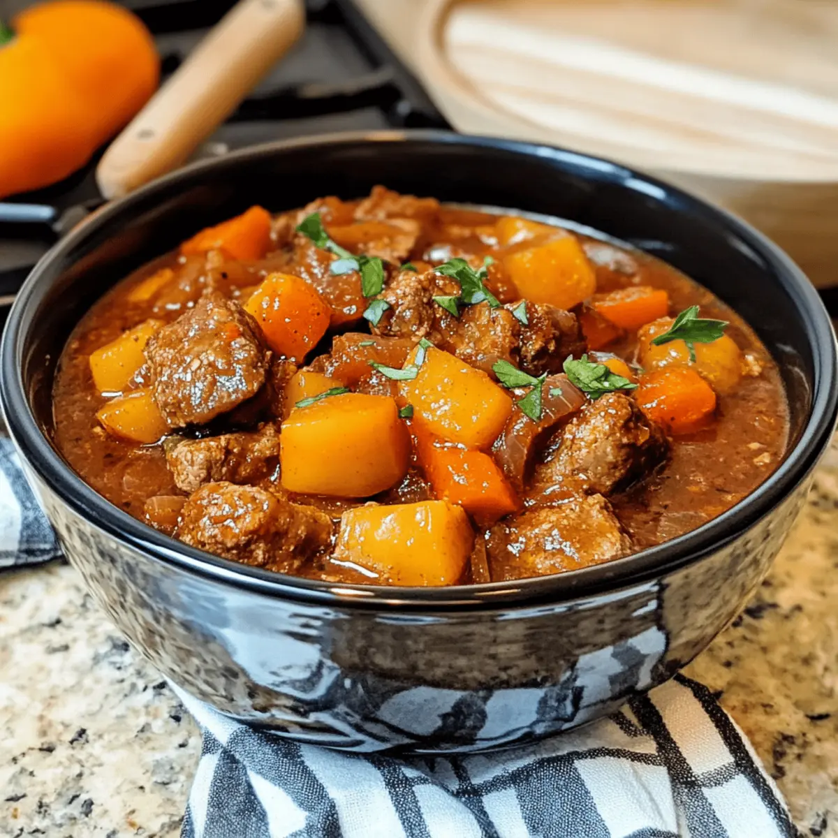 „Wow, das riecht ja unglaublich!“ hörte ich einen Freund aus der Küche rufen, während ich am Herd stand und die Zwiebeln schnitt. Es gibt einfach nichts Besseres, als den Duft von frisch gekochtem Essen, das Erinnerungen an Omas Küche weckt. Heute lade ich euch ein, mit mir den „Räubertopf nach Omas Rezept“ zuzubereiten – ein herzhaftes Eintopfgericht, das nicht nur Wärme und Geborgenheit schenkt, sondern auch ideal für gesellige Abende ist. Diese laktosefreie Köstlichkeit kombiniert zarte Fleischstücke und bunte Gemüse in einem einzigen Topf und bringt so nicht nur die ganze Familie zusammen, sondern spart auch Zeit beim Aufräumen. Ideal für stressfreie Unterhaltung und perfekt als tröstendes Abendessen an kalten Tagen. Welche Zutaten würdet ihr hinzufügen, um euren persönlichen Twist zu kreieren? Warum ist dieser Rezept so besonders? Vielfalt ist eine der größten Stärken dieses Gerichts. Mit der Möglichkeit, verschiedene Gemüsesorten und Fleischarten zu wählen, wird jeder Biss einzigartig. Einfachheit begeistert: Das Rezept benötigt nur grundlegende Kochkenntnisse und ist leicht nachzuvollziehen. Herzhafter Genuss: Die Kombination aus zartem Fleisch und aromatischen Gewürzen sorgt für einen köstlichen Geschmack, der alle begeistert. Familienfreundlich und perfekt für gemeinsames Essen, ist der Räubertopf eine tolle Wahl für gesellige Abende. Zudem kann er im Voraus zubereitet werden, sodass Ihr mehr Zeit mit euren Gästen verbringen könnt. Wenn du auf der Suche nach weiteren herzhaften Rezepten bist, schau dir auch laktosefreie Kochideen an, die für jeden Anlass geeignet sind! Räubertopf nach Omas Rezept Zutaten Für den Eintopf Zwiebel – sorgt für eine süße und aromatische Basis; verwende am besten gelbe oder weiße Zwiebeln. Knoblauchzehen – verleihen dem Gericht eine würzige Note; frisch ist ideal, vermeide Knoblauchpulver. Paprika, rot & gelb – bringt Süße und eine schöne Farbgebung; du kannst auch andere Paprikasorten wie Poblano für mehr Schärfe verwenden. Festkochende Kartoffeln – garantieren eine gute Struktur und Fülle; mehlige Kartoffeln solltest du vermeiden, da sie zu schnell zerfallen. Sonnenblumenöl – neutral im Geschmack, perfekt zum Anbraten; Olivenöl ist eine geschmackvolle Alternative. Gemischtes Hackfleisch – bietet eine reichhaltige, fleischige Textur; du kannst auch Rinder- oder Putenhack verwenden. Gewürfelter Schweinegulasch – sorgt für intensiven Geschmack; es ist optional, andere Fleischarten zu nutzen oder es für eine vegetarische Variante ganz wegzulassen. Paprikapulver, edelsüß – intensiviert den Geschmack und die Farbe; die Menge kannst du nach eigenem Geschmack anpassen. Tomatenmark – bindet den Eintopf und verleiht Umami; Tomatenpüree ist ein guter Ersatz. Mehl – hilfreich zum Andicken; kann für eine glutenfreie Variante weggelassen oder durch Maisstärke ersetzt werden. Rotwein – sorgt für Säure und Tiefe; ersetze ihn durch Gemüsebrühe oder Traubensaft, um das Gericht alkoholfrei zu halten. Gehackte Tomaten aus der Dose – liefern Feuchtigkeit und etwas Säure; frische Tomaten sind auch eine gute Wahl. Gemüsebrühe – verstärkt den Geschmack; selbstgemachte Brühe wird empfohlen. Salz & Pfeffer – unentbehrlich für die Würze; passe sie deinem Geschmack an. Schritt-für-Schritt-Anleitung für Räubertopf nach Omas Rezept Step 1: Zwiebel und Knoblauch vorbereiten Schäle und würfele die Zwiebeln und den Knoblauch. Achte darauf, dass die Zwiebeln gleichmäßig klein sind, damit sie gleichmäßig garen. Der Duft, der beim Schneiden entsteht, ist bereits ein Vorgeschmack auf das, was kommt. Dies dauert etwa 5 Minuten. Step 2: Paprika schneiden Wasche die Paprika gründlich, entferne den Stiel und die Kerne und schneide sie in kleine Stücke. Die bunten Farben bringen nicht nur Geschmack, sondern auch eine schöne visuelle Komponente in deinen Räubertopf nach Omas Rezept. Dies sollte weitere 5 Minuten in Anspruch nehmen. Step 3: Kartoffeln vorbereiten Schäle die festkochenden Kartoffeln und schneide sie in gleich große Würfel, etwa 2 cm groß. Diese Größe sorgt dafür, dass die Kartoffeln während des Kochens perfekt garen. Bereite dies in etwa 10 Minuten vor, da du gleich mit dem Kochen beginnen wirst. Step 4: Fleisch anbraten Erhitze das Sonnenblumenöl in einem großen Topf bei mittlerer Hitze. Gib das gemischte Hackfleisch hinein und brate es ca. 5-7 Minuten lang, bis es gleichmäßig braun ist. Rühre regelmäßig um, damit es nicht anbrät, und nimm das Fleisch dann aus dem Topf. Step 5: Gulasch anbraten In demselben Topf, in dem du das Hackfleisch zubereitet hast, gib den gewürfelten Schweinegulasch. Brate diesen für etwa 5-7 Minuten an, bis er ebenfalls eine schöne Bräunung hat. Dies intensiviert den Geschmack deines Räubertopfes. Step 6: Gemüse hinzufügen Füge nun die geschnittenen Zwiebeln, den Knoblauch, die Paprika und die Kartoffeln in den Topf hinzu. Sautiere alles für weitere 5 Minuten, bis die Zwiebeln glasig sind und das Gemüse leicht weich wird. Dies wird die Basis des Eintopfs perfekt abrunden. Step 7: Würzen und vermischen Würze das Gemüse mit Salz, Pfeffer und dem edelsüßen Paprikapulver. Rühre das angebratene Fleisch, Tomatenmark und das Mehl unter und lasse alles für etwa 2 Minuten braten, um die Gewürze und das Mehl gut zu verteilen. Step 8: Ablöschen und köcheln lassen Lösche die Mischung mit dem Rotwein ab und lasse ihn kurz aufkochen, damit der Alkohol verdampft. Füge dann die gehackten Tomaten und die Gemüsebrühe hinzu. Lasse alles zusammen für etwa 45-60 Minuten bei niedriger Hitze köcheln. Step 9: Abschmecken und servieren Vor dem Servieren solltest du den Räubertopf nach Omas Rezept probieren und nach Belieben nachwürzen. Serviere den Eintopf heiß und genieße die wohltuenden Aromen und die reiche Textur, die sich beim langen Kochen entwickelt haben. Was passt gut zu Räubertopf nach Omas Rezept? Es gi