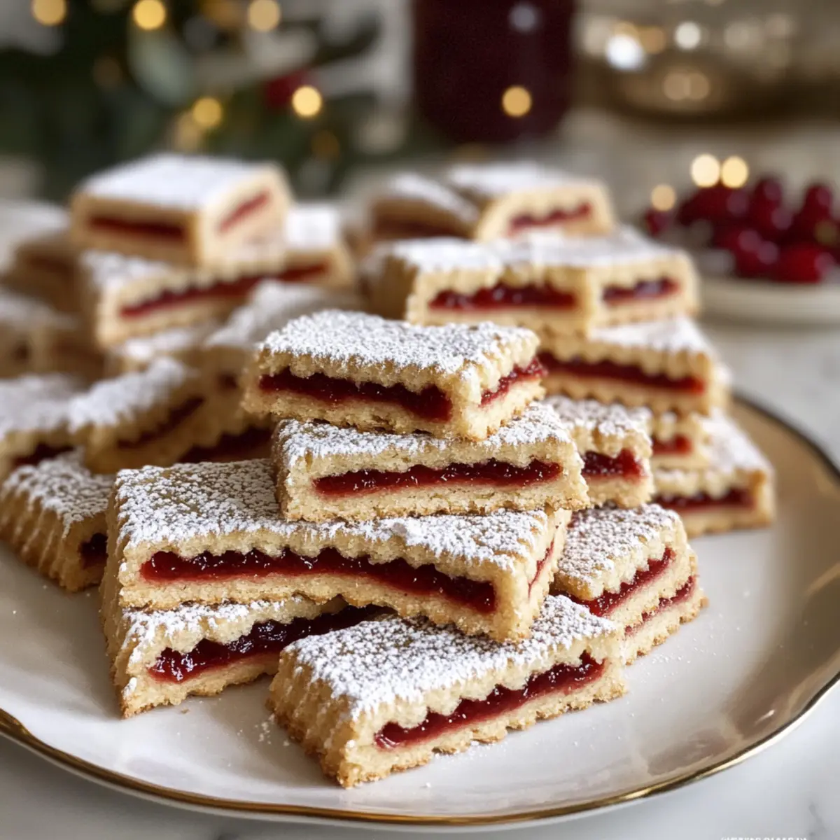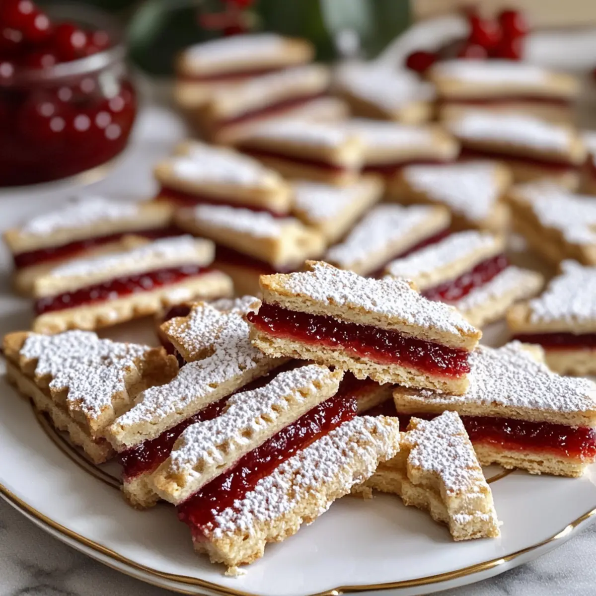 Ein zauberhafter Duft von frisch gebackenem Gebäck zieht durch die Küche und weckt Erinnerungen an die besinnliche Weihnachtszeit. Diese zarten Linzer Streifen sind nicht nur ein echter Hingucker auf jedem Plätzchenteller, sondern auch eine köstliche Kombination aus buttrigem Keks und herb-süßem Johannisbeergelee. Mit diesem Rezept für zarte Linzer Streifen gelingt dir das festive Backvergnügen im Handumdrehen! Das Beste daran? Sie sind schnell zubereitet und lassen sich wunderbar variieren – perfekt für all jene, die Liebhaber selbstgemachter Leckereien sind. Wer kann da schon widerstehen? Lass uns gemeinsam in die Welt der Weihnachtsbäckerei eintauchen und probiere sie selbst! Warum sind Linzer Streifen so besonders? Einfachheit pur: Diese Linzer Streifen sind im Handumdrehen zubereitet und erfordern nur grundlegende Backfähigkeiten. Köstliche Harmonie: Die Kombination aus buttrigem Keks und herzhaftem Johannisbeergelee sorgt für ein geschmackliches Erlebnis, das einfach begeistert. Vielfältige Variationen: Experimentiere mit verschiedenen Marmeladen wie Himbeere oder Sauerkirsche und finde deinen persönlichen Favoriten. Familientradition: Perfekt für das gemeinsame Backen mit der Familie – diese Plätzchen bringen alle zusammen und sorgen für glückliche Erinnerungen. Atemberaubender Anblick: Ihre ansprechende Zuckerstangenform macht sie zu einem echten Blickfang auf deinem Plätzchen-Teller und bringt Weihnachtsstimmung ins Zuhause. Entdecke auch unser einfaches Rezept für klassische Weihnachtsplätzchen für noch mehr Festtagsfreude! Rezept für zarte Linzer Streifen • Der perfekte Genuss für die Weihnachtszeit! Für den Teig Mehl – sorgt für Struktur; am besten normales Mehl verwenden. Puderzucker – verleiht Süße und Zartheit; keine Ersatzstoffe zu empfehlen, da die Textur darunter leidet. Bourbon-Vanillezucker – intensiviert den Geschmack; normaler Vanillezucker ist ein akzeptabler Ersatz. Salz – balanciert die Süße; ein kleiner Hauch genügt. Butter (kalt) – sorgt für eine flauschige Textur; Margarine kann verwendet werden, könnte jedoch den Geschmack verändern. Bio-Ei (Zimmertemperatur) – bindet die Zutaten; verwende ein großes Ei, kein direkter Ersatz empfohlen. Für die Füllung rotes Johannisbeergelee – bietet einen fruchtigen, herben Geschmack; farbige Marmelade wie Himbeere oder Sauerkirsche kann eine interessante Alternative sein. Für die Dekoration mehr Puderzucker zum Bestäuben – für den letzten Schliff; optional, sorgt aber für zusätzlichen Süßgeschmack. Schritt-für-Schritt-Anleitung für Rezept für zarte Linzer Streifen Step 1: Trockene Zutaten mischen In einer großen Schüssel das Mehl und den Puderzucker durch ein Sieb geben, um Klumpen zu vermeiden. Fügen Sie dann den Bourbon-Vanillezucker und das Salz hinzu und verrühren Sie alles gut miteinander, bis die trockenen Zutaten gleichmäßig verteilt sind. Step 2: Teig zubereiten Die kalte Butter in kleine Würfel schneiden und zur trockenen Mischung geben. Ein Bio-Ei bei Zimmertemperatur dazugeben und alles schnell mit einem Handrührgerät oder der Hand zu einem glatten Teig verkneten. Achten Sie darauf, nicht zu lange zu kneten, um die Zartheit des Teigs zu bewahren. Step 3: Teig kühlen Den fertigen Teig in Frischhaltefolie wickeln und für mindestens 30 Minuten in den Kühlschrank legen. Diese Kühlzeit ist wichtig, damit der Teig beim Ausrollen nicht zu weich wird und sich besser verarbeiten lässt. Optional kann der Teig auch über Nacht gekühlt werden. Step 4: Backofen vorheizen Den Backofen auf 175°C (Ober- und Unterhitze) vorheizen, während der Teig kühlt. So stellen Sie sicher, dass der Ofen die richtige Temperatur erreicht hat, wenn Sie bereit sind, die Linzer Streifen zu backen. Step 5: Teig ausrollen Nach dem Kühlen 2/3 des Teigs auf einem mit Backpapier belegten Backblech etwa 3 mm dick ausrollen. Den ausgerollten Teig mit einer Gabel mehrmals einstechen, um zu verhindern, dass er beim Backen aufgeht. Überflüssige Ränder können vorsichtig mit einem Messer abgeschnitten werden. Step 6: Vorbacken Das Backblech in den vorgeheizten Ofen schieben und die Teigplatte etwa 6 Minuten vorbacken, bis sie eine goldgelbe Farbe annimmt. Achten Sie darauf, dass der Teig nicht zu dunkel wird, da die Linzer Streifen sonst trocken werden. Step 7: Gelee auftragen Das rote Johannisbeergelee leicht erwärmen, damit es geschmeidiger wird. Nach dem Vorbacken gleichmäßig über die noch warme Teigplatte streichen. Achten Sie darauf, dass das Gelee in einer schönen Schicht verteilt wird, um den besten Geschmack zu erzielen. Step 8: Restlichen Teig zuschneiden Den verbleibenden Teig auf einer bemehlten Arbeitsfläche ausrollen und in 1,5 cm breite Streifen schneiden. Diese Streifen vorsichtig auf das Gelee legen, dabei darauf achten, dass zwischen den Streifen genügend Platz bleibt, um ein gleichmäßiges Backen zu gewährleisten. Step 9: Endgültig backen Die Linzer Streifen für weitere 10 Minuten backen, bis sie fest und leicht goldbraun sind. Der Keks sollte eine schöne, gleichmäßige Farbe haben, um die perfekte Konsistenz zu gewährleisten. Step 10: Schneiden und abkühlen lassen Nach dem Backen die Linzer Streifen etwas abkühlen lassen, bevor Sie sie in gleichmäßige Streifen schneiden. Vor dem Servieren großzügig mit Puderzucker bestäuben, um einen süßen Abschluss zu erzielen. Rezept für zarte Linzer Streifen: Variationen und Alternativen Entdecke, wie du diese köstlichen Linzer Streifen ganz nach deinem Geschmack anpassen kannst! Fruchtige Vielfalt: Tausche das rote Johannisbeergelee gegen andere Fruchtmarmeladen wie Himbeere oder Aprikose für neue Aromen. Nussige Note: Füge gemahlene Mandeln oder Haselnüsse zum Teig hinzu, um eine leckere, nussige Textur zu erhalten. Kakao-Kick: Gib einen Esslöffel Kakao zum Teig, um schokoladige Linzer Streifen zu zaubern, die alle Schokoladenliebhaber begeistern. Extras für mehr Crunch: Mische ein