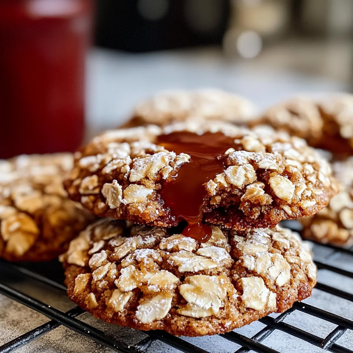 Eines der schönsten Dinge an der Weihnachtszeit ist das Backen von Keksen. Während man in der Küche hantiert, verbreitet sich der verlockende Duft von frisch gebackenem Gebäck und weckt die besten Erinnerungen. Heute teile ich mit euch ein Rezept für die saftigen Karamell-Haferflocken-Cookies, die nicht nur schnell zubereitet sind, sondern auch mit einem überraschenden flüssigen Karamellkern auftrumpfen. Diese Kekse sind genau das Richtige, um den kleinen Hunger zu stillen oder Gäste zu beeindrucken – perfekt für die festlichen Tage! Lasst euch von der Kombination aus weichen, zähen Haferflocken und geschmolzenem Karamell verzaubern. Wer kann da schon widerstehen? Seid ihr bereit, in die Welt der köstlichen Plätzchen einzutauchen? Warum sind diese Kekse so besonders? Einzigartiger Genuss: Diese saftigen Karamell-Haferflocken-Cookies vereinen zähe Textur mit einem flüssigen Karamellkern, der jeden Biss zu einem Erlebnis macht. Einfache Zubereitung: Mit wenigen Zutaten und unkomplizierten Schritten gelingen sie selbst Anfängern mühelos. Vielseitigkeit: Ihr könnt die Schokoladensorte variieren oder Nüsse hinzufügen, um euren persönlichen Twist zu kreieren. Perfekt für Feste: Ob zu Weihnachten oder einfach zum Naschen – diese Cookies sind der Hit auf jeder Veranstaltung. Sie sind eine wunderbare Ergänzung zu einer Tasse Kaffee oder Tee. Schnelle Knusprigkeit: Bäckt sie kurz, um die perfekte Mischung aus knusprigen Rändern und einem weichen Inneren zu erzielen! Experimentiert auch mit diesem Weihnacht in Rot-Weiss: Rote Samt Kekse Rezept, um eine festliche Vielfalt zu genießen! Karamell-Haferflocken-Cookies Zutaten Für den Teig • Butter (120 g, zimmerwarm) – sorgt für die cremige Basis und Zartheit der Kekse. Tipp: Verwende Zimmertemperatur für besseres Mischen. • Brauner Zucker (100 g) – fügt Tiefe und Feuchtigkeit hinzu. Tipp: Dunkler Rohrzucker verstärkt den Geschmack. • Weißer Zucker (50 g) – trägt zur Süße und leichten Textur bei. • Ei (1 großes) – bindet die Zutaten und sorgt für Feuchtigkeit. • Vanilleextrakt (1 Teelöffel) – verbessert das Geschmacksprofil mit Wärme. • Weizenmehl (150 g, Typ 405 oder 550) – sorgt für Struktur, ohne die Kekse trocken zu machen. • Natron (1/2 Teelöffel) – wirkt als Backtriebmittel für die gewollte Textur. • Salz (1/4 Teelöffel) – balanciert die Süße und hebt die Aromen hervor. • Zarte Haferflocken (150 g) – bieten Zähe und einen nussigen Geschmack. Hinweis: Schnelle Haferflocken sind optimal für die Textur. Für den Karamellkern • Karamellbonbons (15-20 Stück) oder Karamellcreme (150 g) – die Hauptzutat, die eine klebrige Überraschung bietet. Tipp: Vor dem Backen kühlen. Für das Topping • Zartbitterschokolade (50 g) – für zusätzlichen Geschmack und optische Anziehungskraft. Optional: Kann auch durch weiße oder Vollmilchschokolade ersetzt werden. Schritt-für-Schritt-Anleitung für Saftige Karamell-Haferflocken-Cookies Step 1: Karamell vorbereiten Zuerst kühlst du die Karamellbonbons oder die Karamellcreme für mindestens 15 Minuten im Kühlschrank. Dies ist entscheidend, um sicherzustellen, dass sie während des Backens schön flüssig bleiben. Bereite ein Backblech mit Backpapier vor, um es später zur Aufnahme der Kekse zu nutzen. Step 2: Teig mischen In einer großen Schüssel die zimmerwarme Butter, den braunen Zucker und den weißen Zucker mit einem Handmixer für 3-4 Minuten cremig schlagen, bis die Mischung leicht und fluffig ist. Achte darauf, dass keine Klumpen mehr sichtbar sind; die Masse sollte eine helle, luftige Konsistenz haben. Step 3: Nasse Zutaten hinzufügen Jetzt das große Ei und den Vanilleextrakt zur Buttermischung geben. Gut vermischen, bis alles gerade so verbunden ist. Vermeide es, zu lange zu rühren, damit der Teig seine luftige Struktur behält und die saftigen Karamell-Haferflocken-Cookies zart bleiben. Step 4: Trockene Zutaten kombinieren In einer separaten Schüssel das Weizenmehl, Natron und Salz mit einem Schneebesen gut vermischen. Diese trockenen Zutaten langsam zur nassen Mischung geben und nur so lange mixen, bis alles gerade zusammenkommt. So bleibt die Struktur der Kekse optimal erhalten. Step 5: Haferflocken hinzufügen Die zarten Haferflocken vorsichtig unter den Teig heben, um sicherzustellen, dass sie gleichmäßig verteilt sind. Dies gibt den Keksen ihre charakteristische Textur und den nussigen Geschmack, der die saftigen Karamell-Haferflocken-Cookies auszeichnet. Step 6: Kekse formen Nimm einen Esslöffel des Teiges, forme ihn flach und lege ein Stück Karamell in die Mitte. Den Teig um das Karamell wickeln und zu einer Kugel formen. Achte darauf, dass das Karamell gut eingepackt ist, damit es beim Backen nicht ausläuft. Step 7: Backen Heize den Ofen auf 180°C vor. Die geformten Kekse gleichmäßig auf das vorbereitete Backblech legen und mit etwas Abstand zueinander anordnen. Backe die Kekse 10-12 Minuten lang, bis die Ränder leicht goldbraun und die Mittelteile noch leicht unterbacken aussehen. Step 8: Abkühlen lassen Nach dem Backen die Kekse für 5 Minuten auf dem Backblech auskühlen lassen, bevor du sie auf ein Kuchengitter transferierst. Dies hilft, dass die Kekse ihre Form behalten. Nach dem Abkühlen kannst du geschmolzene Zartbitterschokolade über die Kekse träufeln, um zusätzlichen Geschmack und eine ansprechende Optik zu erhalten. Variationen & Alternativen Lasst eurer Kreativität freien Lauf und passt das Rezept nach eurem Geschmack an! Zucker-Alternativen: Verwende Kokosblütenzucker statt weißem und braunem Zucker für einen karamellartigen Geschmack. Dairy-Free: Ersetze die Butter durch pflanzliche Margarine oder Kokosöl, um eine vegane Variante zu kreieren. Glutenfrei: Nutze glutenfreies Mehl und Haferflocken, um diese Kekse kinderleicht glutenfrei zu genießen. Zusätzliche Aromen: Füge einen Teelöffel Zimt oder Muskatnuss hinzu, um einen warmen, würzigen Unterton zu erzeugen. 