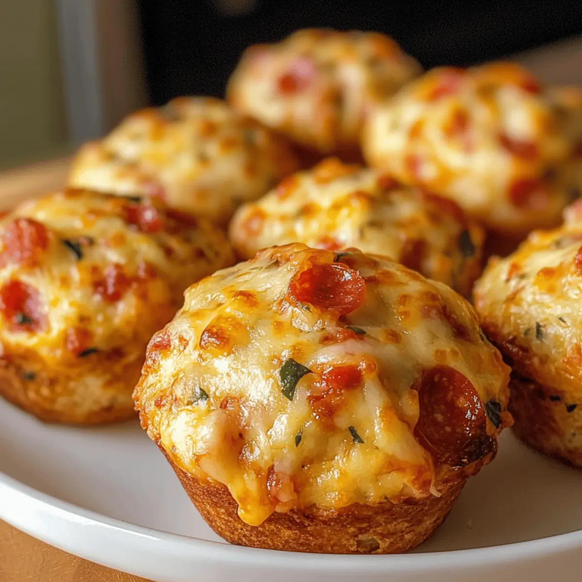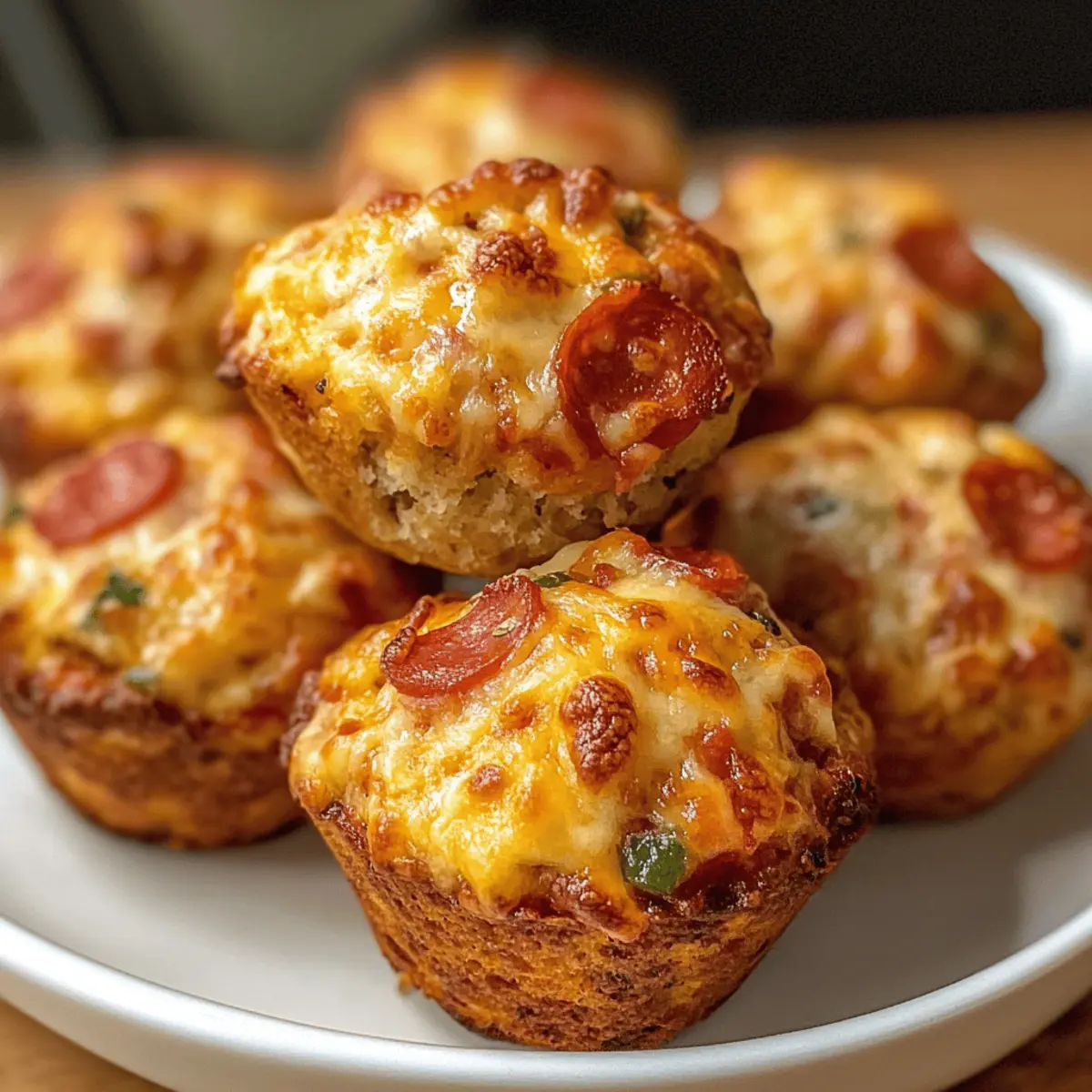 In der gemütlichen Ecke meiner Küche habe ich kürzlich eine Sammlung von Snacks entdeckt, die einfach unwiderstehlich sind. Diese saftigen Pizza-Muffins kombinieren das Beste aus zwei Welten: Die Gelassenheit von Muffins und den herzhaften Geschmack von frisch gebackenem Pizza-Teig. Sie sind schnell zubereitet und perfekt als Snack für jedes Fest oder einfach als kleiner Genuss für zwischendurch. Egal, ob beim Picknick mit Freunden oder für einen gemütlichen Abend zu Hause – diese Pizza-Muffins sind der ideale Begleiter. Neugierig, wie du diese köstlichen kleinen Häppchen zaubern kannst? Lass uns gleich loslegen! Warum sind diese Pizza-Muffins so besonders? Einfachheit pur: Die Zubereitung dieser Muffins ist unkompliziert und schnell, perfekt für alle, die wenig Zeit haben. Herzhafter Genuss: Jede Bissen ist mit saftigen Zutaten wie Salami und geschmolzenem Käse gefüllt, die für einen unverwechselbaren Geschmack sorgen. Vielseitig einsetzbar: Egal ob als Snack für die Party oder als leckeres Abendessen – diese Muffins passen zu jeder Gelegenheit. Selbstgemacht ist besser: Im Vergleich zu fettigem Fast Food bietet dieses Rezept eine gesunde, hausgemachte Alternative, die garantiert begeistert. Ein Hit bei Jung und Alt: Ihre köstliche Kombination aus vertrauten Aromen macht sie zum perfekten Snack für die ganze Familie. Erlebe die Freude der Zubereitung mit saftigen Muffins! Saftige Muffin-Zutaten • Diese herzhaften Pizza-Muffins sind einfach himmlisch und perfekt für jede Gelegenheit. Für den Teig Mehl (250 g) – sorgt für Struktur und Bindung; verwende Weizenmehl für beste Ergebnisse. Backpulver (2 TL) – lässt die Muffins schön aufgehen; achte darauf, dass es frisch ist. Salz (1/2 TL) – verbessert den Geschmack; Meersalz ist eine tolle Alternative. Pfeffer (1/4 TL) – fügt eine milde Schärfe hinzu; schwarzer Pfeffer wird empfohlen. Getrocknete italienische Kräuter (1 TL) – bringt aromatische Pizzanoten; Italienische Kräutermischung eignet sich bestens. Für die Füllung Salami (100 g) – sorgt für einen herzhaften, fleischigen Geschmack; Mini-Salami oder gewürfelter Pepperoni sind gute Alternativen. Paprika (100 g) – bringt Süße und Farbe; nutze eine Kombination aus roten, gelben oder grünen Paprika. Geraspelter Käse (150 g) – sorgt für Cremigkeit und verstärkt den Geschmack; Gouda oder Mozzarella sind empfehlenswert. Für die Bindung Ei (1) – verbindet die Zutaten; ein Flax-Ei kann für eine vegane Variante verwendet werden. Milch (150 ml) – feuchtet den Teig an; pflanzliche Milch kann für laktosefreie Alternativen verwendet werden. Pflanzenöl (60 ml) – trägt zur Feuchtigkeit und Reichhaltigkeit bei; geschmolzene Butter ist ebenfalls eine gute Wahl. Schmand oder Naturjoghurt (100 g) – sorgt für extra Feuchtigkeit und einen leichten Geschmack; Sauerrahm kann als Alternative verwendet werden. Erlebe, wie einfach und befriedigend diese saftigen Pizza-Muffins zuzubereiten sind! Schritt-für-Schritt-Anleitung für Saftige Pizza-Muffins Step 1: Ofen vorheizen Heize den Ofen auf 180°C (350°F) mit Ober-/Unterhitze vor. Bereite ein Muffinblech vor, indem du es entweder mit Papierförmchen auskleidest oder gut einfettest. Dies verhindert, dass die Muffins kleben bleiben, und sorgt dafür, dass sie gleichmäßig backen. Step 2: Trockene Zutaten vermischen In einer großen Schüssel Mehl, Backpulver, Salz, Pfeffer und getrocknete italienische Kräuter gut vermengen. Rühre die Mischung mit einem Schneebesen oder einem Löffel durch, bis alle Zutaten gleichmäßig verteilt sind. Achte darauf, keine Klumpen zu haben, damit die Saftigen Pizza-Muffins gut aufgehen können. Step 3: Füllung hinzufügen Gib die gewürfelte Salami, die Paprika und 100 g geraspelten Käse in die Schüssel mit den trockenen Zutaten. Mische alles vorsichtig durch, bis die Füllung gleichmäßig im Teig verteilt ist. Dieser Schritt sorgt dafür, dass jeder Bissen den köstlichen Geschmack der Pizza-Salami und der frischen Paprika erhält. Step 4: Nasse Zutaten vermengen In einer separaten Schüssel das Ei, die Milch, das Pflanzenöl und den Schmand oder Naturjoghurt gut verquirlen. Diese Mischung sorgt dafür, dass die Saftigen Pizza-Muffins die richtige Konsistenz erhalten. Achte darauf, dass alles gut vermischt ist, bevor du es zum Teig hinzufügst. Step 5: Teig leicht vermengen Gieße die nassen Zutaten in die Schüssel mit den trockenen und mische alles vorsichtig mit einem Löffel oder einem Gummispatel, bis es gerade so verbunden ist. Mische nicht zu lange, damit die Pizza-Muffins fluffig bleiben. Ein klumpiger Teig ist genau das, was du möchtest. Step 6: Muffinblech füllen Verteile den Teig gleichmäßig in die vorbereiteten Muffinförmchen, bis sie zu etwa zwei Dritteln gefüllt sind. Streue die restlichen 50 g geraspelten Käse gleichmäßig auf die Muffins. Dieser Käse wird während des Backens geschmolzen und trägt zur köstlichen Kruste bei. Step 7: Backen und beobachten Backe die Muffins im vorgeheizten Ofen für etwa 20-25 Minuten, bis sie goldbraun sind und ein Zahnstocher, der in die Mitte gesteckt wird, sauber herauskommt. Halte die Muffins im Auge, um ein Überbacken zu vermeiden. Sie sollten weich und leicht federnd sein, wenn du sie leicht drückst. Step 8: Abkühlen lassen Lass die Muffins nach dem Backen kurz in der Form abkühlen, etwa 5 Minuten. Danach nimm sie vorsichtig heraus und lege sie auf einen Kuchengitterrost, damit sie vollständig abkühlen können. Diese Schritt sorgt dafür, dass die Muffins ihre Form behalten und nicht matschig werden, bevor du sie servierst. Expertentipps für saftige Pizza-Muffins Teig nicht übermischen: Achte darauf, den Teig nur so lange zu mischen, bis alle Zutaten gerade verbunden sind, um die Muffins fluffig zu halten. Frische Zutaten verwenden: Stelle sicher, dass dein Backpulver und die Gewürze frisch sind, um den besten Geschmack und die perfekte Konsistenz der saftigen Muffins zu gewährle