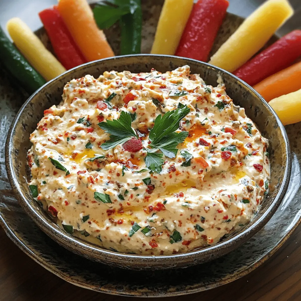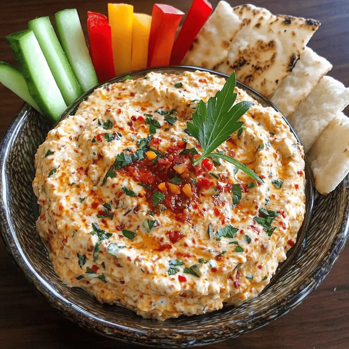 Es war einmal ein entspannter Abend in meiner kleinen Küche, als ich auf die Idee kam, einen perfekten Snack für den nächsten Filmabend zu kreieren. Während ich sanft den Schafskäse in eine Schüssel bröselte, schwebte der verführerische Duft von Gewürzen durch den Raum. Mein Scharfer Schafskäse Dip ist mehr als nur ein einfacher Appetizer; er vereint die cremige Textur des Schafskäses mit einem Kick von frischen Chilischoten und einer Prise zesty Zitronensaft. In nur 15 Minuten zubereitet, ist er nicht nur ein echter Hingucker für jede Party, sondern auch komplett anpassbar, sodass du die Schärfe ganz nach deinem Geschmack variieren kannst. Ob beim gemütlichen Beisammensein mit Freunden oder als besonders köstlicher Snack für dich selbst – dieser Dip wird garantiert die Geschmäcker begeistern! Bist du bereit, mehr über dieses einfache, aber genussvolle Rezept zu erfahren? Warum solltest du diesen Dip ausprobieren? Köstliche Geschmacksexplosion: Dieser Scharfe Schafskäse Dip bietet eine unwiderstehliche Mischung aus cremigem Schafskäse und würzigen Aromen, die jeden Gaumen erfreuen. Schnell zubereitet: In nur 15 Minuten steht dieser köstliche Dip auf dem Tisch – perfekt für spontane Zusammenkünfte! Anpassbare Schärfe: Du entscheidest, wie scharf er wird! Verwende weniger Chilischoten für eine mildere Variante oder erhöhe die Menge für den Extra-Kick. Vielseitige Begleiter: Egal, ob mit Gemüsesticks oder knusprigem Pita-Brot, dieser Dip passt zu vielen Snacks und wird deine Gäste begeistern. Gesund und nahrhaft: Mit hochwertigen Zutaten passt dieser Dip hervorragend in eine mediterrane Ernährung und ist gleichzeitig eine proteinreiche Snackoption. Probier auch andere Variationen aus, wie zum Beispiel verschiedene Kräuter hinzufügen! Scharfer Schafskäse Dip Zutaten • In dieser Kategorie findest du alles, was du für deinen Scharfen Schafskäse Dip benötigst! Für die Basis Schafskäse (Feta) – sorgt für die cremige Konsistenz und den herzhaften Geschmack; kann durch Ziegenkäse ersetzt werden. Griechischer Joghurt – verleiht dem Dip zusätzliche Cremigkeit und einen Hauch von Säure; auch saure Sahne ist ein geeigneter Ersatz. Olivenöl – bringt Reichtum und hilft, die Zutaten zu verbinden; qualitativ hochwertiges natives Olivenöl extra empfohlen. Für die Würze Frische rote Chilischoten – bringt eine angenehme Schärfe; weniger verwenden oder weglassen, wenn du es milder magst. Knoblauchzehe – verleiht Tiefe und Geschmack; gerösteter Knoblauch kann für eine süßere Note genutzt werden. Paprikapulver – sorgt für eine rauchige oder süße Note; geräuchertes Paprikapulver kann den Geschmack verstärken. Kreuzkümmel – fügt Wärme und Erdigkeit hinzu; Kreuzkümmelpulver ist ebenfalls ein guter Ersatz. Saft von 1 Zitrone – hellt die Aromen auf; Lime Juice kann ebenfalls verwendet werden. Salz und Pfeffer – optimiert den Geschmack; nach Geschmack anpassen. Zum Garnieren Frische Kräuter (z.B. Petersilie oder Dill) – dienen zur Dekoration; können auch durch Schnittlauch oder Koriander ersetzt werden. Zum Servieren Gemüsesticks oder Pita-Brot – ideal zum Dippen; auch eine Auswahl an Crackern ist möglich. Viel Spaß beim Zubereiten deines Scharfen Schafskäse Dips! Schritt-für-Schritt-Anleitung für Scharfer Schafskäse Dip Step 1: Zutaten vorbereiten Schäle die Knoblauchzehe und hacke sie fein. Wasche die roten Chilischoten, entferne die Kerne (wenn gewünscht) und schneide sie ebenfalls klein. Brösele den Schafskäse in eine große Schüssel. Achte darauf, dass alle Zutaten gut vorbereitet sind, um das Zubereiten zu erleichtern. Step 2: Basis mischen Mashe den Schafskäse mit einer Gabel in der großen Schüssel, bis er eine krümelige Konsistenz erreicht. Dies dauert etwa 1-2 Minuten. Achte darauf, dass keine großen Stücke übrig bleiben, und bereite so die cremige Grundlage für deinen Scharfen Schafskäse Dip vor. Step 3: Zutaten kombinieren Füge den griechischen Joghurt zum Schafskäse hinzu und rühre alles mit einem Löffel oder einem Handmixer gut durch, bis die Mischung glatt und cremig ist. Dieser Schritt ist entscheidend für die Textur des Dips und sollte weitere 2 Minuten in Anspruch nehmen, um die Komponenten richtig zu vermengen. Step 4: Aromen einarbeiten Gib das Olivenöl, die gehackte Knoblauchzehe, die Chilischoten, das Paprikapulver und den Kreuzkümmel zu der Mischung. Füge auch den frisch gepressten Zitronensaft hinzu. Rühre alles gründlich für etwa 1-2 Minuten, bis sich die Aromen gut verbunden haben und der Dip intensiv duftet. Step 5: Würzen Schmecke den Dip ab und füge nach Belieben Salz und Pfeffer hinzu, um den Geschmack zu optimieren. Du solltest die Gewürze gut vermischen und bei Bedarf nochmals abschmecken. Dies kann bis zu einer Minute dauern, um sicherzustellen, dass der Scharfe Schafskäse Dip perfekt gewürzt ist. Step 6: Konsistenz anpassen Sollte die Mischung zu dick sein, kannst du etwas mehr Joghurt oder einen Spritzer Wasser hinzufügen, um die gewünschte Konsistenz zu erreichen. Rühre gut um und halte einen Augenblick inne, um das Ergebnis zu beurteilen. Wenn du mehr Schärfe möchtest, füge einfach zusätzliche Chilischoten oder Paprika hinzu. Step 7: Servieren Fülle den Dip in eine Servierschüssel und garniere ihn mit frischen Kräutern, wie Petersilie oder Dill. Serviere den Scharfen Schafskäse Dip mit Gemüsesticks oder Pita-Brot. Dieser letzte Schritt sorgt dafür, dass dein Dip sowohl ansprechend als auch lecker aussieht! Expert Tips für Scharfer Schafskäse Dip Käsewahl: Achte auf die Qualität des Schafskäses. Hochwertiger Käse sorgt für einen cremigen und geschmackvollen Dip. Schärfe kontrollieren: Beginne mit weniger Chilischoten und taste dich an deine bevorzugte Schärfe heran, um den perfekten Scharfen Schafskäse Dip zu kreieren. Konsistenz: Wenn der Dip zu dick ist, füge schrittweise mehr Joghurt oder einen Spritzer Wasser hinzu und mische gu