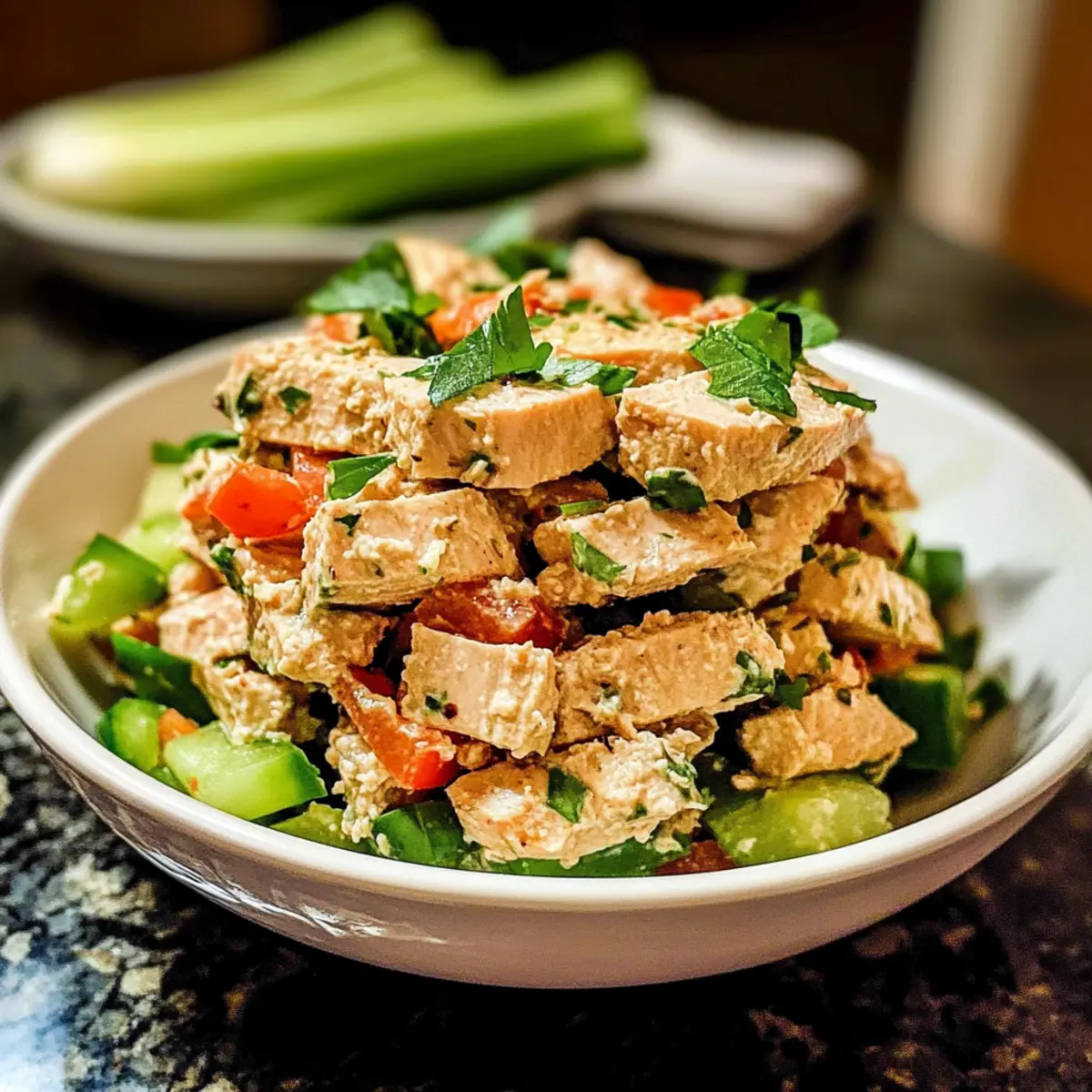 Genieße diesen scharfen Thunfischsalat als gesunde und schmackhafte Option für viele verschiedene Mahlzeiten!