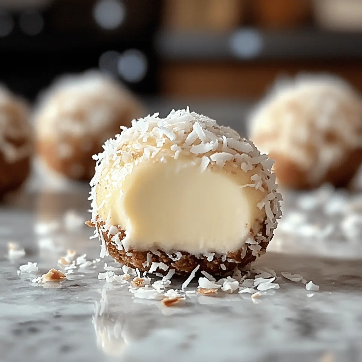Die kleinen, cremigen Käsekuchen-Kugeln haben meine Küche in einen Ort der Freude verwandelt. Wer braucht schon den Ofen, wenn man so unwiderstehliche Schnelle Käsekuchen-Kugeln zaubern kann? Diese kleinen, süßen Snacks sind nicht nur schnell zubereitet, sondern ermöglichen es dir auch, ein Stück cremigen Käsekuchen in Handform zu genießen – ideal für Parties oder als süße Belohnung in einer ruhigen Minute. Egal ob du sie klassisch belässt oder mit etwas weißer Schokolade für die Extra-Cremigkeit experimentierst, diese Küchlein sind ein echter Crowd-Puller. Bist du bereit, deine nächsten Kaffeekränzchen mit diesen köstlichen Häppchen zu bereichern? Warum sind diese Käsekuchen-Kugeln so besonders? Schnelligkeit: Die Zubereitung dieser Käsekuchen-Kugeln benötigt nur wenige Minuten, wodurch sie perfekt für spontane Snacks sind. Vielseitigkeit: Du kannst die Basis nach Belieben anpassen, indem du zum Beispiel glutenfreie Kekse oder verschiedene Schokoladen verwendest. Einfachheit: Mit nur wenigen Zutaten und minimalem Aufwand gelingt dir ein köstlicher Snack, der auch unerfahrene Köche begeistern wird. Cremiger Genuss: Die Kombination aus Frischkäse und optionaler weißer Schokolade sorgt für ein unvergessliches Geschmackserlebnis. Visuelle Anziehung: Dank der verschiedenen Toppings sind die Kugeln nicht nur lecker, sondern auch ein echter Hingucker auf jedem Tisch. Schnelle Käsekuchen-Kugeln Zutaten • Diese Zutaten sorgen für einen cremigen und süßen Genuss. Für die Füllung Frischkäse – verleiht eine reichhaltige und cremige Textur; verwende Vollfett für das beste Ergebnis. Puderzucker – sorgt für Süße und Geschmeidigkeit; kann durch eine Zuckeralternative für kalorienärmere Varianten ersetzt werden. Vanilleextrakt – verstärkt die Geschmacksnuancen; benutze reinen Vanilleextrakt für einen intensiveren Geschmack. Butterkekse – bilden die knusprige Grundlage und geben Geschmack; können durch Graham-Cracker oder glutenfreie Kekse ersetzt werden. Weiße Schokolade – optional für zusätzliche Cremigkeit und Süße; verwende dunkle Schokolade für einen intensiveren Geschmack oder lass sie weg für eine leichtere Version. Für die Beschichtung Kokosraspeln – fügen eine exotische Note hinzu und sorgen für Textur. Kakaopulver – sorgt für einen schokoladigen Akzent; ideal für Schokoladenliebhaber. zerbröselte Kekse – für eine zusätzliche knusprige Schicht und Variation in der Geschmacksrichtung. Mit diesen Zutaten zauberst du im Handumdrehen beeindruckende Schnelle Käsekuchen-Kugeln! Schritt-für-Schritt-Anleitung für Schnelle Käsekuchen-Kugeln Step 1: Frischkäse vorbereiten In einer großen Schüssel den Frischkäse, Puderzucker und Vanilleextrakt zusammen schlagen. Verwende einen Handmixer oder einen Schneebesen, um eine glatte, cremige Konsistenz zu erzielen. Dieser Schritt dauert etwa 2-3 Minuten. Achte darauf, dass keine Klumpen mehr vorhanden sind, um die Basis für deine Schnelle Käsekuchen-Kugeln zu schaffen. Step 2: Kekse einarbeiten Füge die zerbröselten Butterkekse zur Frischkäse-Mischung hinzu und rühre gut um, bis alles gleichmäßig verteilt ist. Wenn du möchtest, kannst du geschmolzene weiße Schokolade einrühren, um eine extra cremige Textur zu erzielen. Dieser Schritt sollte etwa 1-2 Minuten in Anspruch nehmen und du wirst sehen, wie die Mischung an Volumen zunimmt. Step 3: Kühlen der Mischung Decke die Schüssel mit Frischhaltefolie ab und stelle sie für 10-15 Minuten in den Kühlschrank. Dies hilft, die Mischung zu festigen, wodurch es einfacher wird, die Schnelle Käsekuchen-Kugeln zu formen. In diesem Zeitraum kannst du deine Arbeitsfläche vorbereiten, zum Beispiel die Toppings bereitstellen. Step 4: Kugeln formen Nehme die gekühlte Mischung aus dem Kühlschrank und forme mit den Händen kleine Kugeln, etwa so groß wie eine Walnuss. Lege jede Kugel auf ein mit Backpapier ausgelegtes Blech. Achte darauf, dass die Kugeln eine schöne runde Form haben, um beim Servieren ansprechend auszusehen. Step 5: Kugeln beschichten Rolle die Käsekuchen-Kugeln jetzt in Kokosraspeln, Kakaopulver oder zerbröselten Keksen, um ihnen eine köstliche äußere Schicht zu verleihen. Achte darauf, jede Kugel gleichmäßig zu beschichten, um den besten Geschmack zu erzielen. Dieser Schritt verleiht deinen Schnelle Käsekuchen-Kugeln auch eine ansprechende Optik. Step 6: Letzte Kühlung Setze die beschichteten Schnelle Käsekuchen-Kugeln wieder in den Kühlschrank und lasse sie dort mindestens 30 Minuten kühlen. Diese letzte Kühlung hilft, die Kugeln zu festigen und verbessert die Konsistenz, damit sie beim Servieren nicht auseinanderfallen. So kannst du sie auch vorher zubereiten und später servieren. Schnelle Käsekuchen-Kugeln Variationen Lass deiner Kreativität freien Lauf und mache diese Schnelle Käsekuchen-Kugeln zu deinem ganz persönlichen Lieblingssnack. Die Möglichkeiten sind endlos und unglaublich lecker! Glutenfrei: Ersetze die Butterkekse durch glutenfreie Kekse für eine glutenfreie Option. So bleibt der Genuss auch für alle beim Snack-Buffet erhalten. Nussig: Füge gehackte Nüsse oder Mandeln in die Füllung ein. Dadurch erhältst du einen knackigen Biss, der die Cremigkeit perfekt ergänzt. Fruchtig: Mische in die Käsekuchen-Masse getrocknete Früchte wie Cranberries oder Aprikosen für eine fruchtige Note ein. Das bringt frische Farben und einen tollen Geschmack! Zimt-Zucker: Wälze die Kugeln anschließend in einer Mischung aus Zimt und Zucker. Dieser Twist sorgt für einen wärmenden, süßen Akzent, der einfach unwiderstehlich ist. Dunkle Schokolade: Ersetze die weiße Schokolade durch geschmolzene dunkle Schokolade für eine intensiv reichhaltige Version. Diese Variation spricht besonders Schokoladenliebhaber an. Almond Extrakt: Tausche den Vanilleextrakt gegen Mandelessenz aus. Der nussige Geschmack verleiht den Kugeln ein ganz neues Aroma. Kakaopulver: Vermische etwas Kakaopulver in de