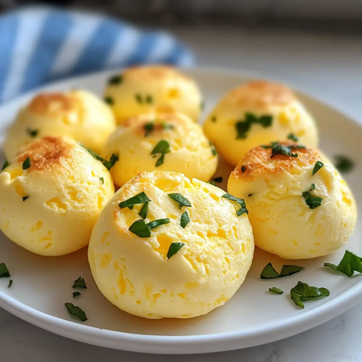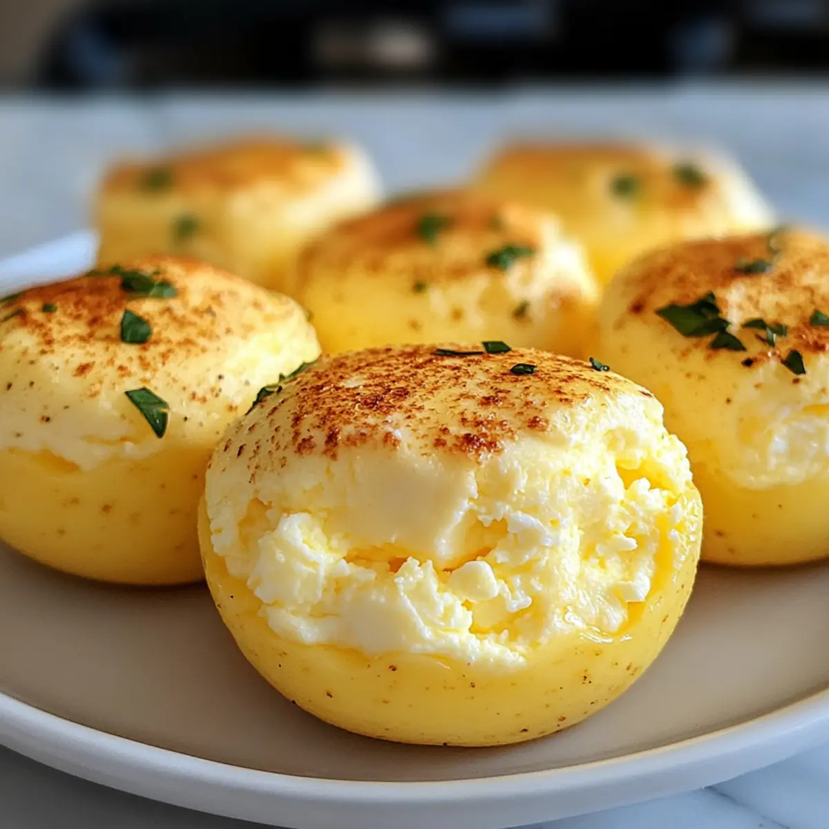 Ich erinnere mich an einen Morgen, an dem ich verzweifelt nach einer schnellen, aber nahrhaften Frühstücksidee suchte. Die Lösung kam in Form von schnellen Ricotta-Ei-Bissen – kleine, flauschige Köstlichkeiten, die einfach zu machen sind und perfekt ins hektische Leben passen. Diese proteinreichen Häppchen bieten nicht nur eine köstliche Abwechslung zu meinem üblichen Frühstücksrepertoire, sondern lassen sich auch ganz nach meinem Geschmack anpassen. Egal, ob ich sie zum Frühstück auf dem Weg zur Arbeit einpacke oder zu einem entspannten Brunch mit Freunden serviere, sie sind stets ein Hit. Mit nur wenigen Zutaten und minimalem Aufwand sind sie die ideale Wahl für alle, die gesunde, glutenfreie Optionen schätzen oder einfach die nächste Mahlzeit planen möchten. Bist du bereit, deine Frühstücksroutine aufzupeppen? Warum sind diese Ei-Bissen so toll? Einfachheit: Die Zubereitung ist kinderleicht und erfordert nur grundlegende Kochkünste. Vielfalt: Variiere die Zutaten mit Zutaten wie Speck oder Gemüse, um deinen Geschmack zu treffen. Proteinreich: Mit einer Kombination aus Eiern und Ricotta sind diese Bissen eine hervorragende Eiweißquelle für den Start in den Tag. Zeitersparnis: Perfekt für Meal Prep: Bereite sie am Sonntag vor und genieße die ganze Woche über gesunde Frühstücksoptionen. Beliebtheit: Diese leckeren Häppchen sind ein Hit bei Familie und Freunden; sie eignen sich ideal für Brunch oder als Snack. Entdecke die Möglichkeiten und stärke deinem Frühstück mit diesen schnellen Ricotta-Ei-Bissen zu nahrhaften Köstlichkeiten! Schnelle Ricotta-Ei-Bissen Zutaten • Du wirst begeistert sein, wie einfach es ist, diese leckeren Bissen zuzubereiten! Für den Teig Eier – Sie geben Struktur und viel Protein; frische große Eier liefern die besten Ergebnisse. Ricotta-Käse – Sorgt für Cremigkeit und einen köstlichen Geschmack; wähle ganze oder fettarme Variante und lasse überschüssige Feuchtigkeit ab. Salz – Verbessert den Gesamtgeschmack; nach Belieben anpassen. Schwarzer Pfeffer – Fügt eine würzige Note hinzu; kann durch eine Prise Cayennepfeffer ersetzt werden, um etwas Schärfe zu bringen. Mache dich bereit, mit diesen schnellen Ricotta-Ei-Bissen deine Frühstücksroutine zu revolutionieren! Schritt-für-Schritt-Anleitung für Schnelle Ricotta-Ei-Bissen Step 1: Ofen vorheizen Heize deinen Ofen auf 160°C vor. Damit gewährleistest du, dass die Schnellen Ricotta-Ei-Bissen gleichmäßig und perfekt backen. Bereite ein Backblech vor, indem du es mit einer Silikonform für Muffins oder Bissen ausstattest. Achte darauf, dass alles bereit ist, bevor du mit dem Mischen der Zutaten beginnst. Step 2: Zutaten mixen Gib in einen Mixer die Eier, den Ricotta-Käse, das Salz und den schwarzen Pfeffer. Mische alles für etwa 30-45 Sekunden, bis eine glatte und cremige Masse entsteht. Die Mischung sollte homogen und ohne Klümpchen sein, um ein gleichmäßiges Backergebnis bei deinen Schnellen Ricotta-Ei-Bissen zu erzielen. Step 3: Formen vorbereiten Platziere die Silikonformen auf dem Backblech und fülle jede Form zu etwa 3/4 mit der Eiermasse. Achte darauf, nicht zu überfüllen, damit die Bissen beim Backen nicht überlaufen. Die gleichmäßige Verteilung sorgt zudem dafür, dass alle Bissen gleichmäßig garen und eine schöne Form behalten. Step 4: Wasserbad erstellen Fülle das Backblech vorsichtig mit heißem Wasser, bis es ungefähr zur Hälfte der Seiten der Silikonformen reicht. Dieses Wasserbad sorgt dafür, dass die Schnellen Ricotta-Ei-Bissen sanft und gleichmäßig garen, was zu einer perfekten Konsistenz führt. Achte darauf, dass kein Wasser in die Formen gelangt. Step 5: Backen Backe die Schnellen Ricotta-Ei-Bissen im vorgeheizten Ofen für etwa 25-35 Minuten. Sie sind fertig, wenn die Oberfläche fest ist und sich keine Flüssigkeit mehr bewegt, wenn man sie leicht schüttelt. Achte darauf, dass die Bissen nicht zu lange backen, um eine zarte und cremige Textur zu erhalten. Step 6: Abkühlen lassen Nehme das Backblech vorsichtig aus dem Ofen und lasse die Ei-Bissen für etwa 5-10 Minuten im Wasserbad abkühlen. Dadurch setzen sie sich besser und lassen sich einfacher aus den Formen lösen. Dies ist ein wichtiger Schritt, um die schöne Form und die cremige Konsistenz zu bewahren. Step 7: Servieren oder aufbewahren Entferne die Schnellen Ricotta-Ei-Bissen aus den Silikonformen und lasse sie auf einem Kuchengitter vollständig abkühlen. Du kannst sie entweder warm servieren oder in einem luftdichten Behälter für bis zu 4 Tage im Kühlschrank aufbewahren. So hast du immer eine schnelle und nahrhafte Frühstücksoption zur Hand! Schnelle Ricotta-Ei-Bissen Variationen Kreiere deine ganz persönlichen Schnellen Ricotta-Ei-Bissen und entdecke die schier endlosen Möglichkeiten der Anpassung! Vegetarisch: Füge sautiertes Gemüse wie Spinat oder Paprika hinzu für einen bunten Geschmack. Das Gemüse verleiht nicht nur Farbe, sondern auch zusätzliche Nährstoffe. Würziger Genuss: Verwende scharfen Käse oder eine Prise Chili, um deinem Rezept einen feurigen Kick zu verleihen. So wird jedes Bissen zum aufregenden Geschmackserlebnis. Mediterraner Twist: Mische in die Eimasse zerbröckelten Feta und gehackte Oliven für einen aromatischen, herzhaften Geschmack. Diese Kombination wird dich direkt an die Küste des Mittelmeers versetzen! Herzhafter Snack: Integriere knusprige Speckstückchen für ein herzhaftes Upgrade. Der salzige Speck bringt eine tolle Textur und Geschmackstiefe in deine Ei-Bissen. Hülsenfrüchte: Füge abgetropfte Kichererbsen oder Bohnen für zusätzliche Proteine und Ballaststoffe hinzu. Sie verwandeln deine Bissen in eine sättigende Mahlzeit. Frisch Kräuter: Ergänze die Mischung mit frischen Kräutern wie Basilikum oder Petersilie für einen Gartenfrische-Touch. Diese Kräuter setzen aromatische Akzente und machen die Bissen besonders einladend. Süßes Frühstück: Probiere eine Prise Zimt und einen Esslöffel Honi