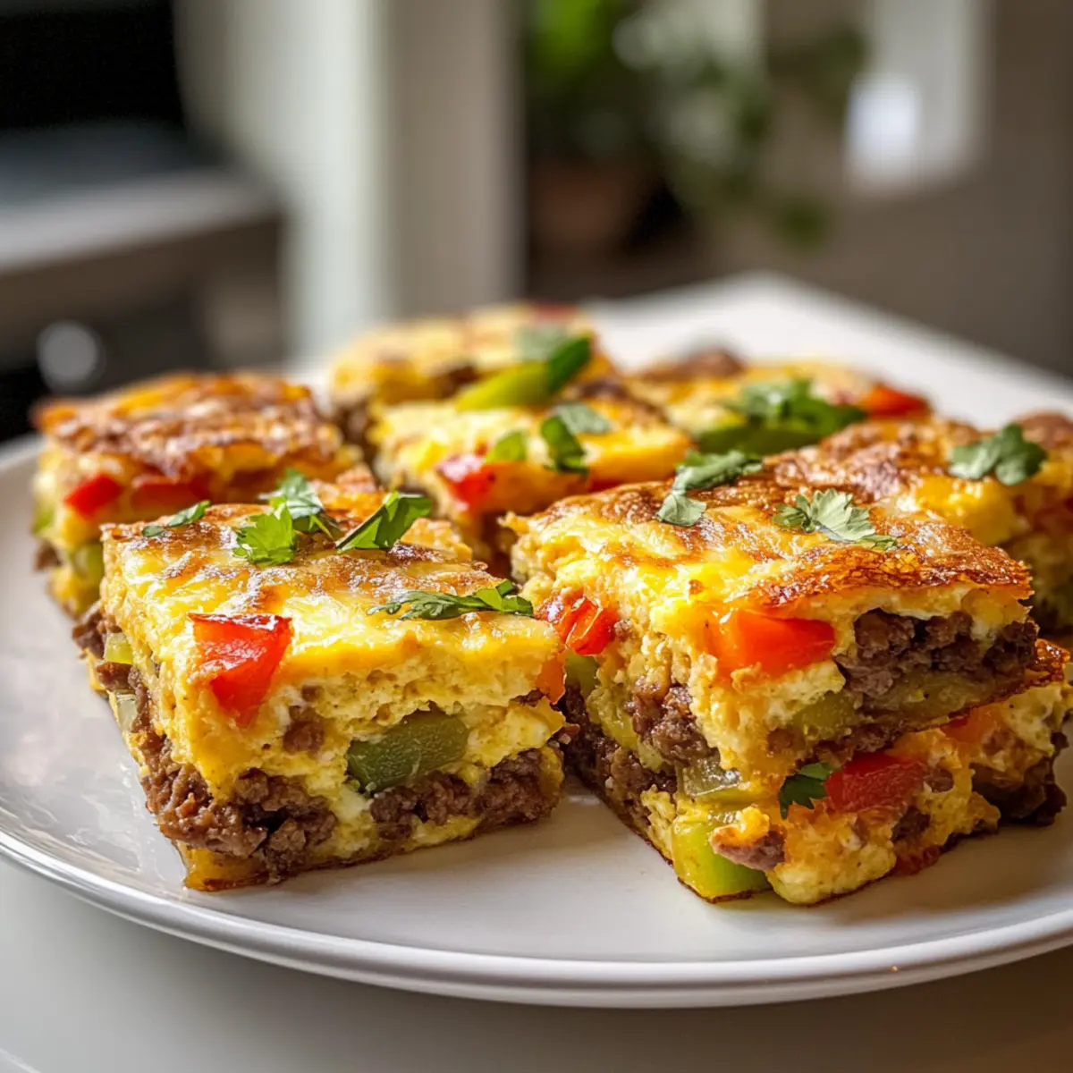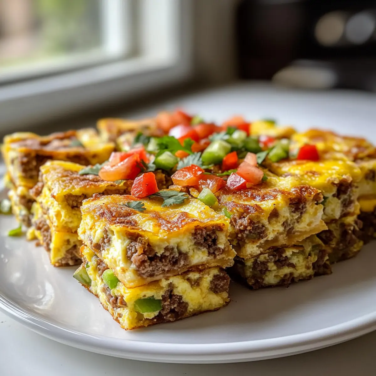 Die warme, einladende Küche ist der perfekte Ort für einen gelungenen Start in den Tag, besonders wenn man mit den Schnelle und einfache knusprige Blechpfannen-Frühstücksburrito-Quadrate überrascht wird. Diese köstlichen Quadrate sind nicht nur ein echter Blickfang, sondern auch im Handumdrehen zubereitet! Mit fluffigen Rühreiern, würzigem Hackfleisch und geschmolzenem Käse, alles wunderbar in goldbraunen Tortillas eingekuschelt, sind sie perfekt für hektische Morgen oder um eine Gruppe zu beeindrucken. Und das Beste: Sie lassen sich ganz einfach anpassen, je nachdem, was der Kühlschrank hergibt. Für ein schnelles Frühstück oder Meal Prepping sind diese Burrito-Quadrate einfach unschlagbar. Hättest du gedacht, dass ein so einfaches Rezept so vielseitig sein kann? Lass uns gemeinsam entdecken, wie du deine eigenen, knusprigen Frühstücksburrito-Quadrate kreieren kannst! Warum sind diese Burrito-Quadrate perfekt? Einfachheit: Die Zubereitung ist denkbar leicht und erfordert nur minimale Kochkünste, perfekt für alle Heimköche! Vielseitigkeit: Du kannst die Füllung ganz nach deinem Geschmack anpassen – sei es mit Gemüse, verschiedenen Fleischsorten oder pflanzlichen Alternativen. Zufriedenheit: Die Kombination aus knusprigen Tortillas und einem herzhaften, warmen Innenleben wird jeden Food-Liebhaber begeistern. Schnelligkeit: Ideal für stressige Morgen – einfach in den Ofen schieben und innerhalb von 25 Minuten genießen! Meal Prep: Diese Quadrate eignen sich hervorragend zur Vorratshaltung. Bereite eine große Charge vor und genieße die ganze Woche über ein köstliches Frühstück. Harmonie der Geschmäcker: Die vollmundigen Aromen von Eiern, Käse und Gewürzen machen jedes Stück zu einem kleinen Fest der Sinne. Schnelle und einfache Burrito-Zutaten Für die Füllung: Tortillas – Ideal als Basis für die Burrito-Quadrate; wähle zwischen Weizen- oder Maistortillas, je nach Vorliebe. Rühreier – Sie sorgen für fluffige Leichtigkeit und eine proteinreiche Basis; für eine leichtere Variante kannst du auch nur Eiweiße verwenden. Hackfleisch – Adds herzhaften Geschmack und Protein; du kannst es durch Putenhack oder pflanzliche Alternativen ersetzen, um eine gesündere Option zu erhalten. Käse – Schmilzt wunderbar und verstärkt den Geschmack; nutze Cheddar, Monterey Jack oder eine laktosefreie Käsesorte. Frühstücksgemüse (z. B. Paprika, Zwiebeln) – Bringt Frische und Nährstoffe in die Füllung; variiere je nach Saison oder was verfügbar ist. Hash Browns – Fügen der Füllung zusätzliche Textur hinzu; achte darauf, überschüssige Feuchtigkeit auszudrücken, um Knusprigkeit zu gewährleisten. Olivenöl oder geschmolzene Butter – Zum Bestreichen der Tortillas, um eine goldene, knusprige Oberfläche zu erzielen. Tipps: Die Schnelle und einfache knusprige Blechpfannen-Frühstücksburrito-Quadrate bieten eine hervorragende Auswahl an Zutaten, die leicht variiert werden können! Schritt-für-Schritt-Anleitung für Schnelle und einfache knusprige Blechpfannen-Frühstücksburrito-Quadrate Step 1: Ofen vorheizen Heize deinen Ofen auf 175°C vor. Das ist wichtig, um sicherzustellen, dass die Schnelle und einfache knusprige Blechpfannen-Frühstücksburrito-Quadrate gleichmäßig garen und eine perfekte goldene Oberfläche erhalten. Während der Ofen aufheizt, kannst du gleichzeitig alle anderen Vorbereitungen treffen. Step 2: Füllung vorbereiten Schlage in einer Schüssel die Eier auf und verrühre sie gut. In einer Pfanne das Hackfleisch bei mittlerer Hitze anbraten, bis es braun und durchgegart ist. Wende dabei regelmäßig. Füge dann nach Belieben Gewürze hinzu, um der Füllung Geschmack zu verleihen. Dies wird die Basis für deine saftigen Burrito-Quadrate. Step 3: Hash Browns vorbereiten Nimm die Hash Browns und drücke sie mit einem Küchentuch oder einem Sieb gut aus, um überschüssige Feuchtigkeit zu entfernen. Dies ist der Schlüssel, um eine knusprige Textur zu erzielen. Vermische die trockenen Hash Browns anschließend mit den Rühreiern und dem gebratenen Hackfleisch in einer großen Schüssel. Step 4: Tortillas anrichten Lege die Tortillas gleichmäßig auf ein, mit Backpapier ausgelegtes, Backblech. Sorge dafür, dass sie schön nebeneinander liegen und nicht überlappen. Verteile die vorbereitete Füllung gleichmäßig auf den Tortillas. Achte darauf, jeden Bissen mit einer guten Menge Rührei, Fleisch und Gemüse zu füllen, um ein großartiges Geschmacksmuster zu erreichen. Step 5: Tortillas bestreichen Erhitze etwas Olivenöl oder geschmolzene Butter in einem kleinen Behälter und bestreiche die Oberseite der Tortillas großzügig damit. Dies hilft, eine goldene, knusprige Kruste während des Backens zu kreieren. Der Verzehr wird dadurch noch genussvoller, da die Aromen alle bunt kombiniert werden. Step 6: Backen Schiebe das Backblech in den vorgeheizten Ofen und backe die Burrito-Quadrate für etwa 25 Minuten. Achte darauf, dass die Tortillas sich goldbraun färben und knusprig werden. Es ist hilfreich, während des Backvorgangs einen Blick darauf zu werfen, um ein Überbacken zu vermeiden. Step 7: Schneiden und Servieren Wenn die Burrito-Quadrate fertig gebacken sind, nimm das Blech aus dem Ofen und lasse es kurz abkühlen. Schneide die heißen Quadrate mit einem scharfen Messer in gleichmäßige Stücke. Serviere sie warm, idealerweise mit Salsa, saurer Sahne oder Guacamole, um das Geschmackserlebnis zu vervollständigen. Aufbewahrungstipps für Schnelle und einfache knusprige Blechpfannen-Frühstücksburrito-Quadrate Raumtemperatur: Die Burrito-Quadrate sollten nicht länger als 2 Stunden bei Raumtemperatur liegen, um die Lebensmittelsicherheit zu gewährleisten. Kühlschrank: Im Kühlschrank bleiben die Quadrate bis zu 7 Tage frisch. Bewahre sie in einem luftdichten Behälter auf, um die Aromen zu erhalten. Gefrierfach: Wenn du die Schnelle und einfache knusprige Blechpfannen-Frühstücksburrito-Quadrate länger aufbewahren m