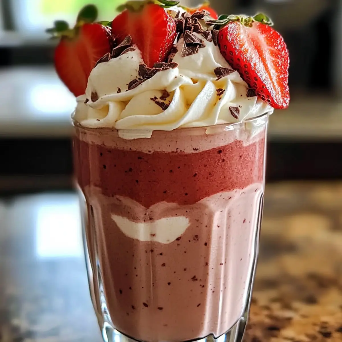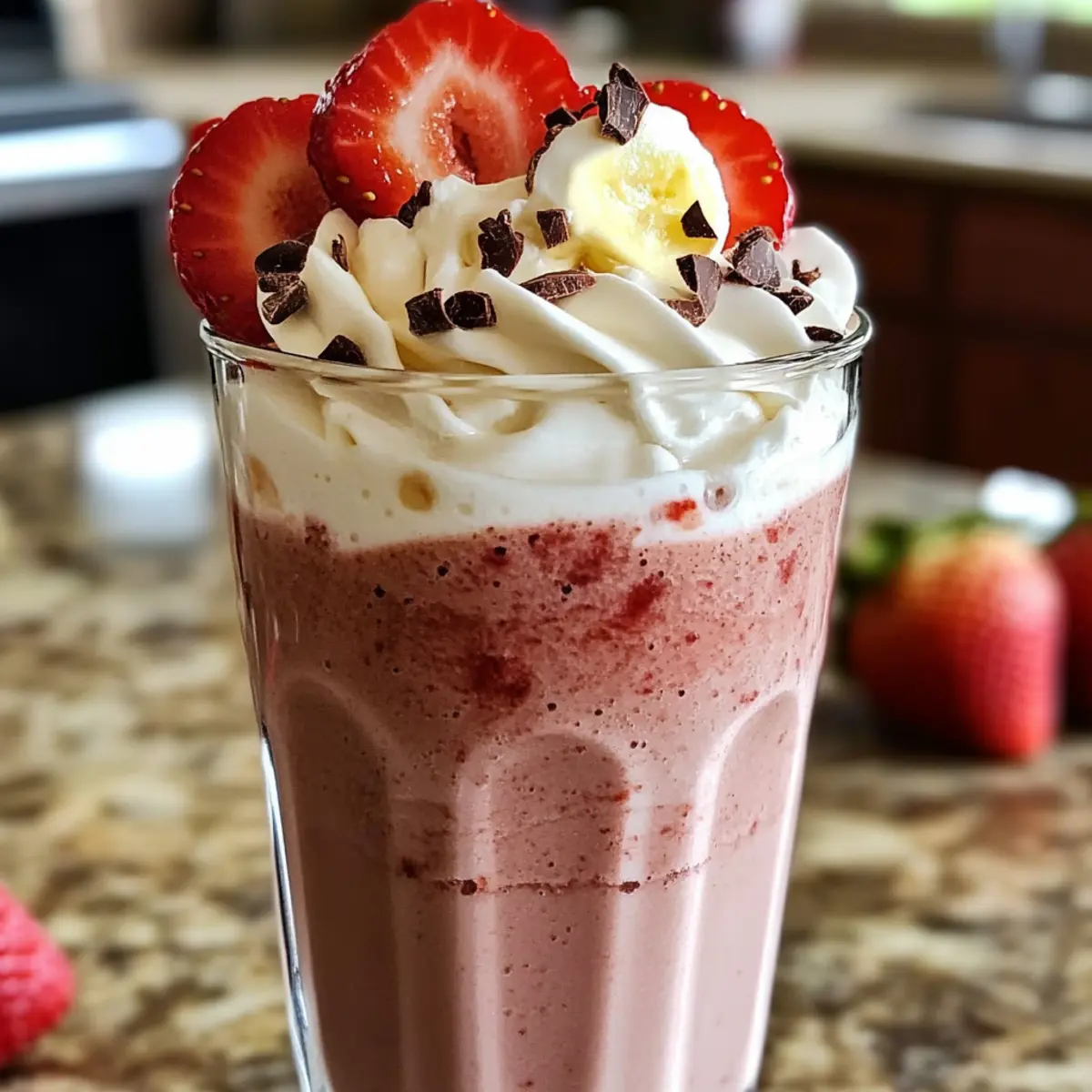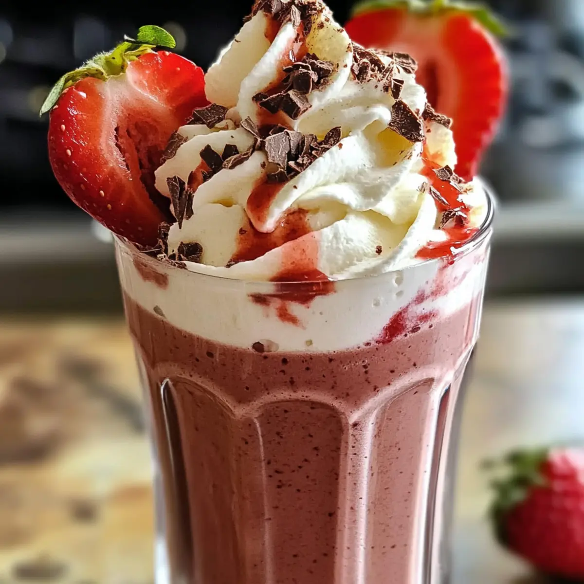 Der erste Schluck eines Schokoladen-Erdbeer-Smoothies ist wie eine kleine Umarmung für die Seele – cremig, süß und einfach unwiderstehlich. Diese köstliche Mischung aus reichem Kakao und saftigen Erdbeeren wird in Windeseile zum Star eurer Frühstückstafel oder zum perfekten Nachmittagssnack. Mit nur wenigen Zutaten, wie Mandelmilch und einer gefrorenen Banane, ist dieser Schokoladen-Erdbeer-Smoothie-Genuss nicht nur schnell zubereitet, sondern auch unglaublich nahrhaft und anpassbar. Egal ob ihr eine glutenfreie oder pflanzenbasierte Variante bevorzugt, dieser Smoothie erfüllt all eure Wünsche. Seid ihr bereit, eure Geschmacksnerven auf eine zauberhafte Reise mitzunehmen? Warum ist dieser Smoothie so unwiderstehlich? Cremiger Genuss: Der Schokoladen-Erdbeer-Smoothie vereint die perfekte Textur mit einem Geschmacksprofil, das süß und schokoladig ist. Einfache Zubereitung: In nur wenigen Minuten zaubert ihr euch ein erfrischendes Getränk, ideal für hektische Morgen oder entspannte Nachmittage. Vielseitige Anpassung: Mit Optionen wie Hafermilch oder verschiedenen Früchten könnt ihr ihn ganz nach euren Vorlieben gestalten. Gesundes Vergnügen: Beladen mit Nährstoffen ist dieser Smoothie nicht nur köstlich, sondern auch nahrhaft – perfekt als gesunder Snack! Crowd-Pleaser: Egal ob bei einem Familienfrühstück oder als Partygetränk, dieser Smoothie wird ganz sicher ein Hit! Schokoladen-Erdbeer-Smoothie-Zutaten • Für die Basis: Mandelmilch – wertvolle Flüssigkeit, die Cremigkeit verleiht; kann durch Hafermilch, Sojamilch oder Kokosmilch ersetzt werden. Reife Banane (gefroren) – bringt natürliche Süße und eine cremige Textur; frische Banane funktioniert ebenfalls, gefrorene ist jedoch ideal für einen perfekten Smoothie. Frische Erdbeeren – bietet Süße und Farbe; gefrorene Beeren sind eine leckere Alternative, wenn frische nicht verfügbar sind. • Für den Schokoladengeschmack: Ungezuckertes Kakaopulver – sorgt für den intensiven Schokoladengeschmack; probiert auch einmal Karobpulver oder geschmolzene Zartbitterschokolade für einen besonderen Akzent. • Für die Süße: Honig oder Ahornsirup (optional) – ideal für die harmonische Süße; als Alternativen können auch Datteln oder Stevia verwendet werden. • Für den zusätzlichen Kick: Chiasamen (optional) – erhöhen die Ballaststoffe und Nährstoffe, können aber weggelassen werden, wenn das nicht gewünscht ist. • Für die Frische: Eiswürfel (optional) – verleihen dem Smoothie eine dickere und kühlere Konsistenz; zusätzlich gefrorene Banane macht ihn noch cremiger. • Für die Garnitur: Schlagsahne (optional) – bringt eine luxuriöse Note zum Abschluss; mit frischen Erdbeeren und einem Hauch Kakaopulver dekorieren, um den Schokoladen-Erdbeer-Smoothie-Genuss zu perfektionieren. Schritt-für-Schritt-Anleitung für den Schokoladen-Erdbeer-Smoothie-Genuss Step 1: Erdbeeren vorbereiten Zuerst die frischen Erdbeeren waschen, die grünen Blätter entfernen und die Beeren in Scheiben schneiden. Währenddessen die gefrorene Banane schälen und in grobe Stücke brechen. Diese Vorbereitungen sorgen dafür, dass alle Zutaten bereit sind, um im nächsten Schritt zu einem cremigen Schokoladen-Erdbeer-Smoothie-Genuss zu vereinen. Step 2: Zutaten in den Mixer geben In einen Mixer die vorbereitete Mandelmilch, die gefrorene Banane, die geschnittenen Erdbeeren und das ungezuckerte Kakaopulver hinzufügen. Optional auch das süße Element wie Honig oder Ahornsirup beifügen, falls ein bisschen mehr Süße gewünscht wird. Die Kombination dieser Zutaten ergibt die hervorragende Basis für euren Smoothie. Step 3: Mixen für die perfekte Konsistenz Den Mixer auf hohe Geschwindigkeit einstellen und die Zutaten für etwa 30–60 Sekunden pürieren, bis eine cremige und glatte Konsistenz erreicht ist. Achte darauf, den Mixer zwischendurch auszuschalten, um die Seiten mit einem Spatel abzukratzen und sicherzustellen, dass alles gut vermischt wird. Diese Technik garantiert einen köstlichen Schokoladen-Erdbeer-Smoothie-Genuss. Step 4: Eis hinzufügen für extra Frische Falls ihr eine dickere und kühlere Textur wünscht, jetzt etwa 4–6 Eiswürfel in den Mixer geben und erneut für 15–30 Sekunden pürieren, bis das Eis komplett zerkleinert ist und sich mit der Mischung vermischt hat. Dies verleiht dem Smoothie eine erfrischende Kühle, perfekt für warme Tage. Step 5: Chiasamen für zusätzlichen Nährstoffkick Wenn gewünscht, die Chiasamen hinzufügen und den Mixer kurz anstellen, nur um sie mit der restlichen Mischung zu vermengen. Dies fügt nicht nur Nährstoffe hinzu, sondern sorgt auch für eine leicht gelartige Textur, die den Schokoladen-Erdbeer-Smoothie-Genuss noch sättigender macht. Step 6: Servieren und Garnieren Den fertigen Smoothie in gekühlte Gläser gießen und nach Belieben mit Schlagsahne, zusätzlichen Erdbeerscheiben sowie einer Prise Kakaopulver dekorieren. Diese kreative Garnitur verleiht dem Gesamtbild eine exquisite Note und macht euren Schokoladen-Erdbeer-Smoothie-Genuss zu einem echten Hingucker. Was passt zum Schokoladen-Erdbeer-Smoothie-Genuss? Der perfekte Begleiter für euren Smoothie bringt noch mehr Geschmack und Genuss auf den Tisch. Cremiger Joghurt: Eine Portion griechischer Joghurt ergänzt den Smoothie perfekt und verleiht ihm zusätzlichen Proteingehalt. So wird euer Frühstück noch sättigender und nährstoffreicher. Haferflocken: Eine Handvoll Haferflocken sorgt für eine angenehme Textur und macht den Smoothie noch nahrhafter. Sie sind eine tolle Quelle für Ballaststoffe und helfen, euch lange satt zu halten. Frischer Obstsalat: Ein Obstsalat mit saisonalen Früchten bringt Frische und Farben auf den Tisch. Die verschiedenen Aromen ergänzen den Schokoladen-Erdbeer-Smoothie-Genuss wunderschön. Nussbutter: Löffelweise Nussbutter, wie Mandel- oder Erdnussbutter, fügt eine köstliche Cremigkeit hinzu und erhöht den Proteinanteil. Ideal für einen energiereichen 
