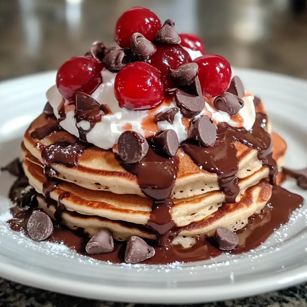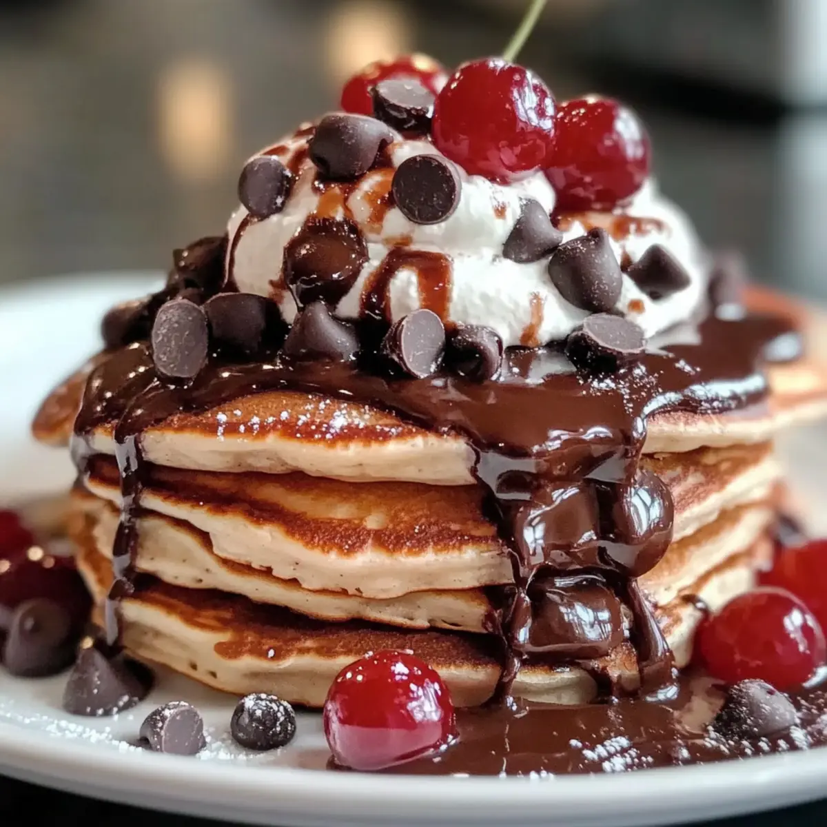 Es gibt nichts Schöneres, als den Duft von frisch gebratenen Pfannkuchen, der durch die Küche zieht und Erinnerungen an gemütliche Sonntagmorgen weckt. Heute lade ich euch ein, diese köstlichen Schokoladenkirschenpfannkuchen zu entdecken – eine verlockende Kombination aus saftigen Kirschen und schmelzendem Schokoladengenuss. Diese Pfannkuchen sind nicht nur blitzschnell zubereitet, sondern auch ein wahrer Hingucker für jeden Frühstückstisch. Ob für einen besonderen Anlass oder einfach nur um den Tag lecker zu starten, sie bringen Freude und Abwechslung in eure morgendliche Routine. Gemeinsam mit einem Spritzer Schokoladensauce und einem Haufen Sahne serviert, verwandeln sie jedes Frühstück in eine kleine Geschmacksexplosion. Seid ihr bereit, die Zutaten zu schnappen und diesen süßen Genuss auszuprobieren? Warum solltest du diese Pfannkuchen lieben? Einfachheit: Die Zubereitung dieser Schokoladenkirschenpfannkuchen ist kinderleicht und benötigt keine besonderen Backkünste – ideal für alle, die schnell etwas Leckeres zaubern möchten. Schokoladiger Genuss: Mit schmelzenden Schokoladenstückchen und saftigen Kirschen sind diese Pfannkuchen der Inbegriff von köstlich! Vielfalt: Ob als Frühstück, Brunch oder Dessert – sie passen zu jeder Gelegenheit und begeistern große und kleine Gäste. Glutenfreie Option: Dank der Möglichkeit, glutenfreies Mehl zu verwenden, sind sie auch für Allergiker geeignet. Zeitersparnis: Schnelle Zubereitung, die dir mehr Zeit für andere Aktivitäten lässt und dennoch von jedem geschätzt wird. Wenn du nach weiteren Köstlichkeiten suchst, probiere auch unsere guten Tipps für das perfekte Pfannkuchen-Frühstück! Zutaten für Schokoladenkirschenpfannkuchen Für den Teig Allzweckmehl – sorgt für Struktur und Textur; ersetze es durch glutenfreies Mehl für glutenfreie Schokoladenkirschenpfannkuchen. Zucker – fügt Süße hinzu und verstärkt den Geschmack. Backpulver – wirkt als Treibmittel, damit die Pfannkuchen leicht und fluffig werden. Salz – hebt den Gesamtschmack hervor. Buttermilch – verleiht den Pfannkuchen Reichhaltigkeit und Zartheit; alternativ kannst du normale Milch oder milchfreie Produkte verwenden. Großes Ei – bindet die Zutaten und trägt zur Fluffigkeit bei. Geschmolzene Butter – sorgt für Feuchtigkeit und Reichhaltigkeit. Mini-Schokoladenstückchen – bietet schokoladige Geschmacksexplosionen in jedem Bissen. Gehackte Maraschino-Kirschen – bringt Süße und Fruchtigkeit. Für das Topping Schokoladensauce – zum Drizzeln oben drauf, um den schokoladigen Geschmack zu betonen. Kirschen aus der Dose – optional für das Topping, um den Kirschgeschmack zu intensivieren. Schlagsahne – fügt Cremigkeit hinzu und vollendet das Gericht. Schritt-für-Schritt-Anleitung für Schokoladenkirschenpfannkuchen Step 1: Trockene Zutaten vermischen In einer großen Rührschüssel vermengen Sie das Allzweckmehl, den Zucker, das Backpulver und das Salz gründlich. Verwenden Sie einen Schneebesen, um sicherzustellen, dass keine Klümpchen vorhanden sind. Diese trockenen Zutaten bilden die Basis für Ihre Schokoladenkirschenpfannkuchen und verleihen ihnen die notwendige Struktur. Step 2: Feuchte Zutaten mischen In einer separaten Schüssel die Buttermilch, das große Ei und die geschmolzene Butter gut vermengen, bis alles gleichmäßig miteinander verbunden ist. Dies dauert etwa 1 bis 2 Minuten. Achten Sie darauf, dass die Buttermilch Zimmertemperatur hat, um die perfekte Konsistenz für die Pfannkuchen zu erreichen. Step 3: Trockene und feuchte Zutaten kombinieren Gießen Sie die Mischung aus feuchten Zutaten langsam in die Schüssel mit den trockenen Zutaten. Rühren Sie vorsichtig mit einem Holzlöffel oder einem Gummispatel, bis sich alles gerade so vermischt hat; einige Klümpchen sind in Ordnung. So stellen Sie sicher, dass Ihre Schokoladenkirschenpfannkuchen schön fluffig werden. Step 4: Schokoladenstückchen und Kirschen unterheben Falten Sie nun die mini Schokoladenstückchen und die gehackten Maraschino-Kirschen behutsam unter den Teig. Achten Sie darauf, nicht zu stark zu rühren, damit der Teig leicht bleibt. Die Schokolade und die Kirschen werden beim Backen köstliche Aromen und saftige Inhalte in Ihren Schokoladenkirschenpfannkuchen erzeugen. Step 5: Pfanne vorbereiten Erhitzen Sie eine beschichtete Pfanne auf mittlerer Hitze und fügen Sie ein wenig Butter oder Öl hinzu, um die Oberfläche leicht zu fetten. Warten Sie etwa 1 bis 2 Minuten, bis die Pfanne heiß genug ist, um den Teig gleichmäßig zu garen und eine schöne goldbraune Farbe zu erzeugen. Step 6: Pfannkuchen braten Legen Sie mit einer Schöpfkelle eine Portion Teig (etwa 1/4 Tasse) in die heiße Pfanne. Braten Sie die Pfannkuchen, bis sich an der Oberfläche Bläschen bilden, was etwa 2 bis 3 Minuten dauert. Drehen Sie die Pfannkuchen vorsichtig um, wenn die Unterseite goldbraun ist und braten Sie die andere Seite für weitere 1 bis 2 Minuten bis auch diese goldbraun ist. Step 7: Servieren und garnieren Sobald die Schokoladenkirschenpfannkuchen fertig sind, stapeln Sie sie auf einem Teller und garnieren Sie sie nach Belieben mit Schokoladensauce, Kirschen aus der Dose und einer großzügigen Portion Schlagsahne. Servieren Sie diese warmen Köstlichkeiten sofort und genießen Sie das leckere Aroma und den verführerischen Geschmack! Variationen & Alternativen für Schokoladenkirschenpfannkuchen Entfessele deine Kreativität in der Küche und passe diese köstlichen Pfannkuchen ganz nach deinem Geschmack an – es gibt so viele aufregende Möglichkeiten! Glutenfrei: Ersetze das Allzweckmehl durch glutenfreies Mehl, um eine großartige glutenfreie Option zu erhalten. Dunkle Schokolade: Verwende anstelle von Mini-Schokoladenstückchen dunkle Schokolade für einen intensiveren, reichen Geschmack. Doppelter Schokoladengenuss: Tausche die Hälfte des Mehls gegen Kakaopulver aus, um schokoladigere Pfannkuchen zu kreieren. Diese Variante ist perfek