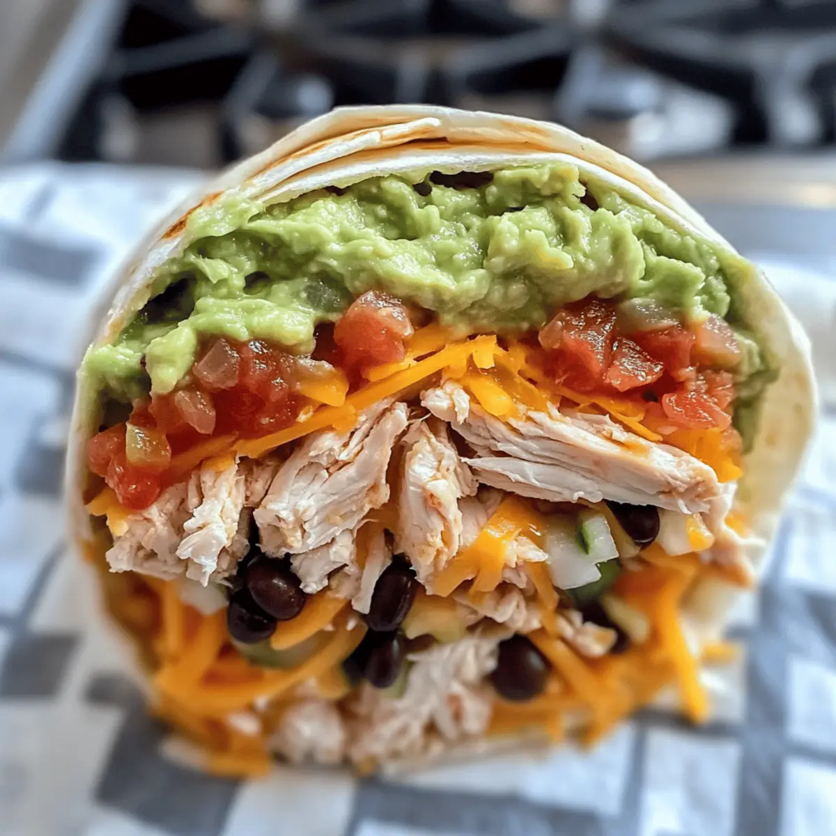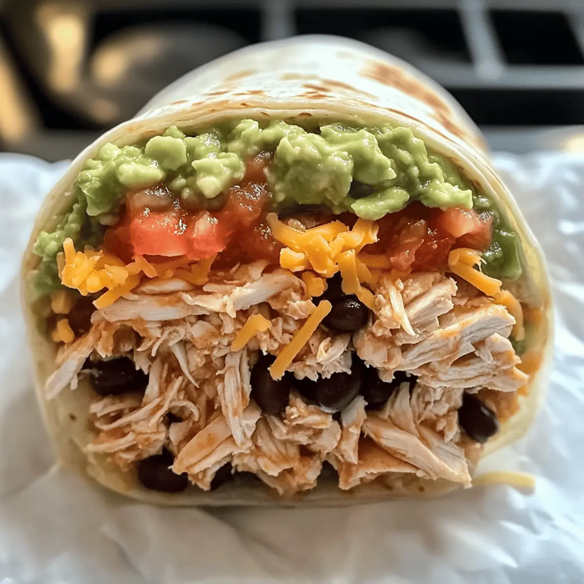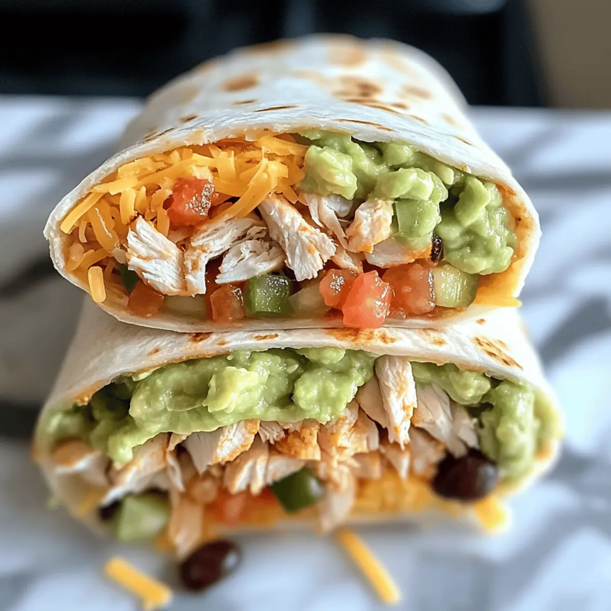 Die Vorstellung, gleich sieben köstliche Schichten in einem einzigen Burrito zu vereinen, löst bei mir eine wahre Geschmacksexplosion aus! Die Sieben-Schichten-Hühnchen-Burritos kombinieren zartes Hühnchen, frisches Gemüse und aromatische Saucen und sind die perfekte Lösung für alle, die es eilig haben, aber trotzdem nicht auf Genuss verzichten wollen. In nur etwa 45 Minuten zauberst du ein Familienessen, das nicht nur schnell zuzubereiten ist, sondern auch unglaublich variabel – ideal für jeden Geschmack. Ob du die Burritos gerne scharf, vegetarisch oder in Fajita-Manier zauberst, die Möglichkeiten sind endlos! Welches neue Rezept wirst du als erstes ausprobieren? Warum sind Sieben-Schichten-Burritos so beliebt? Vielseitigkeit: Jeder kann seinen perfekten Burrito kreieren, sei es vegetarisch oder scharf. Schnelle Zubereitung: In nur 45 Minuten hast du ein köstliches Essen auf dem Tisch. Aromatische Explosion: Die Kombination aus frischen Zutaten und würzigen Saucen sorgt für ein Geschmackserlebnis. Familienfreundlich: Ideal für gesellige Runden oder den schnellen Familienabend. Texturvielfalt: Außen knusprig, innen cremig und herzhaft – ein Fest für den Gaumen! Lass dich inspirieren und entdecke mehr über die verschiedenen Variationen, wie die vegetarische Variante oder die scharfe Version. Sieben-Schichten-Hühnchen-Burritos Zutaten Für die Füllung • Hähnchenbrustfilet – Gekocht und gewürfelt, wird es zur Hauptproteinquelle für die Burritos. • Schwarze Bohnen – Abgetropft und gespült, sorgen sie für eine hübsche Textur und zusätzliche Proteine. • Gehackte Tomaten – Bringen Frische und saftige Textur in die Mischung. • Gehackte Zwiebeln – Bieten Schärfe und Aroma für mehr Geschmack. • Geriebener Cheddar-Käse – Schmelzt schön und sorgt für einen herzhaften Geschmack. • Gehackter grüner Paprika – Fügt eine knackige Textur und frischen Geschmack hinzu. • Mais – Abgetropft, bringt er Süße und Farbe in die Füllung. • Kreuzkümmel – Verbessert den Geschmack mit erdigen Noten. • Salz und Pfeffer – Nach Geschmack, um die Füllung abzurunden. Für die Tortillas • Weizentortillas – 4 große, die alle Zutaten zusammenhalten, sind die perfekte Grundlage. Für die Saucen • Guacamole – Fügt Cremigkeit und einen köstlichen Geschmack hinzu. • Saure Sahne – Bringt eine erfrischende Säure in die Burritos. • Salsa – Bietet Würze und Feuchtigkeit, was die Geschmacksexplosion verstärkt. Die Sieben-Schichten-Hühnchen-Burritos sind nicht nur lecker, sondern auch vielseitig, sodass jeder seinen Burrito nach eigenen Vorlieben gestalten kann! Schritt-für-Schritt-Anleitung für Sieben-Schichten-Hühnchen-Burritos Step 1: Hähnchen kochen Erhitze eine Pfanne auf mittlerer Stufe und gib die gewürfelten Hähnchenbrustfilets hinein. Koche sie etwa 7-10 Minuten lang, bis sie vollständig durchgegart sind und schön goldbraun aussehen. Nimm das Hähnchen aus der Pfanne, lasse es kurz abkühlen und schneide es in kleine Stücke. Step 2: Ofen vorheizen Heize deinen Ofen auf 180°C (350°F) vor, während du die anderen Zutaten vorbereitest. So ist er bereit, die Burritos perfekt zu backen und für eine goldbraune, knusprige Oberfläche zu sorgen. Step 3: Tortilla vorbereiten Lege eine große Weizentortilla auf eine saubere, flache Oberfläche oder ein großes Schneidebrett. Dies ist die Grundlage für deine Sieben-Schichten-Hühnchen-Burritos, die all die köstlichen Zutaten zusammenhalten wird. Step 4: Guacamole verteilen Nimm eine Tasse Guacamole und verteile sie gleichmäßig auf der Tortilla, sodass der Boden gut bedeckt ist. Die Cremigkeit der Guacamole sorgt für einen leckeren Geschmack und eine wunderbare Basis für die weiteren Schichten. Step 5: Hähnchenstücke hinzufügen Lege die zuvor gewürfelten Hähnchenstücke gleichmäßig auf die Guacamole. Achte darauf, die Stücke gut zu verteilen, damit jeder Bissen deiner Sieben-Schichten-Hühnchen-Burritos voll mit Geschmack ist. Step 6: Bohnen und Mais hinzufügen Verteile die abgetropften, gespannten schwarzen Bohnen gleichmäßig über das Hähnchen, gefolgt von einer Tasse abgetropften Mais. Diese Zutaten bringen nicht nur eine tolle Textur, sondern auch zusätzliche Nährstoffe in deine Burritos. Step 7: Salsa ergänzen Jetzt kommt die Salsa! Verteile eine Tasse Salsa gleichmäßig über die anderen Zutaten. Die Salsa verleiht den Sieben-Schichten-Hühnchen-Burritos eine würzige Note und macht sie noch saftiger. Step 8: Käse hinzufügen Streue zwei Tassen geriebenen Cheddar-Käse großzügig über die Salsa. Der Käse schmilzt beim Backen und sorgt für eine köstlich herzhaft kremige Schicht, die unerlässlich für diesen Burrito ist. Step 9: Gemüse hinzufügen Jetzt ist es an der Zeit, die Frische hinzuzufügen! Streue die gehackten Tomaten, Zwiebeln und grünen Paprika gleichmäßig über die Käse-Schicht. Diese bunten Zutaten sorgen für einen fantastischen Gaumengenuss und ein appetitliches Aussehen deiner Burritos. Step 10: Burrito rollen Falte die Seiten der Tortilla nach innen und rolle sie von unten nach oben vorsichtig auf, um den Burrito zu schließen. Achte darauf, dass du ihn fest rollst, damit keine Füllung herausfällt. Step 11: Burritos backen Lege die fertigen Burritos in eine Auflaufform und stelle sie für 15-20 Minuten in den vorgeheizten Ofen. Backe die Burritos, bis der Käse geschmolzen und die Tortillas goldbraun sowie knusprig sind. Step 12: Servieren Nehme die Burritos aus dem Ofen und lasse sie einige Minuten abkühlen, bevor du sie servierst. Die Sieben-Schichten-Hühnchen-Burritos sind jetzt fertig, um genossen zu werden – perfekt für ein schnelles, köstliches Abendessen! Vorbereitungen für Sieben-Schichten-Hühnchen-Burritos Die Sieben-Schichten-Hühnchen-Burritos sind ideal für die Vorbereitung, um dir an hektischen Tagen Zeit zu sparen! Du kannst das Hähnchen bis zu 3 Tage im Voraus kochen und würfeln, um die Zubereit