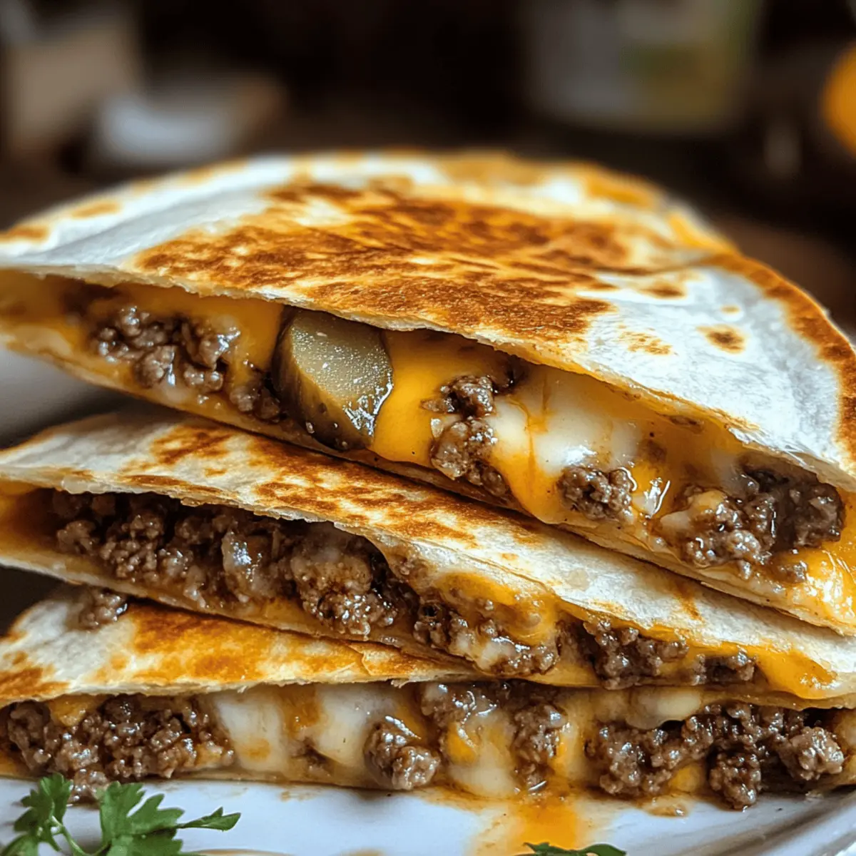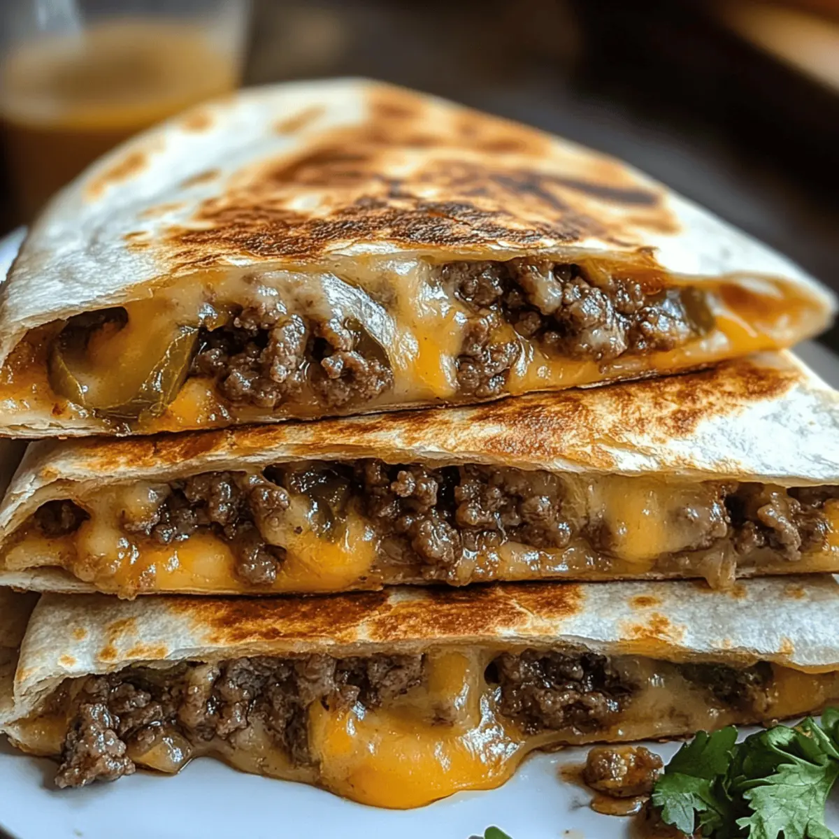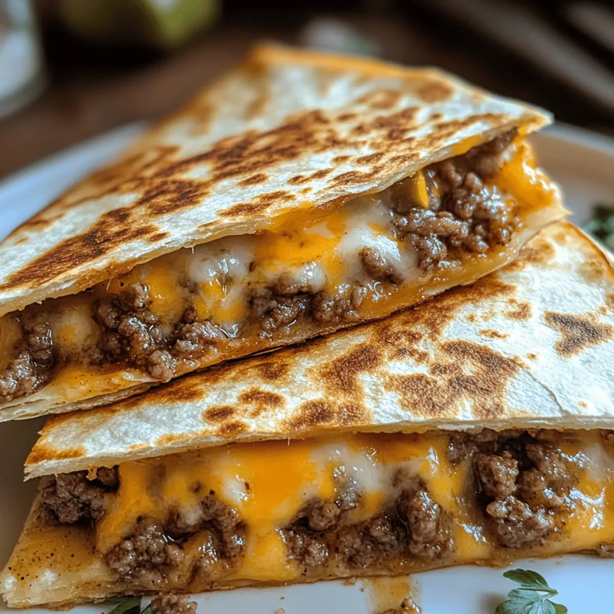 „Hast du schon einmal eine Grillparty geplant und dir gewünscht, das Ganze in eine köstliche Quesadilla zu verwandeln?“ Bei meinen Smashburger Quesadillas wird dieser Wunsch Wirklichkeit. Sie bieten eine fabelhafte Kombination aus würzigem, saftigem Rinderhack und geschmolzenem Käse, eingehüllt in eine warme Tortilla – und das alles in nur 20 Minuten! Diese schnell zuzubereitende Leckerei ist nicht nur ein Hit beim nächsten Spieleabend oder Familienessen, sondern lässt sich auch ganz nach deinem Geschmack anpassen, sogar als vegetarische Variante. Ob du nun einen klassischen Burger-Style, etwas mehr Schärfe oder unerwartete Toppings ausprobieren möchtest, mit diesen Quesadillas wird jeder Biss zum Genuss. Bist du bereit, deine Geschmacksnerven zu überraschen? Warum sind Smashburger Quesadillas einzigartig? Schnelligkeit: In nur 20 Minuten fertig, ideal für hektische Tage! Vielseitigkeit: Du kannst die Zutaten nach Belieben anpassen, sogar eine vegetarische Variante kreieren. Herzhafter Geschmack: Saftiges Rinderhackfleisch kombiniert mit schmelzendem Käse, perfekt für Burgerliebhaber. Kreative Toppings: Experimentiere mit ungewöhnlichen Ergänzungen wie Kimchi oder Hot Sauce, um jeden Biss aufregend zu gestalten. Party-tauglich: Perfekt für Spieleabende oder Familienessen – diese Quesadillas sind ein echter Publikumsliebling! Smashburger Quesadilla Zutaten • Für eine köstliche Fusion aus Geschmack und Bequemlichkeit. Rinderhackfleisch – die wichtigste Proteinquelle; verwende 80/20 Beef für optimalen Geschmack und Saftigkeit. Als Variante kann man auch Impossible Meat oder gewürzte schwarze Bohnen für eine vegetarische Option verwenden. Salz, Pfeffer, Knoblauchpulver – essentielle Gewürze, die den Geschmack verbessern; mit geräuchertem Paprika und Zwiebelpulver für zusätzliche Tiefe variieren. Mehl-Tortillas – die ideale Hülle für die Füllung; große (Burrito-Größe) sind am besten geeignet. Glutenfreie Tortillas (z. B. aus Mandelmehl) sind eine tolle Alternative. Geriebener Käse – sorgt für Cremigkeit und Geschmack; eine Mischung aus scharfem Cheddar und Amerikanischem Käse wird empfohlen. Für eine milchfreie Variante eignen sich pflanzliche Käsealternativen. Optionale Toppings – verfeinern das Gericht; probiere Essiggurken, Zwiebeln oder Burger-Sauce aus. Sei kreativ mit Kimchi, scharfer Sauce oder zerdrückten Chips für einen aufregenden Twist. Diese Smashburger Quesadillas bieten nicht nur ein schnelles und schmackhaftes Erlebnis, sondern auch die Möglichkeit, sie nach deinem eigenen Geschmack zu gestalten! Schritt-für-Schritt-Anleitung für Smashburger Quesadillas Schritt 1: Pfanne vorheizen Erhitze eine Gusseisenpfanne oder Grillplatte bei mittlerer bis hoher Hitze für etwa 5 Minuten. Wenn die Pfanne heiß ist, überprüfe sie mit einem Wassertropfen, der sofort verdampft. Diese Vorbereitung sorgt für eine perfekte Kruste auf deinen Smashburger Quesadillas. Schritt 2: Fleisch vorbereiten Nimm eine handvoll gewürztes Rinderhackfleisch und forme es auf einer Hälfte jeder Tortilla zu einer dicken Scheibe. Achte darauf, dass das Fleisch gut verteilt ist, um gleichmäßiges Garverhalten sicherzustellen. Diese Füllung ist entscheidend für den herzhaften Geschmack deiner Quesadillas. Schritt 3: Fleisch braten Lege die Tortilla mit der Fleischseite nach unten in die heiße Pfanne. Koche sie für 2-3 Minuten, bis das Fleisch knusprig und braun aussieht. Achte darauf, dass die Ränder der Tortilla goldbraun werden, um das perfekte Ergebnis deiner Smashburger Quesadillas zu erzielen. Schritt 4: Käseschicht hinzufügen Wende die Tortilla vorsichtig um, sodass das Fleisch oben ist, und streue eine großzügige Menge geriebenen Käse darüber. Falten die Tortilla in der Mitte und drücke leicht, damit der Käse schmelzen kann. Dies sorgt für eine cremige Füllung in deiner Quesadilla. Schritt 5: Quesadillas grillen Grille die gefaltete Tortilla für etwa 2-3 Minuten auf jeder Seite, bis sie goldbraun und knusprig ist. Du erkennst, dass sie fertig sind, wenn der Käse an den Rändern herausschmilzt. Diese Phase ist entscheidend für den perfekten Crunch und die geschmolzene Füllung. Schritt 6: Ruhen lassen und servieren Lasse die Smashburger Quesadillas 1-2 Minuten ruhen, damit der Käse etwas fester wird und beim Schneiden nicht ausläuft. Schneide sie dann in Dreiecke und serviere sie mit deinen Lieblings-Toppings für das beste Geschmackserlebnis. Vorbereitungen für Smashburger Quesadillas Diese Smashburger Quesadillas sind ideal für die Vorbereitung, um dir auf hektischen Abenden Zeit zu sparen! Du kannst das Rinderhackfleisch bereits bis zu 24 Stunden im Voraus würzen und in einem luftdichten Behälter im Kühlschrank aufbewahren – das Geschmackserlebnis wird dadurch intensiviert. Auch die Tortillas und der Käse können im Voraus bereitgelegt werden, indem du die tortillas einzeln in Frischhaltefolie einwickelst, um ein Austrocknen zu vermeiden. Wenn du bereit bist, die Quesadillas zuzubereiten, erwärme einfach eine Pfanne, forme die vorbereiteten Zutaten und grille sie für 2-3 Minuten pro Seite, bis sie goldbraun sind. So hast du nicht nur ein köstliches Gericht, sondern auch mehr Zeit für die Dinge, die dir wichtig sind! Lagerungstipps für Smashburger Quesadillas Raumtemperatur: Lasse die Smashburger Quesadillas nach dem Kochen vollständig abkühlen, bevor du sie bei Raumtemperatur bis zu 2 Stunden aufbewahrst. Achte darauf, sie vor Zugluft zu schützen. Kühlschrank: Bewahre die gekochten Quesadillas in einem luftdichten Behälter im Kühlschrank auf, wo sie bis zu 3 Tage frisch bleiben. Zum besten Geschmack erhitze sie einfach in einer Pfanne oder im Airfryer. Gefrierer: Du kannst die Smashburger Quesadillas auch einfrieren. Wickele sie nach dem Abkühlen fest in Frischhaltefolie und lege sie in einen Gefrierbeutel. Sie sind bis zu einem Monat haltbar. Wiedererwärmen: Zum Aufwärmen die gefrorenen Quesadillas am