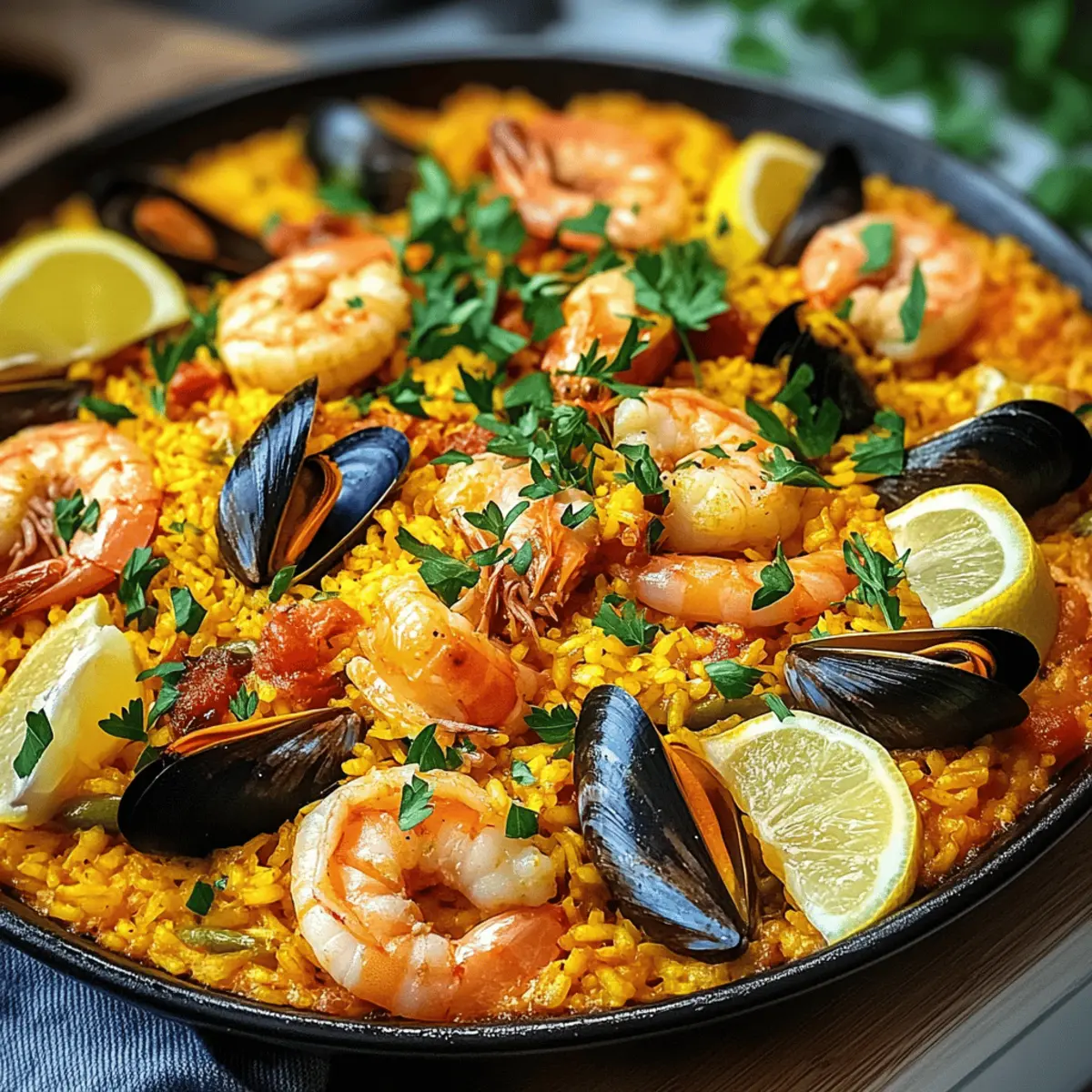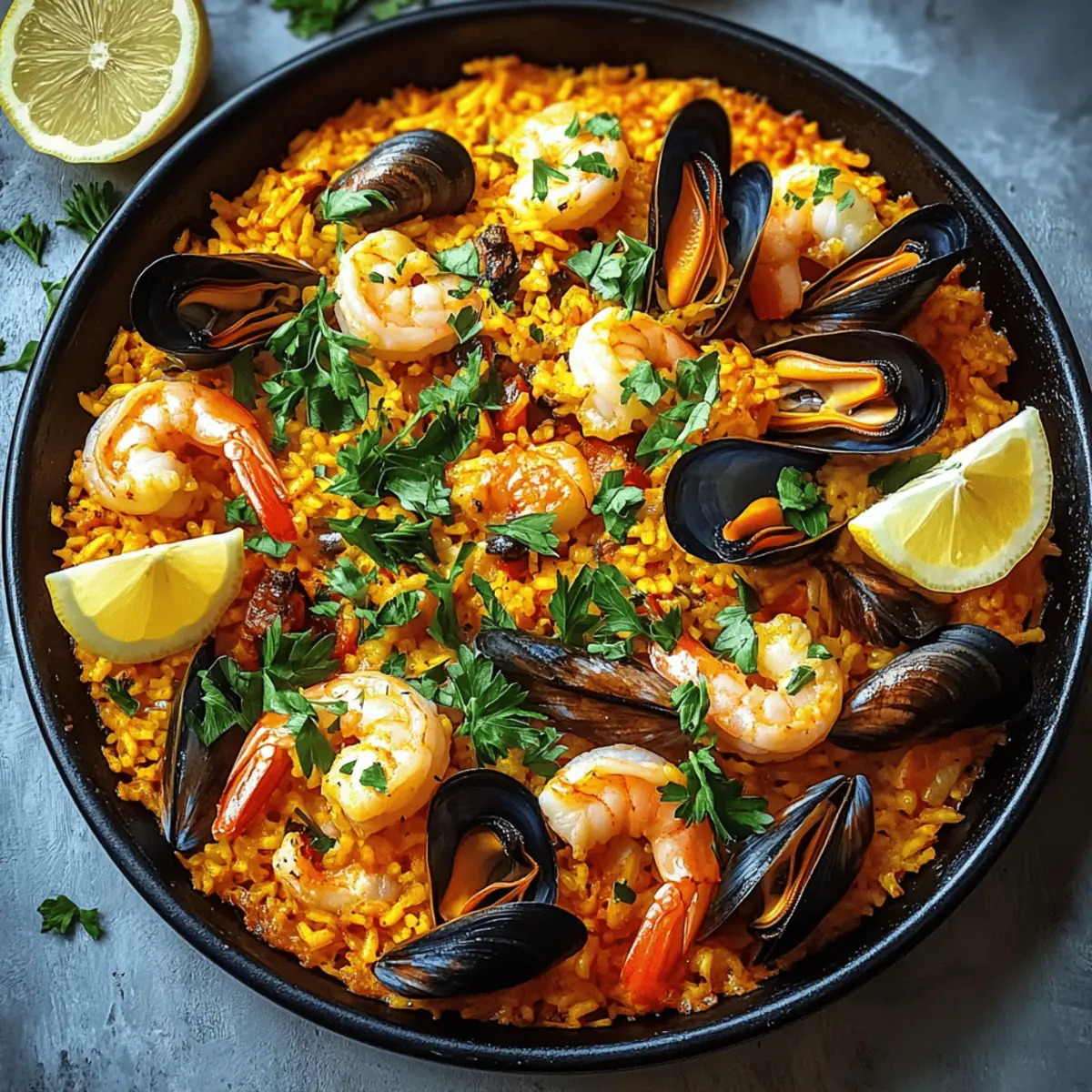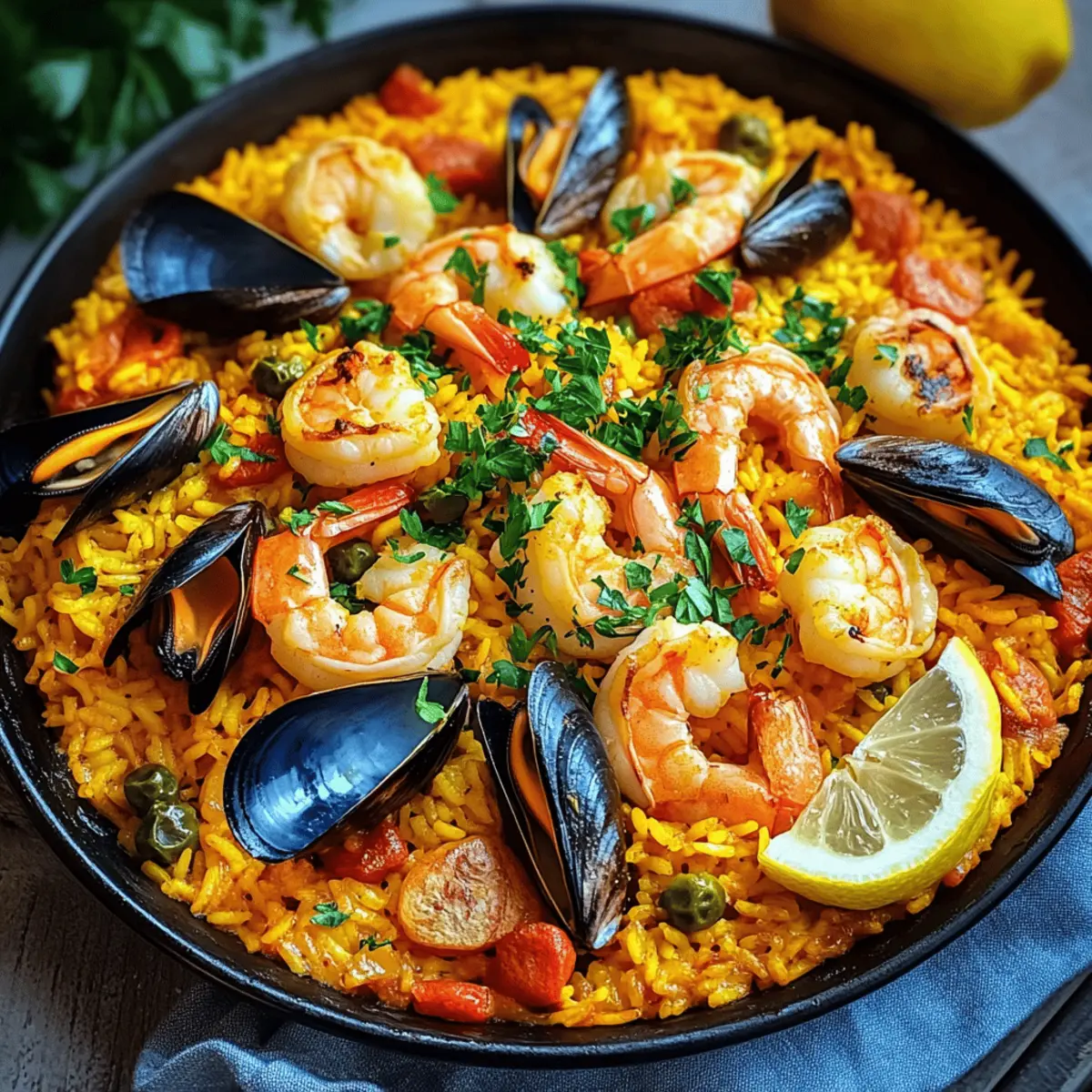 Während ich das köstliche Aroma von frischem Meeresfrüchten in meiner Küche wahrnehme, kann ich mir nichts Schöneres vorstellen, als eine Runde Freunde zum Dinner einzuladen. Heute präsentiere ich euch ein Highlight meiner kulinarischen Abenteuer: Spanische Paella Meeresfrüchte aus dem Ofen. Diese einfache und zugleich beeindruckende Zubereitung bringt den Zauber der mediterranen Küche direkt auf euren Tisch. Sie kombiniert zarte Meeresfrüchte mit aromatischen Gewürzen und sorgt für ein unvergessliches Geschmackserlebnis. Zudem ist die Zubereitung im Ofen perfekt für alle, die ein schnelles und stressfreies Abendessen suchen, ohne auf den traditionellen Geschmack verzichten zu müssen. Seid ihr bereit, mit mir in die Welt von Farben und Aromen einzutauchen? Warum ist diese Paella ein Muss? Einfachheit: Mit nur wenigen Schritten und ohne ständiges Rühren bietet diese Back-Paella eine stressfreie Möglichkeit, authentischen Geschmack zu genießen. Vielseitigkeit: Ihr könnt die Meeresfrüchte nach Belieben variieren oder sogar saisonales Gemüse hinzufügen – ideal für jeden Geschmack! Aromatisch: Die Kombination aus frischen Kräutern und Gewürzen, insbesondere der edlen SafranNote, sorgt für ein unvergleichliches Geschmackserlebnis. Visuelles Highlight: Diese Paella wird zum Blickfang auf jedem Tisch, mit ihrer bunten Mischung aus Zutaten und dem appetitlichen Aroma. Schnell und unkompliziert: Perfekt für ein gemütliches Abendessen mit Freunden, das weniger Aufwand erfordert und mehr Zeit für Genuss lässt. Entdeckt auch unsere weiteren Kochrezepte für schnelle Gerichte, die das Kochen leichter machen! Spanische Paella Meeresfrüchte Ofen Zutaten • Hier sind die Zutaten, die ihr für diese köstliche spanische Paella Meeresfrüchte Ofen benötigt: Für den Reis • Paella Reis (500g) – sorgt für die perfekte Basis, verwendet Rundkornreis für beste Ergebnisse. • Fischbrühe (1 Liter) – gibt dem Reis einen intensiven Meeresgeschmack. Gemüsebrühe kann auch verwendet werden. Für die Meeresfrüchte • Gemischte Meeresfrüchte (1 kg) – wählt frische Garnelen, Muscheln, Tintenfisch und Calamari für eine geschmackliche Vielfalt. Für das Gemüse • Zwiebel (1 große, fein gehackt) – verleiht der Paella Süße und Tiefe. • Knoblauch (2 Zehen, gepresst) – intensiviert das Aroma und den Geschmack. • Rote Paprika (1, gewürfelt) – bringt Farbe und Süße in das Gericht. • Grüne Paprika (1, gewürfelt) – bietet eine dezente Bitterkeit zur Geschmacksbalance. • Tomaten (2, gerieben oder fein gehackt) – sorgt für die nötige Säure und Feuchtigkeit. Für die Gewürze und Öle • Olivenöl (100ml, extra vergine) – zum Anbraten der Zutaten; steigert die Aromen. • Weißwein (100ml, trocken) – fügt Säure und Komplexität hinzu. • Safran (1 TL, Fäden) – das Signature-Gewürz der Paella, sorgt für die auffällige Farbe und den charakteristischen Geschmack. • Geräuchertes Paprikapulver (1 TL) – bringt Tiefe und einen subtilen rauchigen Geschmack. • Kurkuma (1/2 TL, optional) – für zusätzliche Farbe; kann weggelassen werden. • Salz und Pfeffer – zum Abschmecken; essentielle Gewürze. Zum Garnieren • Frische Petersilie (gehackt) – verbessert die Präsentation und Frische. • Zitrone (1, in Spalten geschnitten) – für eine erfrischende Note beim Servieren. Optionale Zutaten • Erbsen – können für zusätzliche Farbe und Textur hinzugefügt werden. • Chorizo (in Scheiben) – für mehr Geschmack und ein herzhaftes Aroma. Bereitet euch vor auf ein kulinarisches Erlebnis mit dieser köstlichen spanischen Paella Meeresfrüchte Ofen! Schritt-für-Schritt-Anleitung für Spanische Paella Meeresfrüchte Ofen Step 1: Meeresfrüchte vorbereiten Reinige und bereite alle Meeresfrüchte vor. Wenn du gefrorene Meeresfrüchte verwendest, lasse sie vollständig auftauen. Achte darauf, die Garnelen zu schälen, die Muscheln zu inspizieren und die Tintenfische in Ringe zu schneiden. Dies sorgt für eine gleichmäßige Garung in deiner spanischen Paella Meeresfrüchte aus dem Ofen. Step 2: Gemüse schneiden Hacke die Zwiebel fein, presse die Knoblauchzehen und würfle sowohl die rote als auch die grüne Paprika sowie die Tomaten. Diese frisch geschnittenen Zutaten werden die Basis für das Aroma deiner Paella. Stelle sicher, dass alles bereit ist, bevor du mit dem Kochen beginnst, um einen reibungslosen Ablauf zu gewährleisten. Step 3: Safran einweichen Lege die Safranfäden in einen kleinen Behälter und übergieße sie mit warmem Fischbrühe. Lasse sie etwa 20 Minuten ziehen, damit sich das volle Aroma entfalten kann. Dieser Schritt ist entscheidend für die charakteristische Farbe und den Geschmack deiner spanischen Paella Meeresfrüchte aus dem Ofen. Step 4: Ofen vorheizen Heize den Ofen auf 200°C vor. Diese Temperatur ermöglicht ein gleichmäßiges Garen der Paella und sorgt dafür, dass die Aromen der Meeresfrüchte und Gewürze gut zusammenkommen. Während der Ofen aufheizt, kannst du mit dem nächsten Schritt fortfahren. Step 5: Aromaten anbraten Erhitze in einer großen ofenfesten Pfanne das Olivenöl bei mittlerer Hitze. Füge die gehackte Zwiebel hinzu und brate sie etwa 5 Minuten an, bis sie glasig ist. Gib den Knoblauch dazu und brate ihn 1-2 Minuten mit, bis er duftet. Diese Basis wird den Geschmack deiner Paella intensivieren. Step 6: Gemüse hinzufügen Gib die gewürfelten Paprika in die Pfanne und brate sie weitere 5 Minuten an, bis sie weich sind. Füge die geriebenen oder fein gehackten Tomaten hinzu und würze die Mischung mit Salz und Pfeffer. Lass alles weitere 5 Minuten kochen, bis die Sauce leicht eingedickt ist. Dies bringt frische und Süße in deine spanische Paella Meeresfrüchte aus dem Ofen. Step 7: Reis anrösten Rühre den Paellareis in die Gemüsebasis ein und sorge dafür, dass jeder Korn gut mit dem Öl und den Aromen überzogen ist. Röste den Reis 2-3 Minuten lang an, bis er leicht durchs