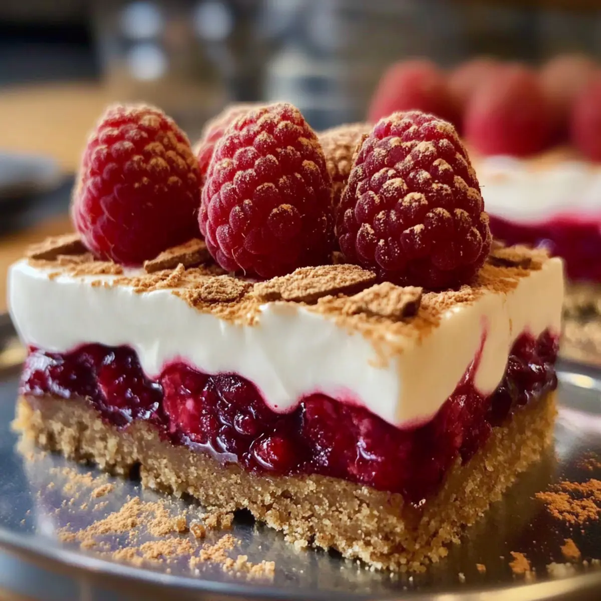 Ein unwiderstehlicher Duft von Gewürzen und frischen Beeren umhüllt die Küche, während ich über mein neuestes Dessert nachdenke: das Spekulatius-Dessert mit Himbeeren. Es vereint die knusprige Textur der würzigen Spekulatius-Kekse mit einer cremigen Quarkschicht und einer fruchtigen Himbeertopping, das alles zu einem festlichen Genuss macht. Dieses Rezept ist nicht nur einfach zuzubereiten, sondern auch ein echter Blickfang auf jedem Weihnachtsbuffet. Die Kombination aus cremigem, fruchtigem und knusprigem macht es zu einem perfekten Festtagsdessert für deine Lieben. Wer kann da widerstehen? Lass uns gemeinsam herausfinden, wie dieses köstliche Dessert nach einem festlichen Dinner für strahlende Gesichter sorgt! Warum wirst du dieses Rezept lieben? Einfachheit: Die Zubereitung ist denkbar unkompliziert – ideal für Köche aller Erfahrungsstufen. Festliche Aromen: Die Kombination aus gewürzten Spekulatius-Keksen, cremigem Quark und frischen Himbeeren sorgt für einen einzigartigen Geschmack, der Weihnachtsstimmung verbreitet. Vielseitigkeit: Du kannst die Himbeeren problemlos gegen andere Beeren oder sogar saisonales Obst austauschen, ganz nach deinem Geschmack! Blickfang: Mit seinen leuchtenden Farben und der ansprechenden Schichtung wird dieses Dessert garantiert die Aufmerksamkeit auf deinem Festtagsbuffet auf sich ziehen. Vorbereitungsfreundlich: Ideal für stressfreie Feiertage! Du kannst das Dessert bis zu zwei Tage im Voraus zubereiten, sodass du mehr Zeit für deine Lieben hast. Verpasse nicht die Möglichkeit, gemeinsames Backen für die Feiertage zu genießen! Zutaten für das Spekulatius-Dessert mit Himbeeren • Für den Boden: Spekulatius-Kekse – Diese liefern die würzige, knusprige Basis; du kannst sie auch durch Lebkuchen oder andere Gewürzkekse ersetzen. Butter – Fügt Feuchtigkeit hinzu, um die Keksbrösel zu binden und eine stabile Struktur zu schaffen. • Für die Creme: Quark – Sorgt für eine cremige Textur, passt gut zum Spekulatius; ersetze ihn durch Ricotta oder griechischen Joghurt, falls nötig. Schlagsahne – Gibt der Creme Leichtigkeit; für eine leichtere Variante kannst du auch Kokoscreme verwenden. Zucker – Süßt die Quarkmasse; passe die Menge nach Geschmack an oder verwende Honig oder Ahornsirup für eine natürliche Süße. • Für das Topping: Himbeeren – Bringen einen frischen, säuerlichen Kontrast zur Süße; andere Beeren wie Blaubeeren oder Erdbeeren sind ebenfalls geeignet. Finde heraus, wie köstlich dieses Spekulatius-Dessert mit Himbeeren wirklich ist! Schritt-für-Schritt-Anleitung für das Spekulatius-Dessert mit Himbeeren Step 1: Boden vorbereiten Zerdrücke die Spekulatius-Kekse in feine Brösel, indem du sie in einen Gefrierbeutel legst und mit einem Nudelholz oder einer Schüssel darauf klopfst. Schmelze 100 g Butter in einem kleinen Topf und vermenge sie gründlich mit den Keksbröseln. Drücke die Mischung fest auf den Boden einer Auflaufform oder Gläser, um eine feste Schicht zu bilden. Step 2: Creme zubereiten Gib 250 g Quark und 50 g Zucker in eine Rührschüssel und vermische sie gut. Schlage in einer separaten Schüssel 200 ml Schlagsahne mit einem Handmixer, bis sich weiche Spitzen bilden. Falte die geschlagene Sahne vorsichtig unter die Quarkmischung, bis eine glatte, cremige Konsistenz entsteht. Verteile die Quarkcreme gleichmäßig über die Keksbasis. Step 3: Topping hinzufügen Wasche 250 g frische Himbeeren vorsichtig unter kaltem Wasser und tupfe sie in einem Küchentuch trocken. Lege die Himbeeren gleichmäßig auf die Quarkschicht, so dass sie einen bunten, frischen Akzent setzen. Achte darauf, die Beeren vorsichtig zu platzieren, um sie nicht zu zerdrücken und die Farben schön zur Geltung zu bringen. Step 4: Kühlen Decke die Form oder die Gläser mit Frischhaltefolie ab und stelle das Spekulatius-Dessert mit Himbeeren für mindestens 2 Stunden in den Kühlschrank. Dies lässt die Aromen gut miteinander verschmelzen und sorgt dafür, dass das Dessert fest wird. Step 5: Servieren Nimm das Dessert kurz vor dem Servieren aus dem Kühlschrank. Optional kannst du es mit zusätzlichen Himbeeren oder einem Minzblatt garnieren, um es noch ansprechender zu gestalten. Schneide die Portionen gleichmäßig aus, wenn du es in einer Form servierst. Was passt zum Spekulatius-Dessert mit Himbeeren? Ein festliches Essen in der kalten Jahreszeit wird durch die richtigen Begleiter zum Hochgenuss. Würziger Glühwein: Ein aromatisches Getränk, das die warmen Gewürze der Spekulatius-Kekse hervorhebt und perfekt zum Dessert passt. Die süßen und fruchtigen Noten ergänzen die Himbeeren hervorragend. Cremige Vanilleeis: Eine sanfte, kalte Ergänzung, die der köstlichen Textur des Desserts eine Zusatzdimension verleiht. Zusammen mit der Himbeernote entsteht ein himmlischer Kontrast. Winterlicher Salat: Ein frischer Salat mit Rucola, Nüssen und Apfelstücken bringt einen knackigen Biss und sorgt für einen klaren, frischen Geschmack zwischen den süßen letzten Gängen. Zimtige Kaffeekreation: Serviere den Kaffee mit einem Hauch Zimt oder Nelken für ein intensives Aroma, das die festlichen Aromen des Spekulatius-Desserts mit Himbeeren wunderbar ergänzt. Käseplatte: Eine Auswahl an würzigen Käsesorten, die den süßen Noten des Desserts eine schöne Balance bieten kann. Den Käse mit etwas Honig oder Feigenmarmelade zu kombinieren, sorgt für ein aufregendes Geschmackserlebnis. Schokoladentorte: Ein dunkler, reicher Kuchen bringt die perfekte Süße, ohne vom Dessert abzulenken. Die Kombination aus Schokolade und Himbeeren ist klassisch und unwiderstehlich. Expert-Tipps für das Spekulatius-Dessert Stabiler Boden: Achte darauf, dass die Keksbrösel gut mit der Butter vermischt sind und fest angedrückt werden, um eine stabile Basis für das Spekulatius-Dessert mit Himbeeren zu schaffen. Frische Himbeeren: Verwende nur frische Himbeeren, um einen optimalen Geschmack zu gewährleisten. Zerdrückte Beeren kön