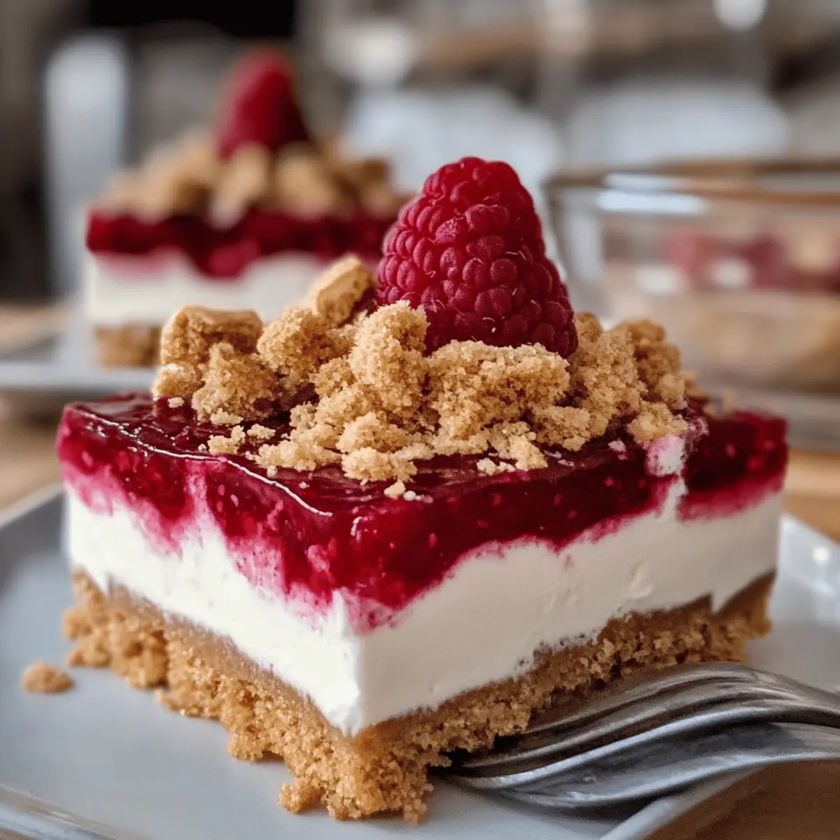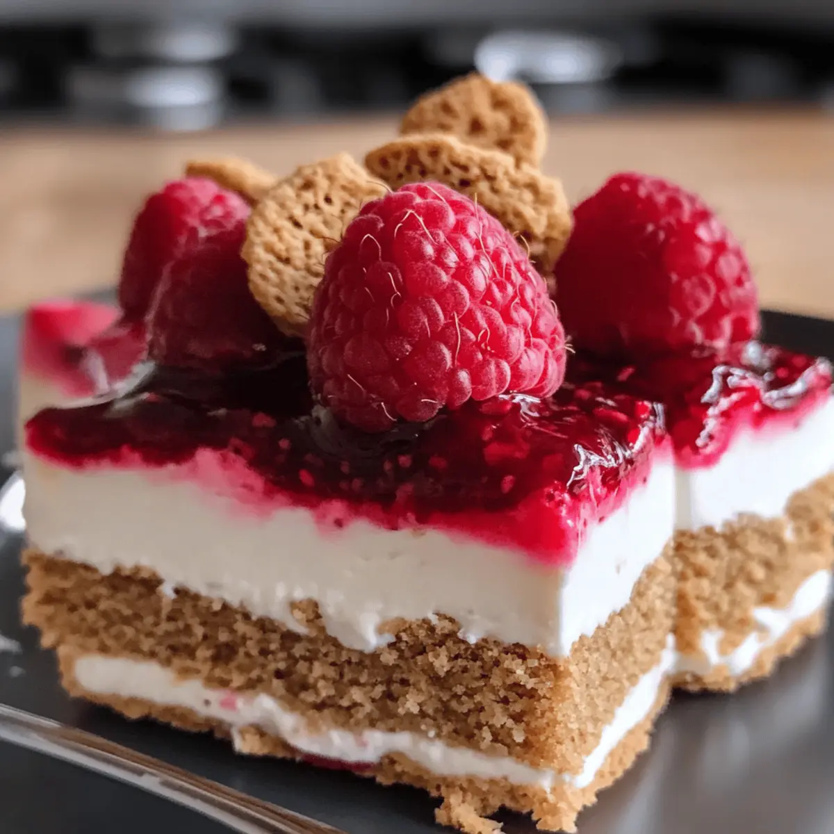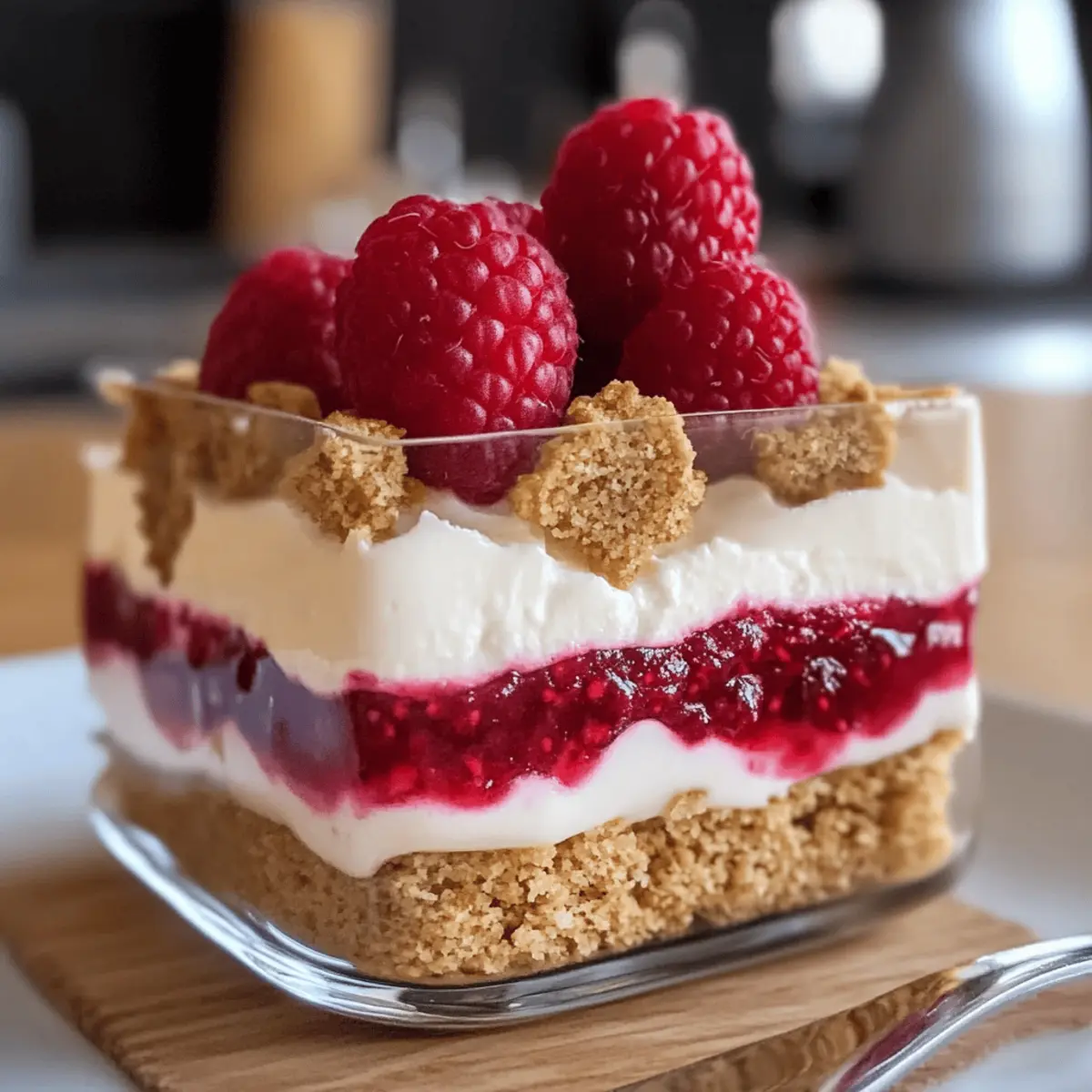Einzelne Schichten: Um die Textur zu erhalten, lagere die Keksbasis, die Creme und das Himbeertopping separat, bis du bereit bist, das Dessert zu servieren.