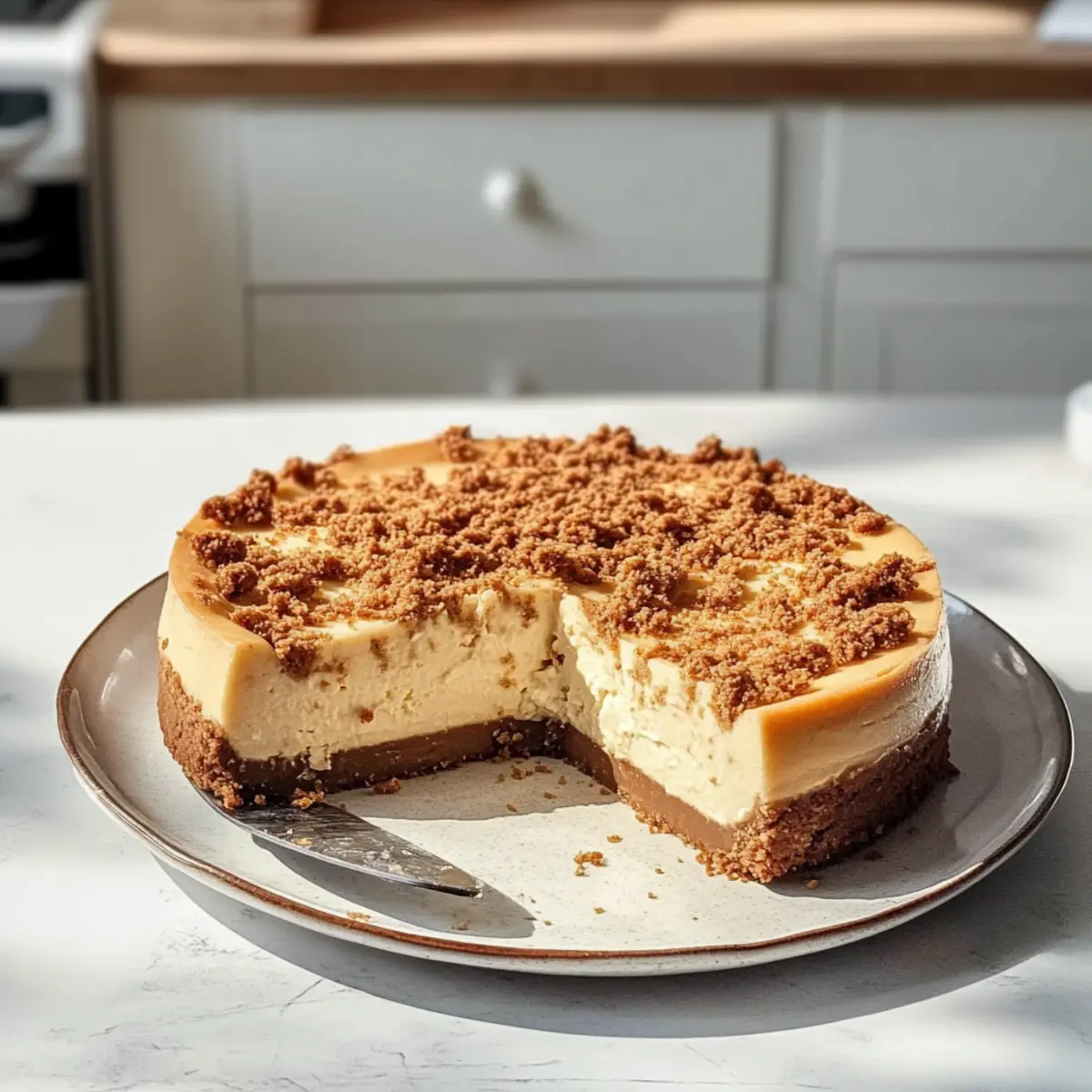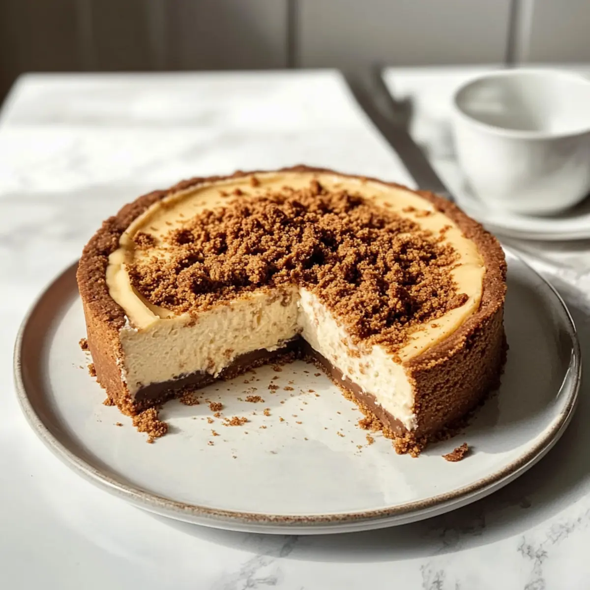 Ein cremiger Spekulatius-Käsekuchen mit Keksboden und Streuseln – perfekt für festliche Anlässe.