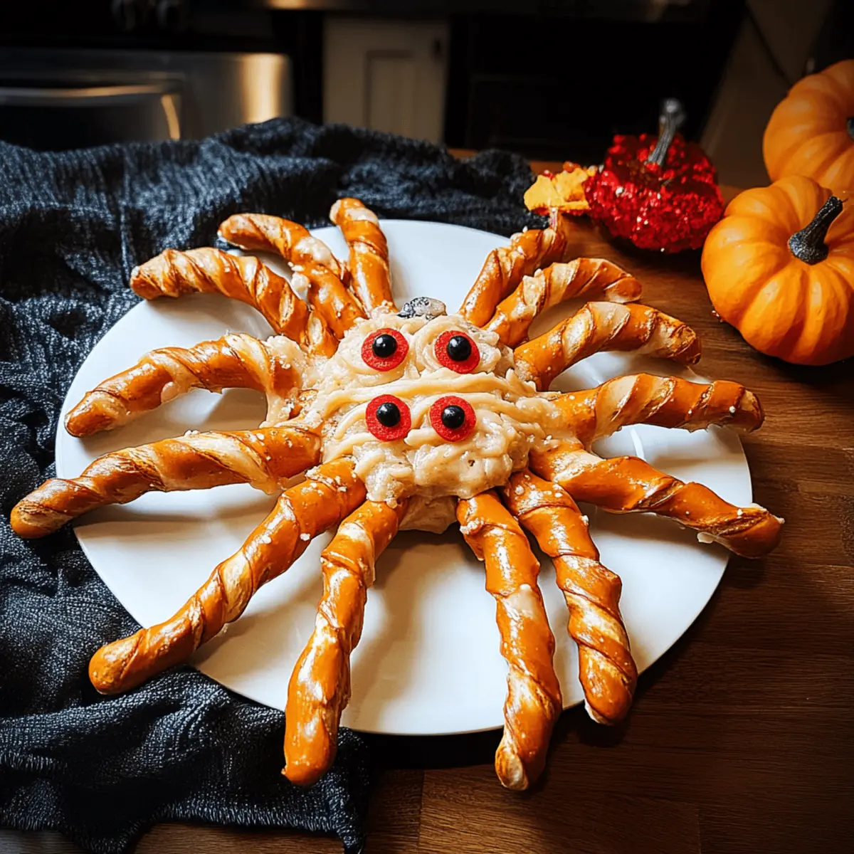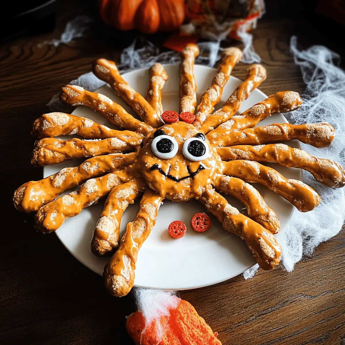 Diese Spinne aus gefrorenen Laugenstangen ist der perfekte gruselige Snack für Halloween.