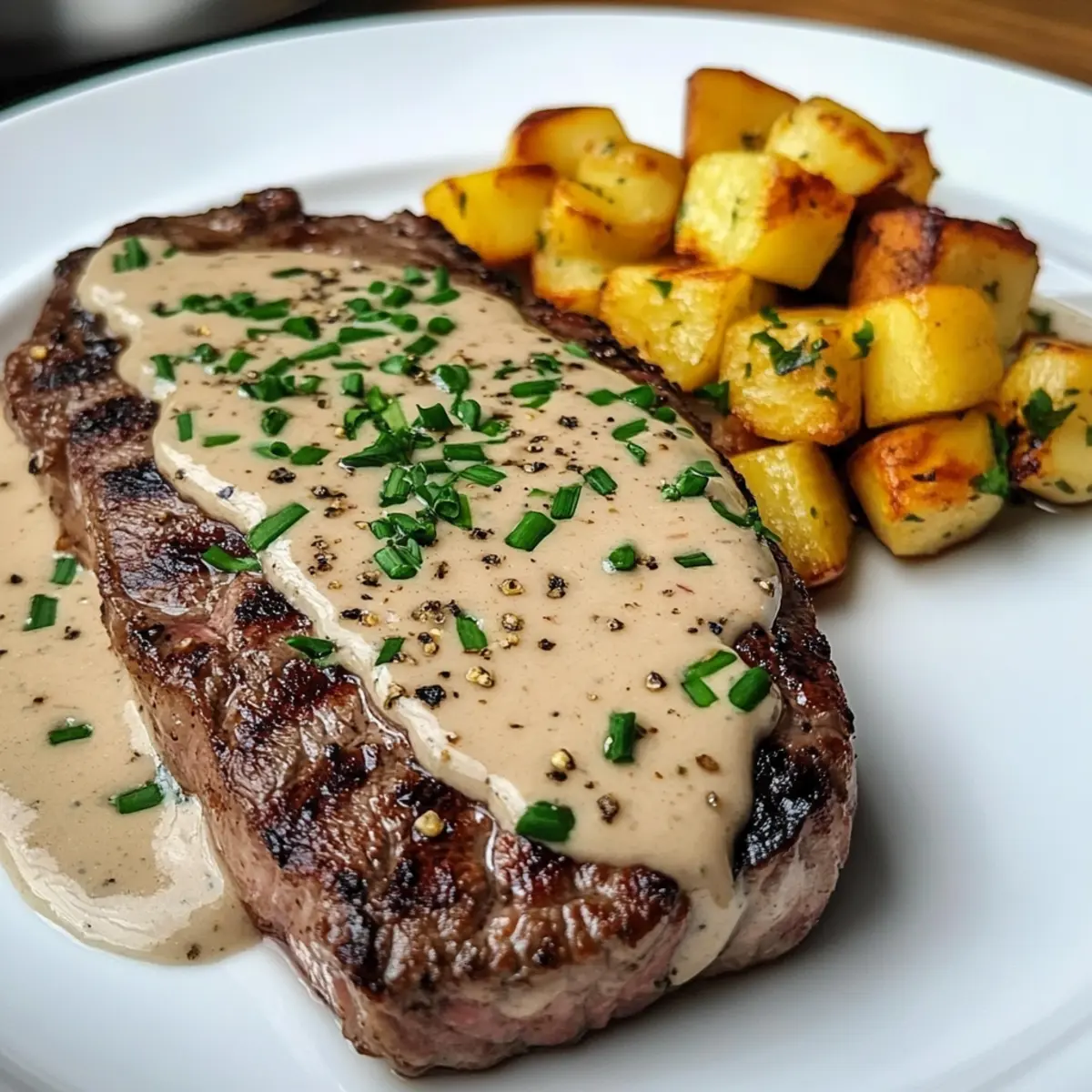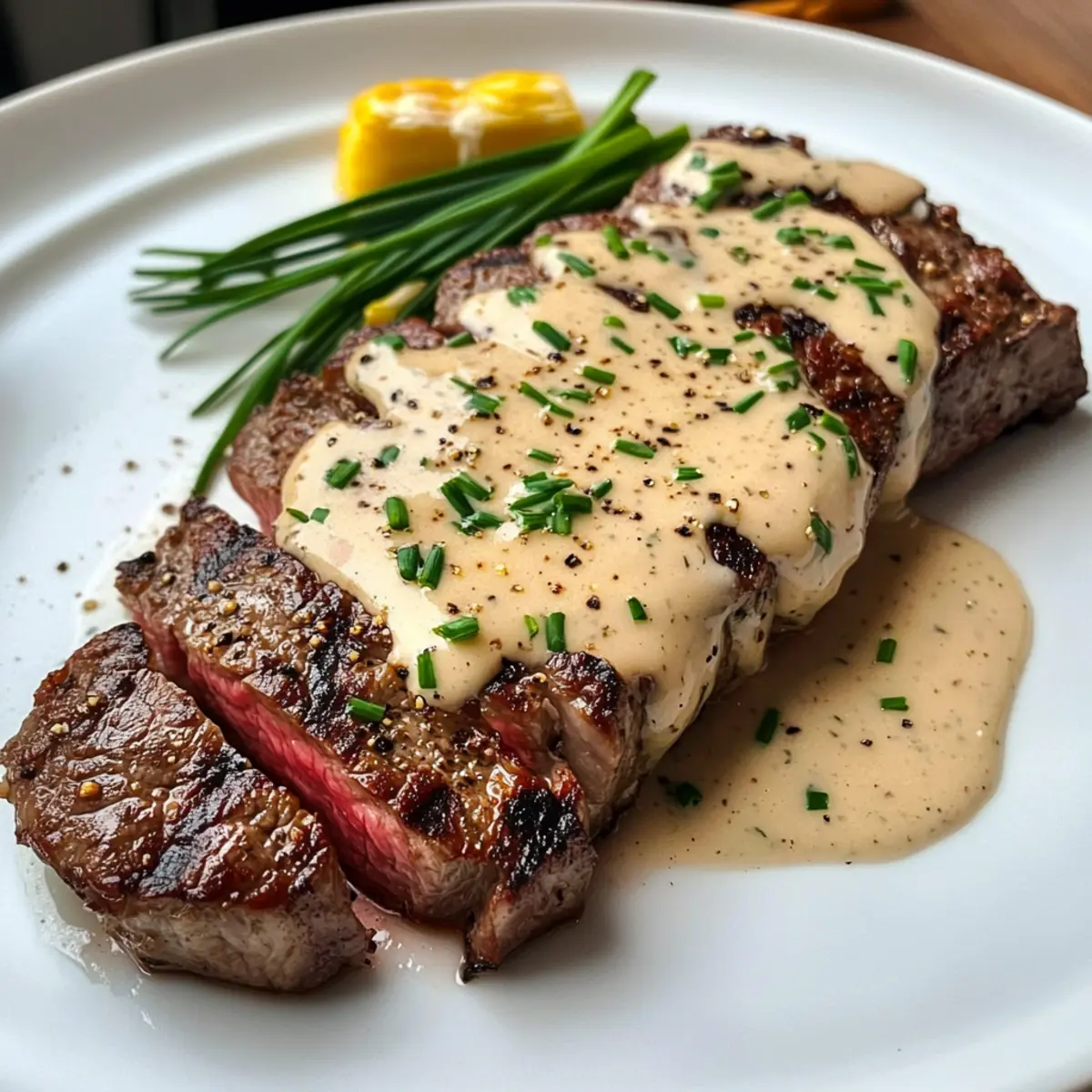 Einen köstlichen Hauch von Luxus in Ihrer Küche? Wenn ich an ein Gericht denke, das sowohl Gaumenfreude als auch die Eleganz eines Restaurants verkörpert, ist es Steak mit Knoblauch-Kräuter-Cremesauce. Diese Kombination aus saftigem Ribeye und einer cremigen, aromatischen Sauce entführt mich in eine Welt voller Genuss. Das Beste daran? Die Zubereitung ist schnell und einfach, sodass Sie mit minimalem Aufwand ein beeindruckendes Abendessen zaubern können, das Ihre Gäste in Staunen versetzt – perfekt für ein feines Dinner oder ein entspanntes Wochenendessen. Neugierig, wie Sie dieses kulinarische Meisterwerk selbst kreieren können? Lassen Sie uns gleich loslegen! Warum ist dieses Steak unwiderstehlich? Genuss pur: Der saftige Ribeye steckt voller Geschmack und macht jede Biss zu einem Erlebnis. Einfachheit: Mit wenigen Grundzutaten zaubern Sie ein Gericht, das aussieht und schmeckt wie im besten Restaurant. Aromatische Kombination: Die Kombination aus Knoblauch, frischen Kräutern und cremiger Sauce bringt Ihre Geschmacksknospen zum Tanzen. Flexibilität: Variieren Sie die Kräuter oder fügen Sie dezent pikante Pilze hinzu, um Ihr eigenes Meisterwerk zu kreieren. Beeindruckende Beilagen: Servieren Sie es mit knusprigen Röstkartoffeln oder buttrigen Kartoffelbrei, um das Erlebnis abzurunden! Steak mit Knoblauch-Kräuter-Cremesauce: Zutaten Für das Steak • Ribeye-Steaks – Achten Sie auf hochwertige Schnitte für den bestmöglichen Geschmack und die Zartheit. • Salz & schwarzer Pfeffer – Diese Grundgewürze heben den natürlichen Geschmack des Steaks hervor. • Rinderfett (2-3 EL) – Fügt Geschmack hinzu und sorgt für eine perfekte Kruste; kann durch Olivenöl oder Butter ersetzt werden. Für die Sauce • Butter (1 EL + 2 EL) – Wird sowohl zum Anbraten als auch zur Verfeinerung der Sauce verwendet. • Knoblauchzehen (2) – Bringt Tiefe und Aroma in Ihre Knoblauch-Kräuter-Cremesauce ein. • Hühnerbrühe (½ Tasse) – Sorgt für die reichhaltige Basis; eine halbe Hühnerbouillon kann verwendet werden, wenn keine frische Brühe vorhanden ist. • Schlagsahne (½ Tasse) – Gibt der Sauce eine samtige Textur; für eine leichtere Variante kann auch halb-halb verwendet werden. • Schwarzer Pfeffer (¼ TL) – Verleiht der Sauce eine subtile Schärfe. • Frische Schnittlauch (3 EL) – Verleiht Frische und Farbe; sie machen das Gericht lebendig. • Zitronensaft (¼) – Schafft ein ausgewogenes Aroma und unterstützt die cremige Textur. Mit diesen köstlichen Zutaten können Sie das unwiderstehliche Steak mit Knoblauch-Kräuter-Cremesauce zubereiten, das sicher jeden Gaumen erfreuen wird! Schritt-für-Schritt-Anleitung für Steak mit Knoblauch-Kräuter-Cremesauce Step 1: Steak vorbereiten Das Ribeye-Steak sollte gründlich mit Küchenpapier abgetrocknet werden, um eine perfekte Kruste zu erzielen. Generös mit Salz und schwarzem Pfeffer würzen und es für 15-20 Minuten bei Raumtemperatur ruhen lassen. Dies sorgt dafür, dass das Steak gleichmäßig gart und der Geschmack perfekt zur Geltung kommt. Step 2: Zutaten für die Sauce vorbereiten Während das Steak ruht, bereiten Sie die Zutaten für die Knoblauch-Kräuter-Cremesauce vor. Den Knoblauch fein hacken und die Schnittlauch im Wechsel in kleine Stücke schneiden. Messen Sie die Butter, Hühnerbrühe und Sahne ab, und legen Sie einen frischen Zweig Rosmarin bereit. So sind Sie bereit, gleich loszulegen. Step 3: Steak anbraten Erhitzen Sie eine schwere Pfanne oder Gusspfanne bei mittlerer bis hoher Temperatur. Geben Sie 2-3 Esslöffel Rinderfett in die Pfanne, bis es schmilzt und leicht zu sprudeln beginnt. Beginnen Sie, die Fettschicht des Steaks für 30-60 Sekunden zu braten, bevor Sie die gewürzte Seite für 1,5 Minuten nach unten legen. Geben Sie dem Steak die Zeit, eine goldbraune Kruste zu entwickeln. Step 4: Steak wenden und aromatisieren Nach 1,5 Minuten wenden Sie das Steak vorsichtig, um die andere Seite anzubraten. Braten Sie es wiederum für etwa 1,5 Minuten und legen Sie den vorbereiteten Rosmarinzweig in die Pfanne. Dies verleiht dem Steak ein herrliches Aroma, während es auf den Punkt gegart wird. Ein idealer Garzeitpunkt ist, wenn das Steak mittlere Garstufe (medium rare) erreicht. Step 5: Steak ruhen lassen Entfernen Sie das Steak aus der Pfanne und lassen Sie es auf einem Schneidebrett für ein paar Minuten ruhen. Dies ermöglicht es dem Saft, sich im Fleisch zu verteilen und es saftig zu halten. Währenddessen sollten Sie das überschüssige Fett aus der Pfanne abgießen, um Platz für die Sauce zu schaffen. Step 6: Knoblauch und Butter anbraten In derselben Pfanne, in der das Steak gebraten wurde, geben Sie 2 Esslöffel Butter und den gehackten Knoblauch hinzu. Bei mittlerer Hitze 30-60 Sekunden sautieren, bis der Knoblauch duftet und leicht goldbraun ist. Achten Sie darauf, dass er nicht verbrennt, da das den Geschmack bitter machen kann. Step 7: Sauce zubereiten Sobald der Knoblauch aromatisch ist, ½ Tasse Hühnerbrühe und ½ Tasse Schlagsahne unterrühren. Lassen Sie die Mischung bei niedriger Hitze 2-4 Minuten leicht köcheln, bis sie leicht eindickt und sich die Aromen verbinden. Rühren Sie regelmäßig um, um ein Anbrennen zu verhindern und die perfekte Konsistenz zu erreichen. Step 8: Sauce verfeinern Fügen Sie ¼ Tasse Zitronensaft und 3 Esslöffel frischen Schnittlauch zur Sauce hinzu. Rühren Sie kalte Butter unter, bis sie vollständig schmilzt und die Sauce eine samtige Emulsion bildet. Dies gibt der Sauce ein schönes Finish und verstärkt den Geschmack. Step 9: Steak schneiden und anrichten Das Steak gegen die Faser in gleichmäßige Scheiben schneiden, sodass es zart auf dem Teller serviert werden kann. Geben Sie die reichhaltige Knoblauch-Kräuter-Cremesauce großzügig über die Steakscheiben und garnieren Sie sie mit zusätzlichem Schnittlauch. Servieren Sie das Gericht sofort und genießen Sie Ihren kulinarischen Erfolg! Was passt zu Steak mit Knoblauch-Kräuter-Cr