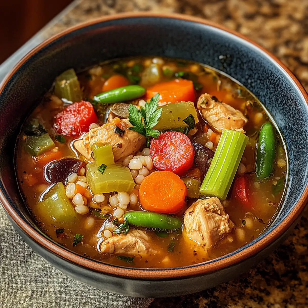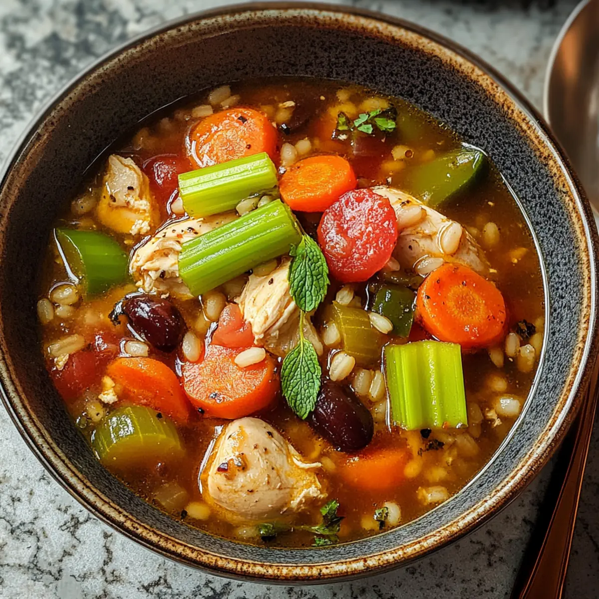 “Die Kälte draußen reicht bis in die Knochen, während ich in meiner Küche stehe und den beruhigenden Duft von frischem Gemüse und zartem Hühnchen wahrnehme. Diese Steinsuppe ist nicht nur ein Gericht, sondern ein echtes Warmherz-Mittagessen, das Erinnerungen an Familienabende weckt. Mit einer Kombination aus saftigen Hähnchenbeinen, bunten Gemüsesorten und dem herzhaften Biss von Gerste ist dieses Rezept nicht nur schnell zuzubereiten, sondern auch äußerst anpassbar – perfekt für jeden Geschmack und jede Gelegenheit. Egal, ob Sie einen geselligen Abend mit Freunden planen oder einfach nur eine Seele erwärmende Mahlzeit für sich selbst kochen möchten, diese Steinsuppe wird den Tisch teilen und Ihre Herzen erfreuen. Neugierig, welche Variationen Sie ausprobieren können? Lassen Sie uns gleich damit beginnen!” Warum werden Sie diese Steinsuppe lieben? Einfachheit: Die Zubereitung dieser Steinsuppe ist kinderleicht und benötigt nur grundlegende Kochfähigkeiten. Aromatische Vielfalt: Durch die Kombination von frischem Gemüse, zartem Hähnchen und herzhaften Kräutern entsteht ein reichhaltiger, einladender Geschmack. Vielseitigkeit: Sie können die Zutaten nach Belieben anpassen, sei es mit anderen Gemüsesorten oder Getreide wie Reis oder Quinoa – Ihrer Kreativität sind keine Grenzen gesetzt! Schnelle Zubereitung: In weniger als einer Stunde verwandeln Sie einfache Zutaten in ein wohltuendes Essen für die ganze Familie. Geselligkeit: Ob bei einem gemütlichen Abendessen oder einem leichten Mittagessen, diese einfache Steinsuppe ist immer ein Hit und wird Ihre Gäste begeistern. Nährstoffreich: Vollgepackt mit Vitaminen und Mineralien sorgt dieses Rezept für eine ausgewogene Mahlzeit, die Körper und Geist nährt. Lust auf mehr Ideen? Schauen Sie sich unsere anderen Variationen an, um Ihrer Kreativität freien Lauf zu lassen – Sie werden begeistert sein! Steinsuppe Zutaten • Für den Eintopf Ungesalzene Butter – Essenziell für die Bräunung des Hähnchens und fügt Reichtum hinzu. Hinweis: Verwenden Sie Olivenöl für eine leichtere Option. Hähnchenkeulen – Bieten zartes, saftiges Protein und verleihen der Brühe Geschmack. Hinweis: Können durch Hähnchenschenkel oder entbeintes Hähnchen ersetzt werden (Kochzeit anpassen). Gelbe Zwiebel – Bringt Süße und Tiefe in die Suppe. Hinweis: Schalotten sind ebenfalls eine gute Wahl. Karotten – Fügen natürliche Süße und lebendige Farben hinzu. Hinweis: Können durch Pastinaken für einen anderen Geschmack ersetzt werden. Sellerie – Verleiht aromatischen Geschmack und Knackigkeit. Hinweis: Kann weggelassen werden, wenn nicht gewünscht; verwenden Sie stattdessen Paprika. Knoblauch – Verbessert den Gesamtgeschmack mit aromatischem Savory. Hinweis: Frischer Knoblauch wird für den besten Geschmack empfohlen. Hühnerbrühe – Bildet die Geschmacksbasis der Suppe. Hinweis: Gemüsebrühe kann für eine vegetarische Version verwendet werden. Küchen- und schwarzer Pfeffer – Unverzichtbar für die Würzung. Hinweis: Nach Geschmack anpassen. Getrockneter Thymian, Rosmarin und Oregano – Verleihen warmen, erdigen Geschmack. Hinweis: Frische Kräuter können substituiert werden. Lorbeerblätter – Fügen subtile Kräuternoten zur Suppe hinzu. Hinweis: Vor dem Servieren entfernen. Rote Kartoffeln – Herzhaft und nehmen die Aromen der Suppe gut auf. Hinweis: Andere wachsige Kartoffeln können verwendet werden. Gerste – Fügt Kaubarkeit und Nährstoffe zum Gericht hinzu. Hinweis: Reis oder Quinoa können die Gerste ersetzen. Gehackte Tomaten aus der Dose – Trägt zur Säure und Süße bei. Hinweis: Frische Tomaten können ebenfalls verwendet werden (ca. 4-5 mittelgroße). Grüne Bohnen – Bringen Frische und Textur. Hinweis: Spargel oder Brokkoli können als Alternativen verwendet werden. Zucchini – Bietet einen milden Geschmack, der sich perfekt in der Suppe entfaltet. Hinweis: Gelbe Zucchini ist eine geeignete Alternative. Tiefgefrorene Erbsen – Fügen Süße und Farbe hinzu. Hinweis: Verwenden Sie frische Erbsen, wenn verfügbar, und passen Sie die Kochzeit an. Step-by-Step Instructions für Steinsuppe Step 1: Butter schmelzen und Hähnchen bräunen In einem großen Suppentopf bei mittlerer Hitze die ungesalzene Butter schmelzen. Die Hähnchenkeulen hinzufügen und auf allen Seiten goldbraun braten (ca. 6-8 Minuten). Sobald sie schön gebräunt sind, nehmen Sie das Hähnchen aus dem Topf und legen Sie es beiseite. Step 2: Gemüse sautieren Im selben Topf die gewürfelte Zwiebel, Karotten und Sellerie hinzufügen. Unter gelegentlichem Rühren etwa 5 Minuten lang anbraten, bis das Gemüse weich wird. Dann den gehackten Knoblauch hinzufügen und noch eine weitere Minute braten, bis der Knoblauch aromatisch ist. Step 3: Brühe und Kräuter hinzufügen Das gebräunte Hähnchen wieder in den Topf geben und die Hühnerbrühe dazugießen. Fügen Sie Kosher-Salz, schwarzen Pfeffer sowie die getrockneten Kräuter hinzu. Die Mischung zum Köcheln bringen und mindestens 10 Minuten sanft köcheln lassen, damit die Aromen sich entfalten können. Step 4: Kartoffeln und Gerste hinzufügen Die gewürfelten roten Kartoffeln und die Gerste einrühren. Das Ganze weiter köcheln lassen, bis die Kartoffeln und die Gerste gar sind und schön weich werden (etwa 25-30 Minuten). Überprüfen Sie regelmäßig, ob genügend Flüssigkeit vorhanden ist. Step 5: Tomaten und restliches Gemüse hinzufügen Die gehackten Tomaten (unverarbeitet) sowie die grünen Bohnen und die Zucchini in den Topf geben. Weiter köcheln lassen, bis das Gemüse durchgegart und zart ist (ca. 10-15 Minuten). Dabei gelegentlich umrühren, um ein Anbrennen zu vermeiden. Step 6: Mit Erbsen vollenden Die gefrorenen Erbsen unterrühren und nochmals 2-3 Minuten erhitzen, bis sie vollständig aufgetaut sind. Vor dem Servieren die Steinsuppe abschmecken und bei Bedarf die Gewürze anpassen, sodass sie perfekt gewürzt ist. Step 7: Servieren und genießen 