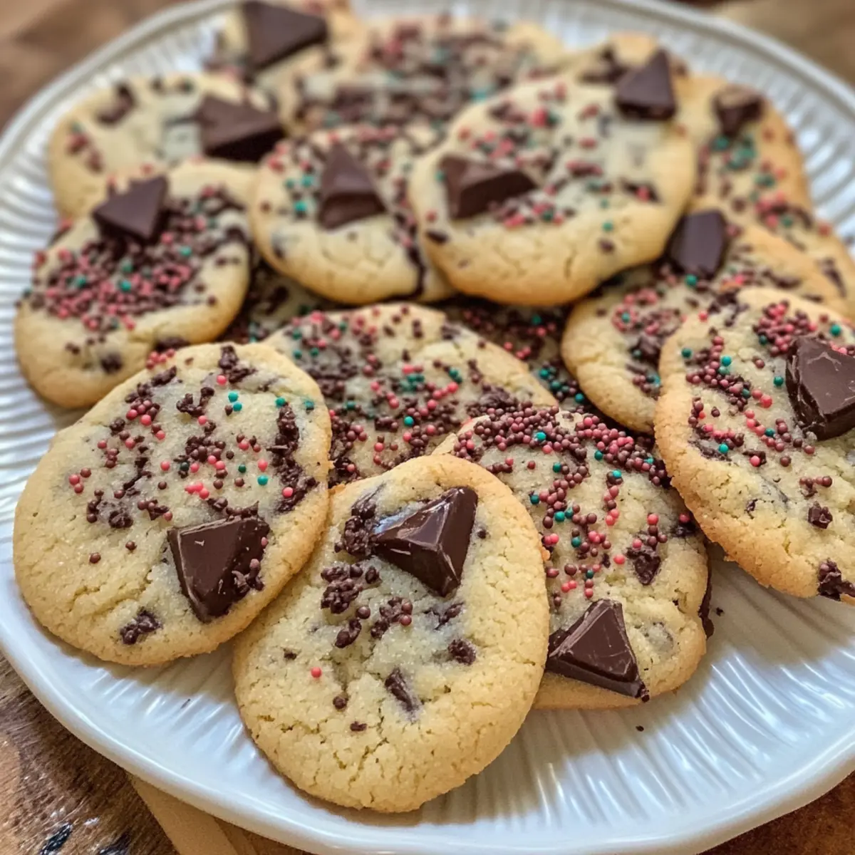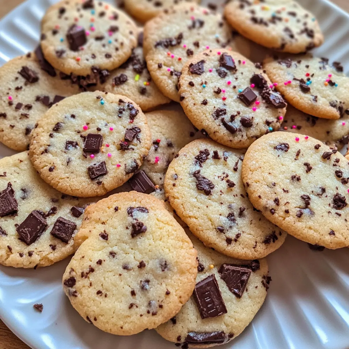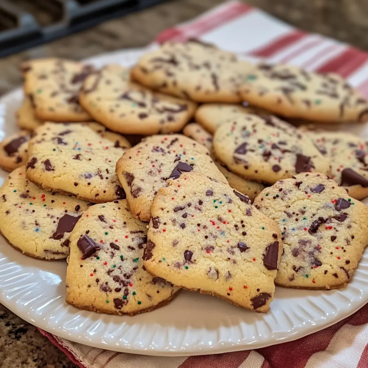 Die Lichter funkeln, der Duft von frisch gebackenen Plätzchen liegt in der Luft – es ist wieder diese zauberhafte Zeit des Jahres! Heute lade ich dich ein, meine einfachen Stracciatella Plätzchen zu entdecken, die nicht nur super schnell zubereitet sind, sondern auch ein Hit bei Groß und Klein. Mit ihrer zarten, krümeligen Textur und dem verführerischen Schokoladengeschmack sind sie die perfekte Ergänzung für jede Kaffeetafel in der Weihnachtszeit. Außerdem können die bunten Schokoladensprinkles und die kreativen Dekorationsmöglichkeiten selbst die kleinsten Bäcker begeistern und zum Ausprobieren anregen. Wer möchte nicht sein eigenes, festliches Meisterwerk kreieren? Lass uns gemeinsam in die Welt des Plätzchenbackens eintauchen und herausfinden, wie einfach es sein kann, ein Stückchen Weihnachtszauber nach Hause zu holen! Warum sind Stracciatella Plätzchen so beliebt? Einfachheit: Mit nur wenigen Grundzutaten sind diese Plätzchen schnell und unkompliziert zubereitet. Perfekt für Anfänger und erfahrene Bäcker gleichermaßen! Vielseitigkeit: Du kannst sie nach Belieben dekorieren – ob mit einer schokoladigen Glasur oder bunten Streuseln, deiner Kreativität sind keine Grenzen gesetzt. Kinderfreundlich: Ein tolles gemeinsames Backerlebnis für die ganze Familie! Lass die Kinder mithelfen, damit sie ihre eigenen Plätzchen kreieren. Festlicher Genuss: Die Kombination aus zartem Teig und schokoladigen Sprinkles macht diese Plätzchen zu einem echten Highlight auf jeder Kaffeetafel. Lange Haltbarkeit: In einer luftdichten Box bleiben sie bis zu zwei Wochen frisch – ideal für deine Weihnachtsvorbereitungen! Entdecke noch weitere kreative Ideen mit meinen Variationen und verwandle deine Stracciatella Plätzchen in ein persönliches Meisterwerk! Stracciatella Plätzchen Zutaten • Einfache Zutaten für köstliche Plätzchen! Für den Teig Mehl – sorgt für die Struktur der Plätzchen; du kannst es auch durch glutenfreies Mehl ersetzen. Butter – bringt Reichhaltigkeit und Feuchtigkeit; verwende kalte Butter oder veganer Margarine für eine milchfreie Variante. (Weinstein) Backpulver – dient als Triebmittel für eine leichte Konsistenz; reguläres Backpulver kann im gleichen Verhältnis verwendet werden. Milch – verbindet die Zutaten und sorgt für Feuchtigkeit; Mandel- oder Hafermilch sind tolle pflanzliche Alternativen. Bittermandelaroma – verstärkt den Geschmack mit einem Hauch von Mandel; kann weggelassen oder durch Vanilleextrakt ersetzt werden. Zucker – süßt die Plätzchen; achte auf die Menge oder verwende Kokoszucker für eine gesündere Option. Vanillezucker – fügt Vanillegeschmack hinzu; ersetze ihn durch die gleiche Menge Vanilleextrakt. Schokostreusel – sorgt für den charakteristischen Stracciatella-Look und -Geschmack; benutze dunkle oder Milchschokoladenglasur oder bunte Streusel zur Dekoration. Dekorationsideen Schokoladenglasur – fügt eine zusätzliche Schokoladennote hinzu und macht die Plätzchen besonders festlich; einfach über die abgekühlten Plätzchen träufeln. Bunte Streusel – machen deine Stracciatella Plätzchen nicht nur lecker, sondern auch hübsch; ideal für die kleinen Bäcker in der Familie! Entdecke, wie einfach es ist, mit dieser Zutatenliste deine eigenen Stracciatella Plätzchen zu zaubern! Schritt-für-Schritt-Anleitung für Stracciatella Plätzchen Schritt 1: Mehl und Backpulver vermengen Gib das Mehl und das Weinstein-Backpulver in eine große Schüssel und vermische beides gründlich. Stelle sicher, dass keine Klumpen vorhanden sind, da dies für eine gleichmäßige Teigkonsistenz sorgt. Dies ist die Grundlage für deine Stracciatella Plätzchen. Schritt 2: Butter mit feuchten Zutaten vermengen In einer separaten Schüssel die kalte Butter mit der Milch, dem Bittermandelaroma, dem Zucker und dem Vanillezucker gut verrühren, bis eine glatte Masse entsteht. Verwende einen Handmixer oder eine Küchenmaschine bei mittlerer Geschwindigkeit. Diese Mischung sorgt für die köstliche, reichhaltige Basis der Plätzchen. Schritt 3: Teig herstellen Füge die vorbereitete Mehl-Backpulver-Mischung nach und nach zur Butter-Mischung hinzu. Knete alles in der Schüssel oder auf einer leicht bemehlten Arbeitsfläche zu einem glatten Teig. Achte darauf, dass alle Zutaten gut miteinander verbunden sind, was etwa 2-3 Minuten in Anspruch nehmen sollte. Schritt 4: Schokostreusel einarbeiten Falte die Schokostreusel vorsichtig unter den Teig, bis sie gleichmäßig verteilt sind. Achte darauf, den Teig nicht zu stark zu kneten, damit die Streusel nicht zerbrechen. Diese Schokostreusel geben deinen Stracciatella Plätzchen ihre charakteristische und köstliche Note. Schritt 5: Teig kühlen Forme den Teig zu einem flachen Diskus und wickele ihn in Plastikfolie ein. Lege den Teig für mindestens eine Stunde in den Kühlschrank, damit er fest wird. Dies verhindert, dass die Plätzchen beim Backen zu sehr auseinanderlaufen und sorgt für die perfekte Form. Schritt 6: Backofen vorheizen Heize deinen Backofen auf 160°C (320°F) vor und lege ein Backblech mit Backpapier aus. Die richtige Temperatur ist entscheidend, um deine Stracciatella Plätzchen gleichmäßig zu backen, sodass sie außen knusprig und innen weich bleiben. Schritt 7: Plätzchen ausstechen Rolle den gekühlten Teig auf einer bemehlten Fläche auf etwa 0,5 cm Dicke aus. Verwende Ausstechformen, um die Plätzchen in die gewünschte Form zu bringen. Achte darauf, genügend Platz zwischen den Plätzchen zu lassen, da sie beim Backen leicht aufgehen. Schritt 8: Plätzchen backen Lege die ausgestochenen Plätzchen auf das vorbereitete Backblech. Backe sie für 10-12 Minuten im vorgeheizten Ofen, bis sie leicht goldbraun sind. Die Plätzchen sollten in der Mitte noch weich sein, da sie beim Abkühlen fester werden. Schritt 9: Abkühlen lassen und dekorieren Lasse die Plätzchen nach dem Backen auf einem Gitterrost vollkommen abkühlen. Sobald sie abgekühlt sind, kannst d