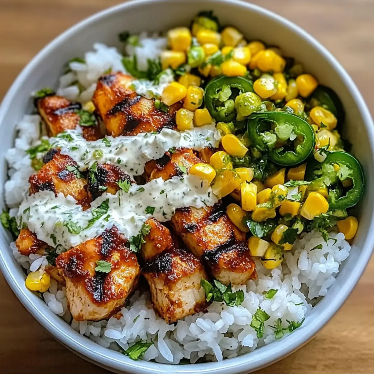 Auf dem Tisch liegt ein farbenfrohes Bildnis aus köstlichen Zutaten – die Street Corn Hähnchen Reis Schüssel. Diese Gerichte sind weit mehr als nur eine Mahlzeit; sie sind ein Fest für die Sinne! Mit zart gegrilltem Hähnchen, süßem Straßenmais und dem besonderen Kick einer cremigen Koriander-Limetten-Sauce ist es kaum zu glauben, dass man dieses besondere Gericht in weniger als 30 Minuten zaubern kann. Die Vorteile sind nicht zu übersehen: Es ist eine proteinreiche Option, die sich hervorragend für Meal Prep eignet, und lässt sich ganz nach eurem Geschmack anpassen. Seid ihr bereit, euren Abend mit einem Hauch von mexikanischem Flair zu bereichern? Warum ist dieses Gericht so besonders? Vielfältige Anpassungsmöglichkeiten: Ihr könnt die Zutaten nach Belieben variieren, egal ob mit Hähnchen, Tofu oder Garnelen. Einfache Zubereitung: In weniger als 30 Minuten kreiert ihr eine vollwertige Mahlzeit, perfekt für hektische Tage. Gesunde Frische: Mit frisch gegrilltem Mais und einer cremigen Sauce bleibt ihr gesund und zufrieden. Tolles Meal Prep: Ideal für die Wochenplanung – bereitet die Komponenten vor und genießt sie später! Familienfreundlich: Dieses Gericht ist ein Hit für Groß und Klein, da es lecker und nahrhaft ist. Street Corn Hähnchen Reis Schüssel Zutaten • Bereit, euer Geschmackserlebnis zu steigern? Hier sind die Zutaten für die Street Corn Hähnchen Reis Schüssel! Für das Hähnchen Hähnchenbrust – bietet eine proteinreiche Basis; alternativ könnt ihr auch garnelen oder Tofu verwenden. Gewürze (z.B. Paprika, Kreuzkümmel) – bringen Geschmack und Aroma; variiert die Mischung nach eurem Geschmack. Für die Street Corn Salsa Frischer Straßenmais – sorgt für Süße und Textur; könnt ihr auch mit Dosenmais ersetzen, wenn nötig. Jalapeños – für die richtige Schärfe; passt die Menge je nach Schärfewunsch an! Koriander – bringt Frische; wer keinen mag, kann ihn durch Petersilie ersetzen. Limettensaft – fügt eine spritzige Frische hinzu, die die Aromen im Gericht rundet. Für den Reis Reis – die Grundlage der Schüssel; wählt braunen Reis oder Quinoa für mehr Nährstoffe. Salz – zum Würzen des Wasser beim Kochen des Reises. Für die Sauce Griechischer Joghurt – eine gesunde, cremige Basis für die Sauce; kann auch durch vegane Alternativen ersetzt werden. Limettenschale – intensiviert das Aroma der Sauce; nicht vergessen! Macht euch bereit, diese köstliche Street Corn Hähnchen Reis Schüssel zu genießen und lasst die Geschmacksknospen tanzen! Schritt-für-Schritt-Anleitung für die Street Corn Hähnchen Reis Schüssel Step 1: Hähnchen vorbereiten Die Hähnchenbrust gut abspülen und mit deinen Lieblingsgewürzen wie Paprika und Kreuzkümmel würzen. Erhitze eine Grillpfanne auf mittlerer bis hoher Hitze und grille das Hähnchen für etwa 6-7 Minuten pro Seite, bis es eine goldene Farbe hat und der Saft klar ist. Die Kerntemperatur sollte 75 °C erreichen. Anschließend das Hähnchen vom Grill nehmen und etwas ruhen lassen. Step 2: Street Corn Salsa zubereiten Während das Hähnchen ruht, den frischen Straßenmais auf dem Grill rösten, bis er leicht gebräunt ist, etwa 10-12 Minuten. Lass den Mais etwas abkühlen, schneide die Körner vom Kolben ab und mische sie in einer Schüssel mit gewürfelten Jalapeños, frisch gehacktem Koriander, Limettensaft und einer Prise Salz. Diese frische Salsa verleiht der Street Corn Hähnchen Reis Schüssel eine wunderbare Note. Step 3: Reis kochen In einem Topf Wasser zum Kochen bringen und eine Prise Salz hinzufügen. Füge den Reis hinzu und koche ihn gemäß der Packungsanweisung, typischerweise 12-15 Minuten, bis er weich und das Wasser vollständig absorbiert ist. Nach dem Kochen den Reis mit einer Gabel auflockern und bereitstellen, um die Street Corn Hähnchen Reis Schüssel zu vervollständigen. Step 4: Schüssel zusammenstellen Jetzt wird es Zeit, die Street Corn Hähnchen Reis Schüssel zu kreieren! Nimm eine Schüssel und gebe als Grundlage eine Schicht Reis hinein. Darauf legst du die in Stücke geschnittene Hähnchenbrust und die vorbereitete Street Corn Salsa. Drizzle dann etwas von der cremigen Koriander-Limetten-Sauce über die Schüssel, um die Aromen perfekt abzurunden. Step 5: Servieren Die Street Corn Hähnchen Reis Schüssel kann sofort serviert werden oder in separaten Behältern für eine späteren Verzehr aufbewahrt werden. Wenn du möchtest, garniere sie mit zusätzlichen Limettenstücken oder frischem Koriander. Diese herzhafte und gesunde Mahlzeit bereit, deine Feinschmecker zu beeindrucken! Tipps für die beste Street Corn Hähnchen Reis Schüssel Perfekte Marinade: Marinieren Sie das Hähnchen in einer Mischung aus Gewürzen über Nacht, um den Geschmack zu intensivieren. So bleibt es saftig und aromatisch! Scharfe Varianten: Wenn Sie mehr Schärfe mögen, fügen Sie gehackte Jalapeños direkt zum Hähnchen oder in die Sauce hinzu. So erhalten Sie den richtigen Kick in Ihrer Street Corn Hähnchen Reis Schüssel. Gemüse hinzufügen: Ergänzen Sie die Schüssel mit saisonalem Gemüse wie Paprika oder Zucchini für mehr Farbe und Nährstoffe. Es hält das Gericht frisch und interessant! Richtige Reiswahl: Verwenden Sie braunen Reis oder Quinoa, um den Nährstoffgehalt zu steigern. Das macht die Mahlzeit noch gesünder und sättigender. Frische halten: Lagern Sie die Komponenten separat, um die Frische zu bewahren. Kombinieren Sie sie erst kurz vor dem Servieren, damit die Texturen erhalten bleiben. Cremige Sauce: Experimentieren Sie mit der Menge an Joghurt in der Sauce, um die gewünschte Cremigkeit zu erreichen. Diese Sauce wertet die Street Corn Hähnchen Reis Schüssel wunderbar auf! Lagerung und Einfrieren der Street Corn Hähnchen Reis Schüssel Raumtemperatur: In der Regel nicht mehr als 2 Stunden aufbewahren, um die Frische und Sicherheit der Zutaten zu gewährleisten. Kühlschrank: Die einzelnen Komponenten (Hähnchen, Reis, Salsa) können in luftdic