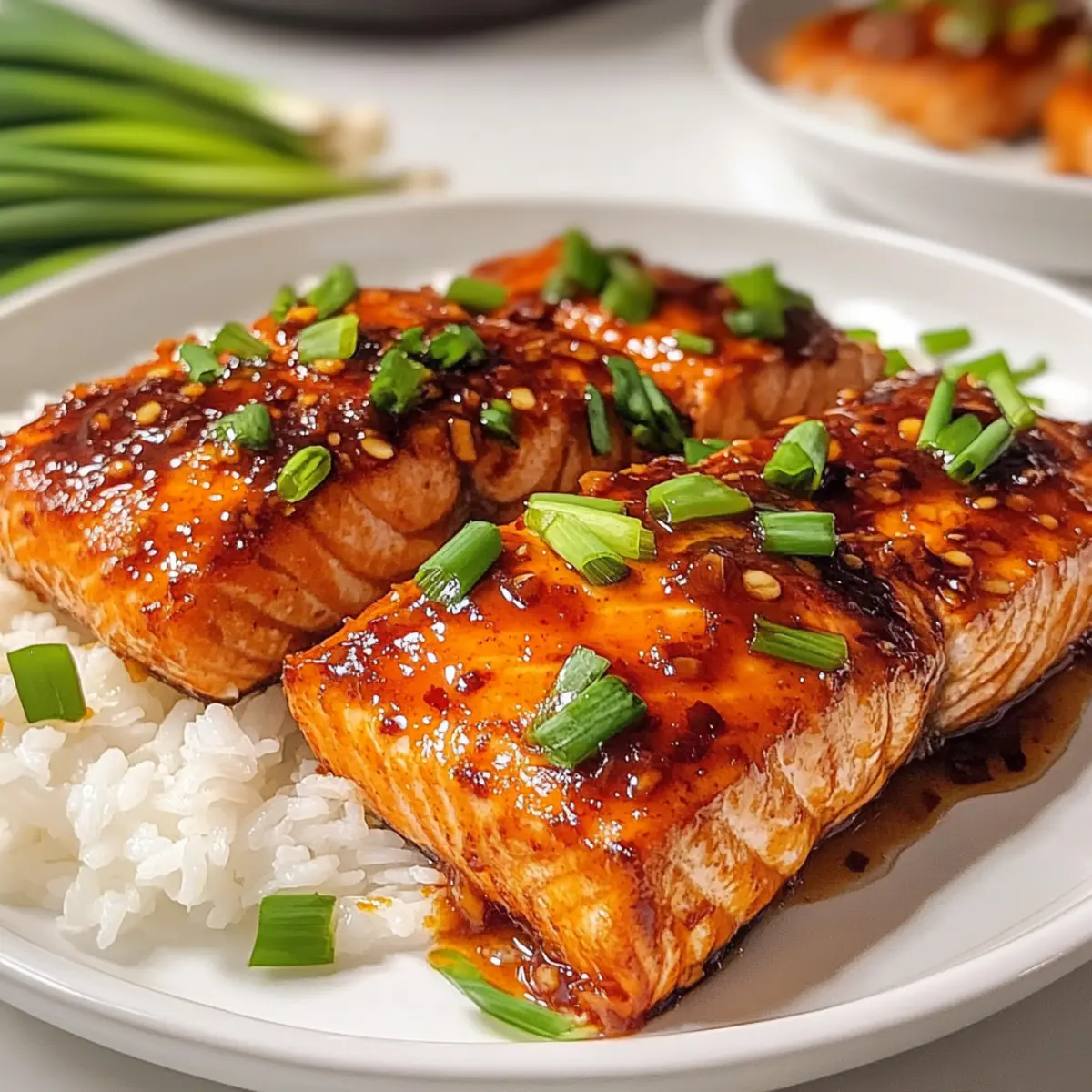 Während ich durch den Nachtmarkt in Bangkok schlenderte, wehte eine verlockende Mischung aus köstlichen Aromen durch die Luft, die mich direkt zu einem kleinen Stand zog, wo ein köstlicher Süß-Chili-Lachs zubereitet wurde. Diese schnelle und einfache Mahlzeit ist die perfekte Lösung für hektische Wochentage, wenn ich eine nahrhafte Speise mit einem asiatischen Twists zubereiten möchte. Der garamierte Lachs, glasiert mit einer süßlichen und pikanten Sauce, ist nicht nur ein wahrer Genuss für den Gaumen, sondern auch gesund und steht in nur 20 Minuten auf dem Tisch. Wie könnte ich da widerstehen? Lass uns zusammen in die Welt der Aromen eintauchen und dieses herrliche Rezept für Süß-Chili-Lachs entdecken, das nicht nur den Hunger stillt, sondern auch gute Laune verbreitet! Bist du bereit, deine Geschmacksknospen zu verwöhnen? Warum wirst du dieses Rezept lieben? Einfachheit, die begeistert: Die Zubereitung ist kinderleicht und benötigt nur grundlegende Kochfähigkeiten – perfekt für alle, die nach einer schnellen Lösung suchen. Reichhaltiger Geschmack: Die Kombination aus süßem Chili und würzigen Aromen sorgt für ein geschmackliches Erlebnis, das dich sofort in die thailändische Küche versetzt. Für jeden Anlass: Ideal als schnelles Abendessen unter der Woche, für Meal-Prep oder sogar für überraschende Gäste. Gesund und nährstoffreich: Das Rezept bietet eine hervorragende Quelle für Omega-3-Fettsäuren und ist dabei kalorienbewusst – jeder Bissen ist ein Genuss ohne Reue! Vielfältige Variationsmöglichkeiten: Probiere es mit verschiedenen Fischen oder als Beilage zu Reis oder Gemüse für noch mehr Abwechslung. Schnell auf dem Tisch: In nur 20 Minuten zubereitet, macht der Süß-Chili-Lachs Schluss mit der Langeweile in der Küche und bringt frischen Wind in deine Wochentage! Süß-Chili-Lachs Zutaten Für den Lachs • Lachs – Frische 6 oz Lachsfilets (ca. 1,5 lbs) bieten reichhaltige Omega-3-Fettsäuren; dicke Stücke sind für die besten Ergebnisse ideal. • Salz – ¼ Teelöffel; verstärkt den Geschmack des Lachses. • Pfeffer – ¼ Teelöffel; sorgt für eine subtile Schärfe und Geschmackstiefe. Für die Sauce • Thai Süß-Chili-Sauce – ⅔ Tasse; die Hauptgeschmacksbasis, die Süße und milde Schärfe liefert. • Sambal Oelek – 1-2 Esslöffel (nach Geschmack); bringt zusätzliche Schärfe ins Spiel; passe die Menge deinem Schärfeempfinden an. • Dijon-Senf – 2 Esslöffel; verleiht der Sauce eine angenehme Säure und Tiefe. Jeder Senf kann hier als Ersatz verwendet werden. • Sojasauce – 2 Esslöffel; sorgt für umami und salzige Tiefe in der Sauce. • Knoblauch – 3 Zehen, fein gehackt; bringt aromatischen Geschmack. • Wasser – ¼ Tasse; wird verwendet, um die Sauce zu verdünnen und die Konsistenz anzupassen. Garnierung • Frühlingszwiebel – 2 Stängel, fein gehackt; sorgt für frische und Crunch und rundet das Gericht ab. Jeder Bissen dieses Süß-Chili-Lachs bringt eine aufregende Geschmackskombination auf deinen Teller! Schritt-für-Schritt-Anleitung für Süß-Chili-Lachs Step 1: Lachs vorbereiten Den frischen Lachs gründlich mit einem Küchentuch abtrocknen und mit ¼ Teelöffel Salz sowie ¼ Teelöffel Pfeffer gleichmäßig würzen. Diese einfache Vorbereitung ist entscheidend, um den vollen Geschmack in deinem Süß-Chili-Lachs hervorzuheben. Stelle sicher, dass der Lachs Zimmertemperatur hat, um ein gleichmäßiges Garen zu ermöglichen. Step 2: Sauce mischen In einer kleinen Schüssel die Thai Süß-Chili-Sauce, 1-2 Esslöffel Sambal Oelek, 2 Esslöffel Dijon-Senf, 2 Esslöffel Sojasauce und 3 fein gehackte Knoblauchzehen gut vermengen. Diese Mischung ist die Grundlage der Sauce, die dem Lachs seinen unwiderstehlichen Geschmack verleiht. Stelle die Schüssel beiseite, während du die nächsten Schritte vorbereitest. Step 3: Sauce kochen Erhitze eine große, ofenfeste Pfanne bei mittlerer bis hoher Temperatur und füge die vorbereitete Sauce hinzu. Lass die Mischung für etwa 2 Minuten köcheln, bis sie leicht eindickt und aromatisch wird. Achte darauf, die Sauce regelmäßig umzurühren, um ein Anbrennen am Pfannenboden zu vermeiden. Step 4: Lachs hinzufügen Lege die gewürzten Lachsfilets mit der Hautseite nach unten in die Pfanne, während die Sauce weiter köchelt. Lasse den Lachs für 2 Minuten braten und löffele währenddessen die heißen Saucensäfte über die Filets, damit sie gleichmäßig mit Geschmack umhüllt werden. Diese Technik sorgt für eine perfekt glasierte Oberfläche. Step 5: Grillen Heize den Ofen auf die Grillfunktion vor und stelle die Pfanne mit dem Lachs auf die oberste Schiene. Grille den Lachs für 4-5 Minuten, bis er eine schöne Karamellisierung erreicht hat und die Innentemperatur 120-135°F (48-57°C) erreicht. Achte auf eine goldbraune Farbe, um sicherzustellen, dass dein Süß-Chili-Lachs ideal gegart ist. Step 6: Glasur herstellen Nimm den Lachs aus der Pfanne und stelle ihn beiseite. Füge ¼ Tasse Wasser zur restlichen Sauce in der Pfanne hinzu und lasse sie bei mittlerer Hitze köcheln. Rühre die Mischung, bis sie leicht eindickt und eine sirupartige Konsistenz erreicht, was deine Glasur für den Süß-Chili-Lachs perfekt macht. Step 7: Garnieren und servieren Träufle die eingedickte Glasur über den gegrillten Lachs und garniere ihn mit 2 fein gehackten Frühlingszwiebeln. Diese frische Dekoration sorgt nicht nur für den letzten Schliff, sondern sorgt auch für einen ansprechenden Farbkontrast auf dem Teller. Dein Süß-Chili-Lachs ist jetzt bereit, serviert zu werden! Variationen für Süß-Chili-Lachs Lass deiner Kreativität freien Lauf und passe dieses Rezept nach deinem Geschmack an! Lachs-Alternativen: Probiere andere Fischsorten wie Tilapia oder sogar Hähnchen für unterschiedliche Geschmacksrichtungen. Jedes Protein bringt eine individuelle Note ins Spiel. Schärfe anpassen: Erhöhe den Anteil an Sambal Oelek oder füge frische Chilis hinzu, um deinem Ger
