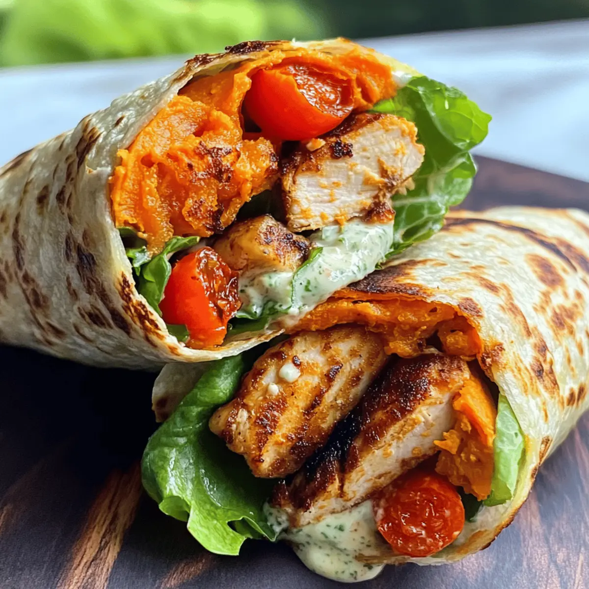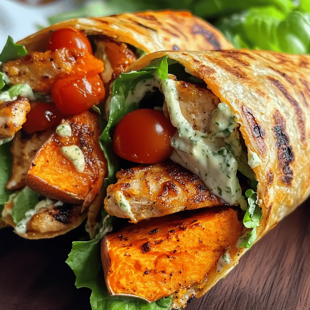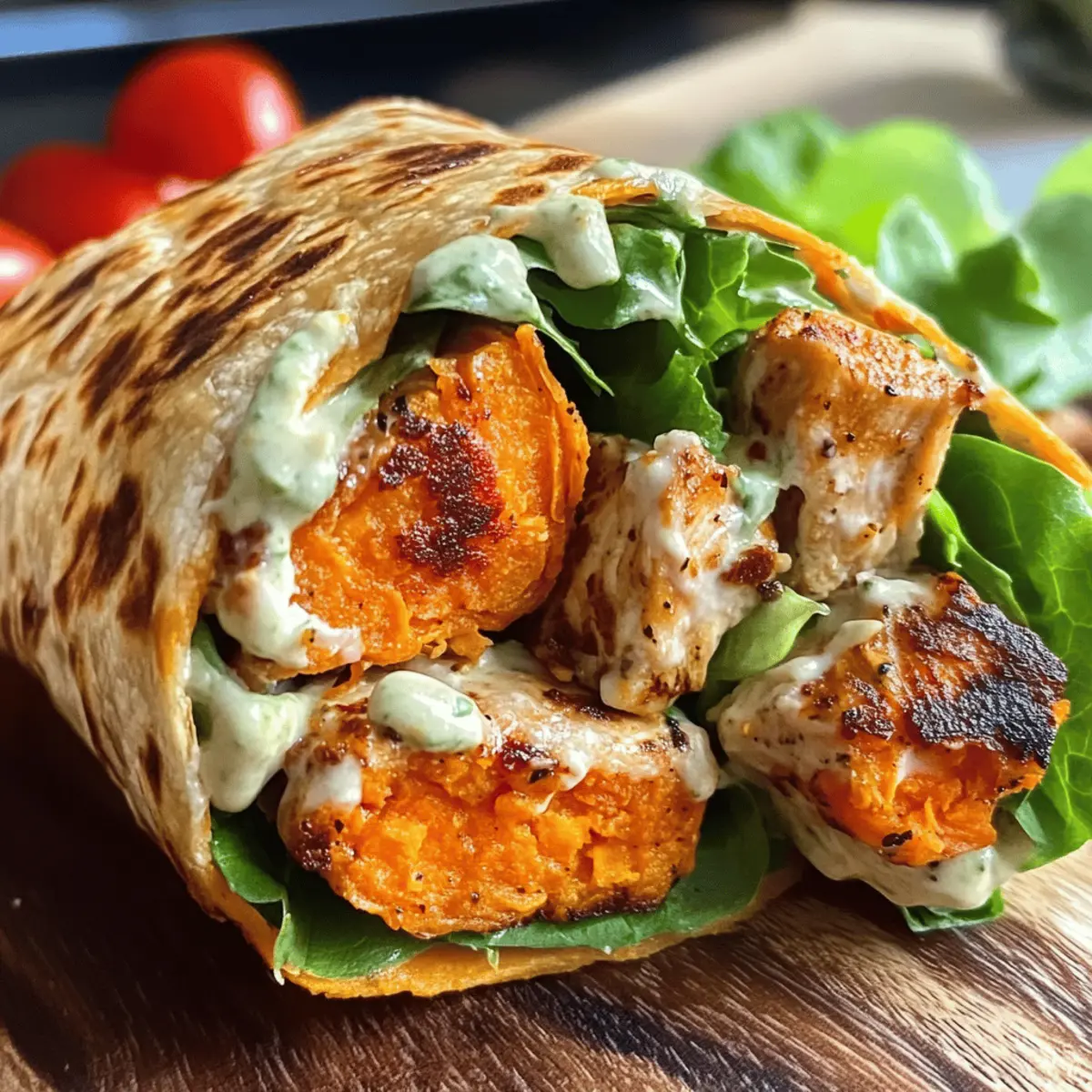 „Ein schnelles Mittagessen? Ich habe die perfekte Lösung!“ Als ich neulich über gesunde, sättigende Gerichte nachdachte, stach mir der Gedanke an einen Süßkartoffelwrap Caesar-Style ins Auge. In der Tat ist dieser Wrap nicht nur eine aufregende Low-Carb-Alternative, sondern auch glutenfrei – und das Beste? Die Zubereitung ist so einfach und schnell, dass Sie ihn im Handumdrehen genießen können. Diese Wraps kombinieren die natürliche Süße von Ofensüßkartoffeln mit saftigem, gewürztem Hühnchen und einer cremigen, köstlichen Sauce. Sie sind ideal für alle, die auf ihre Ernährung achten möchten, ohne auf den Geschmack zu verzichten. Sind Sie bereit, Ihre nächste kulinarische Entdeckung zu machen? Lassen Sie uns gemeinsam in die Welt dieser gesunden und leckeren Wraps eintauchen! Warum werden Sie diesen Wrap lieben? Gesundheitlich: Diese Süßkartoffelwraps sind nicht nur low-carb und glutenfrei, sondern auch voller Nährstoffe und Geschmack. Schnelle Zubereitung: Sie benötigen nur wenige Zutaten und weniger als 30 Minuten, um diese köstlichen Wraps zu kreieren – perfekt für ein schnelles Mittagessen! Vielseitigkeit: Egal, ob Sie Hühnchen, Gemüse oder Tofu verwenden wollen, die Möglichkeiten sind nahezu unbegrenzt. Variation für Vegetarier gefällig? Ersetzen Sie einfach das Hühnchen durch köstliche Pilze! Kombination von Texturen: Der rohe Salat und die cremige Sauce harmonieren wunderbar mit dem süßen und herzhaften Geschmack der Süßkartoffeln. Beeindruckende Optik: Diese Wraps sehen nicht nur toll aus, sondern sind auch ein echter Hingucker auf jedem Tisch! Genießen Sie sie warm und entdecken Sie die Vielfalt gesunder Gerichte. Süßkartoffelwrap Caesar-Style Zutaten Für den Wrap Süßkartoffeln – Diese sind die Basis des Wraps und sorgen für natürliche Süße und eine angenehme Struktur. Zucchini kann für eine leichtere Option verwendet werden. Käse – Er verleiht Geschmack und hilft, den Wrap zusammenzuhalten. Verwenden Sie Mozzarella oder Cheddar als Alternativen. Hähnchenbrustfilet – Die Hauptquelle für Protein. Es sorgt für Herzhaftigkeit. Für eine vegetarische Option ersetzen Sie es durch gegrillte Pilze oder knusprigen Tofu. Romana Salatherzen – Fügen Sie Knusprigkeit und Frische hinzu. Jedes Blattgemüse funktioniert ebenfalls. Kirschtomaten – Sie sorgen für Saftigkeit und Geschmack. Diced Paprika oder Gurken können sie ersetzen. Für das Dressing Mayonnaise – Diese cremige Komponente sorgt für eine köstliche Sauce. Eine leichte Variante oder griechischer Joghurt kann für eine gesündere Option verwendet werden. Joghurt (3,5% Fett) – Er fügt der Sauce Cremigkeit und Säure hinzu. Denken Sie an pflanzlichen Joghurt für eine vegane Option. Senf – Verstärkt den Geschmack des Dressings. Verwenden Sie Dijon- oder Vollkornsenf für unterschiedliche Noten. Zitronensaft – Erhellt die Aromen. Sie können bei Bedarf Essig verwenden. Worcestersauce – Fügt einen tiefen Umami-Geschmack hinzu. Vegane Worcestersauce ist eine gute Wahl für ein vegetarisches Gericht. Parmesan – Für zusätzlichen, käsigen Geschmack. Nährhefe kann als vegane Alternative verwendet werden. Für die Würze Öl – Zum Braten des Hühnchens. Wählen Sie Olivenöl oder Avocadoöl je nach Vorliebe. Paprika edelsüß – Würzmittel für die Verfeinerung. Geräucherte Paprika kann für zusätzlichen Geschmack sorgen. Salz & Pfeffer – Unverzichtbar für die Würze des gesamten Gerichts. Diese Zutaten bilden die Basis für die köstlichen Süßkartoffelwraps Caesar-Style, die nicht nur nährstoffreich sind, sondern auch den Genuss in den Vordergrund stellen! Step-by-Step Instructions für Süßkartoffelwrap Caesar-Style Step 1: Ofen vorheizen Heizen Sie den Ofen auf 200°C vor. Während der Ofen aufheizt, bereiten Sie die Süßkartoffeln vor, indem Sie sie schälen und in dünne Scheiben schneiden. Legen Sie die Scheiben auf ein mit Öl bestrichenes Backpapier, so dass sie leicht überlappen. Dadurch erhalten die Süßkartoffelwraps Caesar-Style eine schöne, gleichmäßige Bräunung. Step 2: Süßkartoffeln backen Würzen Sie die Süßkartoffelscheiben großzügig mit Salz, Pfeffer und dem Käse Ihrer Wahl. Backen Sie die Süßkartoffeln 20-30 Minuten lang, bis sie goldbraun und zart sind. Achten Sie darauf, dass sie am Rand leicht knusprig werden, um die Wraps später gut formen zu können. Step 3: Hähnchen braten Während die Süßkartoffeln im Ofen sind, würzen Sie das Hähnchenbrustfilet mit Salz, Pfeffer und Paprika. Erhitzen Sie etwas Öl in einer Pfanne und braten Sie das Hähnchen bei mittlerer Hitze etwa 4 Minuten pro Seite, bis es durchgegart ist und eine ansprechende goldene Farbe hat. Lassen Sie das Hähnchen nach dem Braten kurz ruhen und schneiden Sie es dann in dünne Scheiben. Step 4: Salat vorbereiten Bereiten Sie den Salat für Ihre Süßkartoffelwraps Caesar-Style vor, indem Sie die Romana Salatherzen in mundgerechte Stücke schneiden und die Kirschtomaten halbieren. Mischen Sie alles in einer Schüssel, damit Sie eine frische Füllung für die Wraps erhalten, die dem Gericht eine knusprige Textur verleiht. Step 5: Dressing zubereiten Für das Dressing kombinieren Sie in einer separaten Schüssel die Mayonnaise, den Joghurt, den Senf, den Zitronensaft, die Worcestersauce und den Parmesan. Würzen Sie das Dressing abschließend mit Salz und Pfeffer für zusätzlichen Geschmack. Rühren Sie alles gut um, bis eine cremige Sauce entsteht, die perfekt zu Ihrem Wrap passt. Step 6: Wraps zusammenstellen Sobald die Süßkartoffeln gebacken sind, nehmen Sie sie aus dem Ofen und lassen Sie sie kurz abkühlen. Dann drehen Sie die Scheiben mit der Käseseite nach unten. Legen Sie eine großzügige Portion Salat, das gebratene Hähnchen und die Kirschtomaten darauf. Wickeln Sie die Süßkartoffelscheiben vorsichtig zusammen und schneiden Sie die Wraps in der Mitte durch, um sie einfach zu servieren. Variationen & Alternativen für 
