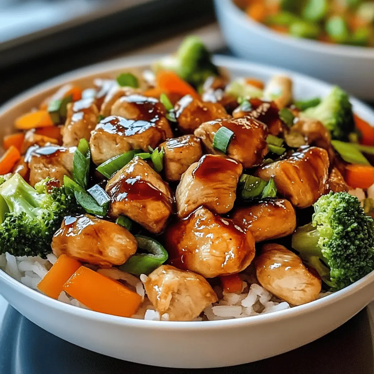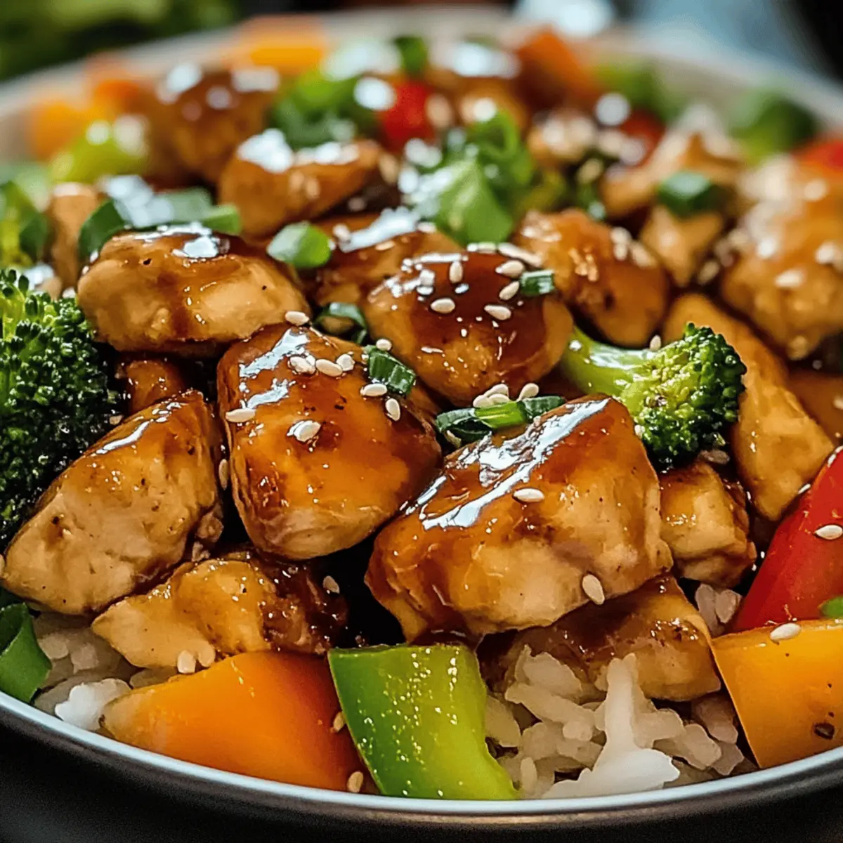 10. Servieren Sie die Teriyaki-Hähnchen-Pfanne heiß, garnieren Sie sie optional mit gerösteten Sesamkörnern.
