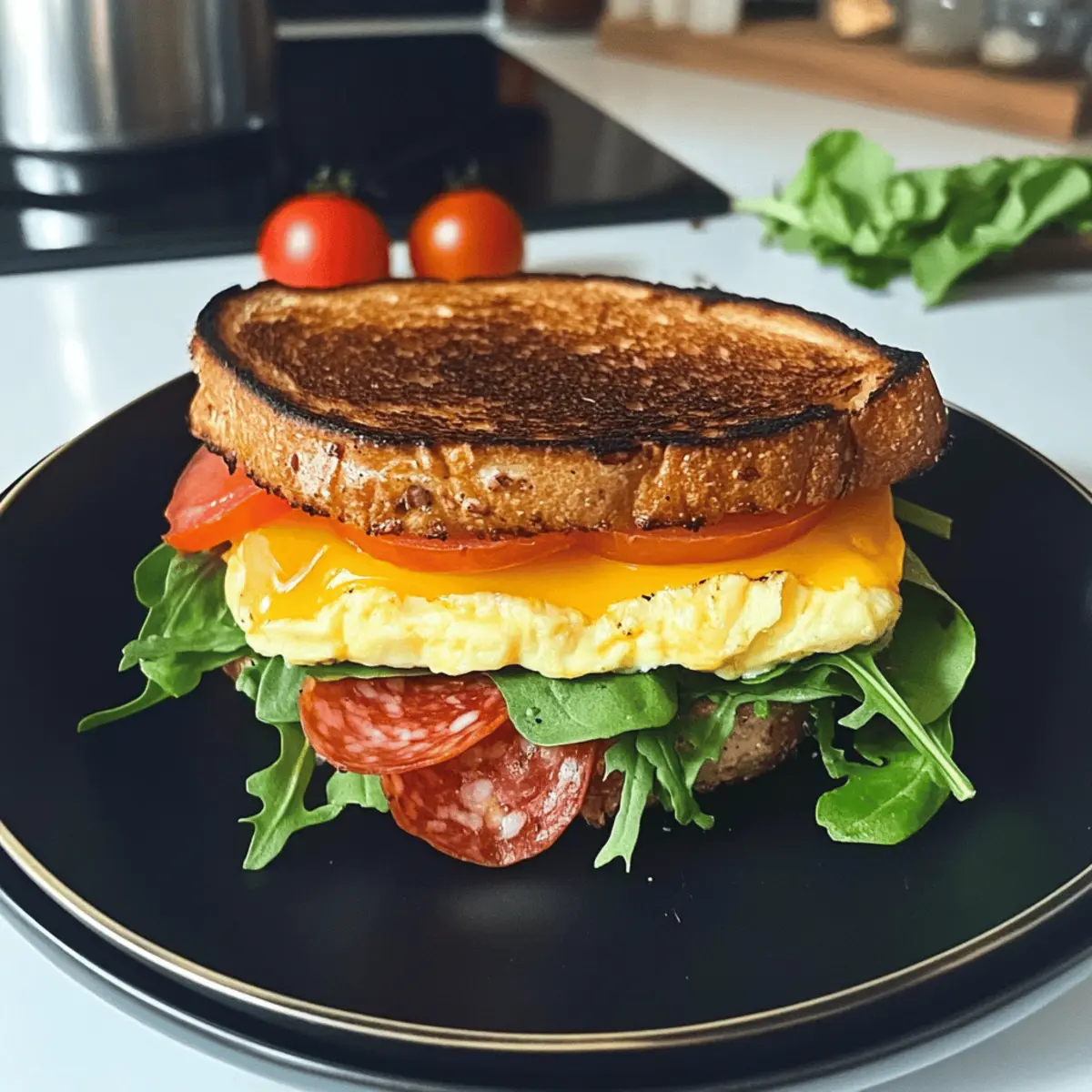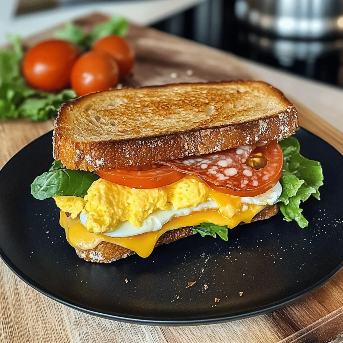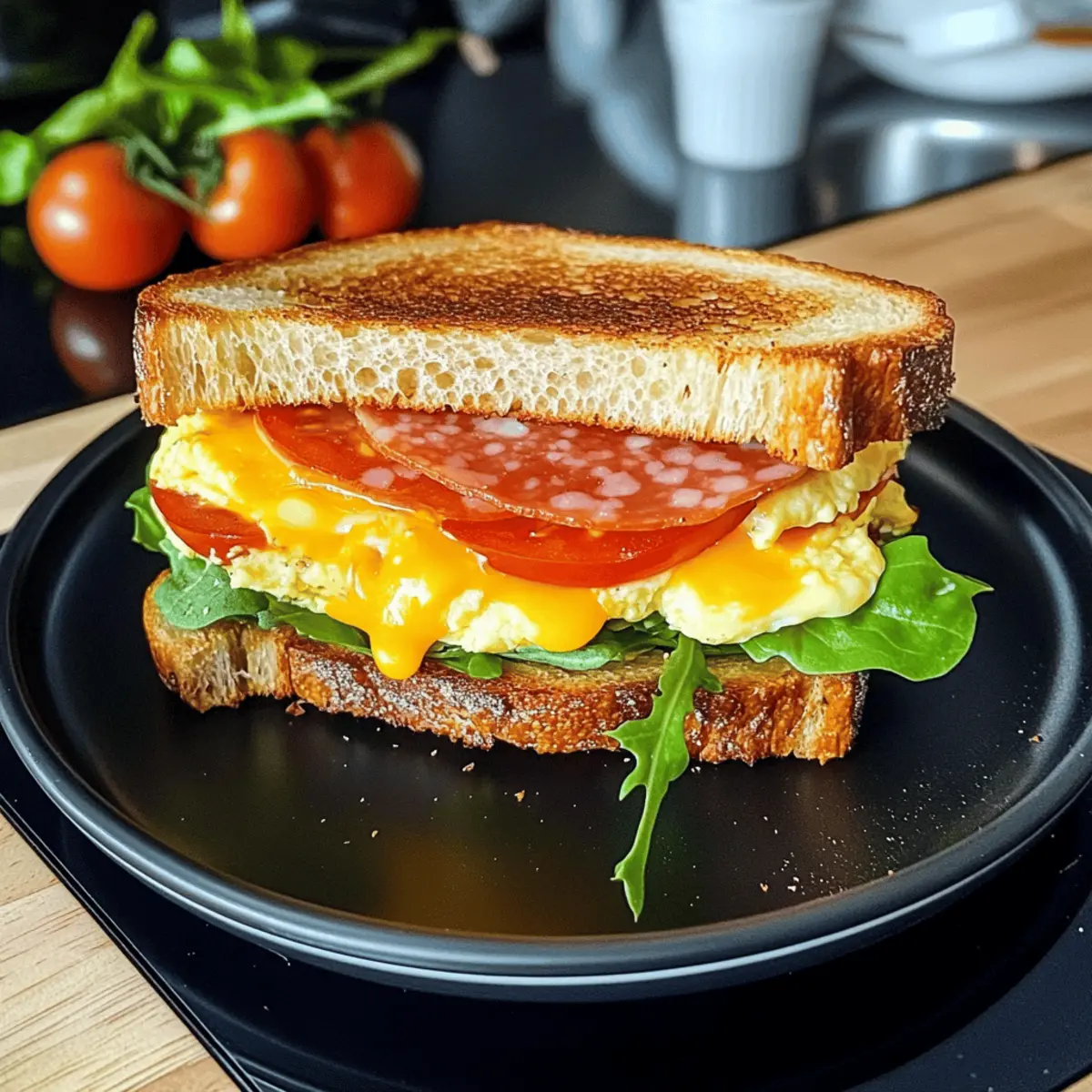 Wenn ich morgens in der Küche stehe und der Duft von frisch gebratenen Eiern in die Luft steigt, weiß ich, dass ein neuer Tag mit einem köstlichen Frühstück beginnt. Mein Toast-Sandwich mit Ei, Käse und Salami ist nicht nur eine wunderbare Möglichkeit, den Tag zu starten, sondern auch eine schnelle und einfache Lösung für all diejenigen, die es eilig haben. Die Kombination aus knusprigem Toast und einer herzhaften Füllung macht es zu einem perfekten Snack für jeden Moment. Ob als energiereiches Frühstück oder als herzhaftes Mittagessen – die Variationen sind endlos. Sie können ganz nach Ihrem Geschmack spielen, sei es mit Schinken, Avocado oder auch ohne Fleisch. Neugierig, wie Sie dieses leckere Sandwich im Handumdrehen zubereiten können? Warum wird dieses Sandwich Ihr Favorit? Vielseitigkeit: Egal, ob Sie Fleischliebhaber oder Vegetarier sind, dieses Toast-Sandwich mit Ei bietet für jeden Geschmack die passende Füllung. Schnell und einfach: In nur wenigen Minuten zaubern Sie ein herzhaftes Frühstück oder einen leckeren Snack. Reichhaltiger Geschmack: Die Kombination aus geschmolzenem Käse, frischem Salat und würziger Salami sorgt für einen unwiderstehlichen Genuss. Perfekte Textur: Mit seiner knusprigen Außenseite und dem zarten Kern ist jeder Biss ein Erlebnis. Gesunde Alternative: Mit frischen Zutaten können Sie das Sandwich ganz nach Ihren Vorlieben anpassen – probieren Sie es mit Avocado oder einer anderen Variante! Toast-Sandwich mit Ei Zutaten • Für alle, die ein schnelles und leckeres Frühstück lieben! Eier – Sie sorgen für die Hauptstruktur und eine cremige Füllung; leicht verrührt für optimale Textur. Toast oder Croissant – Die perfekte Grundlage, die crunchigen Geschmack liefert; Croissants bringen einen buttrigen Twist. Salatblätter – Für Frische und einen knusprigen Biss; kann durch Spinat oder Rucola ersetzt werden. Käse – Käse wie Cheddar oder Gouda schmilzt perfekt und sorgt für Cremigkeit; wähle je nach Geschmacksrichtung. Salami – Fügt Würze und Protein hinzu; tausche sie gegen Schinken oder eine vegetarische Option aus. Tomate – Bringt Saftigkeit und Frische; kann weggelassen oder durch Avocado ersetzt werden für extra Cremigkeit. Salz & Pfeffer – Unverzichtbar für die richtige Würze; nach Geschmack anpassen. Öl – Verwendet zum Braten des Sandwiches und um ein Ankleben zu verhindern; jedes neutrale Öl funktioniert. Dieses Toast-Sandwich mit Ei, Käse und Salami bietet nicht nur köstliche Vielfalt, sondern auch einfache Anpassungsmöglichkeiten für jeden Geschmack. Schritt-für-Schritt-Anleitung für Toast-Sandwich mit Ei, Käse und Salami Step 1: Eier vorbereiten In einer Schüssel die Eier mit Salz und Pfeffer verquirlen, bis sie gut vermischt sind und eine gleichmäßige gelbe Farbe haben. Diese Mischung sorgt für eine cremige Füllung in Ihrem Toast-Sandwich mit Ei, Käse und Salami. Step 2: Öl erhitzen Erhitzen Sie etwas Öl in einer mittelgroßen Pfanne bei mittlerer Hitze. Warten Sie, bis das Öl schimmert, was ein Zeichen dafür ist, dass es heiß genug ist, um die Eier zu garen. Dies verhindert, dass die Eier an der Pfanne haften bleiben und gibt Ihrem Sandwich eine schöne, goldene Farbe. Step 3: Eier in die Pfanne gießen Gießen Sie die Eiermischung in die heiße Pfanne und lassen Sie sie einige Minuten lang stocken, bis die Ränder fest werden und die Mitte noch leicht flüssig ist. Achten Sie darauf, die Eier nicht zu lange zu kochen, um eine zarte und cremige Textur zu gewährleisten. Step 4: Toast hinzufügen Legen Sie die Toastscheiben auf die noch leicht wässrigen Eier, sodass sie die Eier gut umschließen. Lassen Sie alles weiter garen, bis die Eier fast vollständig gestockt sind, dies dauert etwa 1-2 Minuten. Dies ermöglicht den Toast, leicht durchzuziehen und die Aromen aufzunehmen. Step 5: Flippen und befüllen Verwenden Sie einen Spatel, um die Mischung vorsichtig zu wenden. Falten Sie die Ränder der Omelette über die Toastscheiben und bestreuen Sie sie sofort mit geriebenem Käse und scharfer Salami. Dies geschieht, während die Eier noch im heißen Zustand sind, um den Käse zum Schmelzen zu bringen. Step 6: Sandwich fertigstellen Legen Sie die zweite Toastscheibe auf die Füllung und drücken Sie sanft, um das Sandwich zusammenzuhalten. Lassen Sie es noch etwa 1-2 Minuten in der Pfanne grillen, bis beide Seiten goldbraun und knusprig sind. Dies gibt dem Toast-Sandwich mit Ei, Käse und Salami den letzten Knusperfaktor. Step 7: Servieren Nehmen Sie das Sandwich aus der Pfanne und lassen Sie es kurz abkühlen, bevor Sie es diagonal in der Mitte schneiden. Servieren Sie es sofort mit einer Beilage Ihrer Wahl – vielleicht etwas frischem Salat oder einer Tomatenscheibe. Variationen für Toast-Sandwich mit Ei Entdecken Sie die vielfältigen Möglichkeiten, dieses köstliche Sandwich ganz nach Ihrem Geschmack zu gestalten. Lassen Sie Ihrer Kreativität freien Lauf! Vegetarisch: Ersetzen Sie die Salami durch gebratene Pilze oder einen knackigen Avocadoaufstrich für eine frische und cremige Note. Räucherlachs: Fügen Sie dünne Scheiben Räucherlachs hinzu, um dem Sandwich eine maritime Würze zu verleihen; perfekt für eine besondere Frühstücksvariante. Würzige Note: Geben Sie einen Teelöffel Sriracha oder Ihre Lieblingstoastesoße an die Eier, um einen Extra-Kick an Schärfe und Geschmack zu erhalten. Käsewechsel: Experimentieren Sie mit verschiedenen Käsesorten wie Feta oder Ziegenkäse für eine unterschiedliche Geschmacksvielfalt; diese Käse schmelzen herrlich! Crunchy Toppings: Fügen Sie knackige Komponenten wie Röstzwiebeln oder gehackte Nüsse hinzu, um eine zusätzliche Textur zu erhalten, die das Sandwich aufregender macht. Mediterraner Twist: Bereichern Sie es mit Oliven oder getrockneten Tomaten; die Aromen bringen eine sonnige Note auf den Teller – einfach köstlich! Herzhafte Pilze: Gebratene Champignons oder Spinat bieten nicht nur Geschmack, sonder