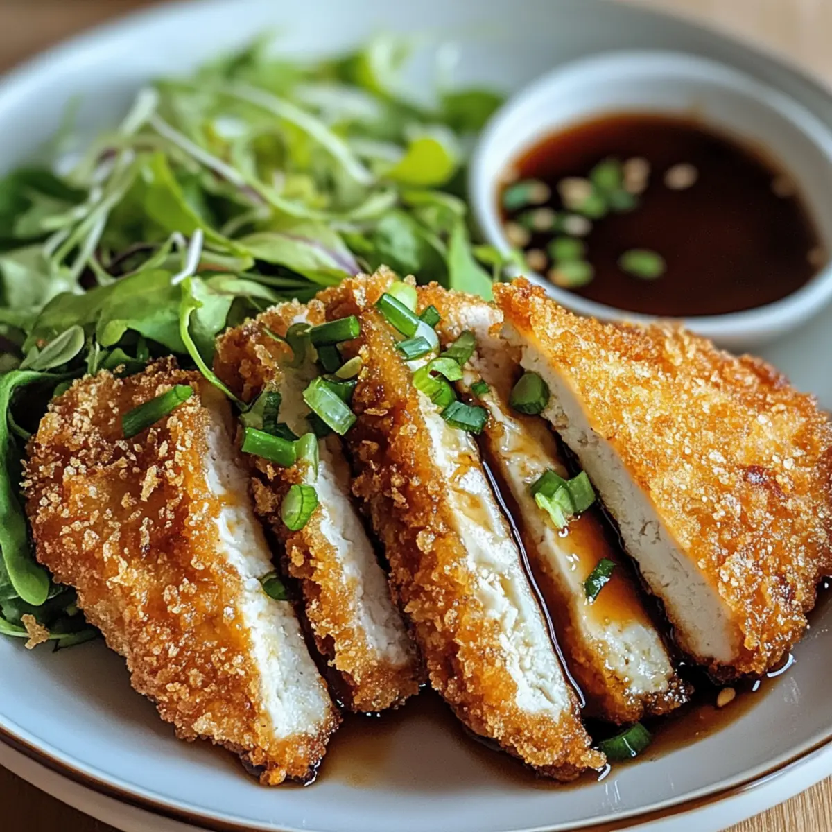 • Würzig: Füge Chili-Flocken oder Sriracha zur Panade hinzu, um deinem Tofu Katsu eine scharfe Note zu verleihen. Das sorgt für ein aufregendes Geschmacksprofil, das jeden Bissen spannend macht.