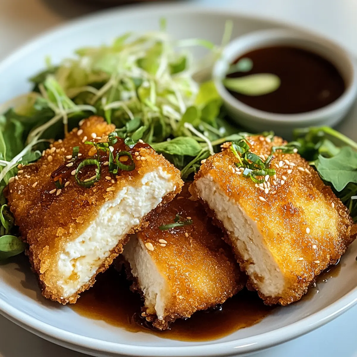 Köstliche Kombination: Tofu Katsu vereint die knackige Textur von knusprigen Breadcrumbs mit dem zarten Inneren von Tofu – ein echtes Geschmackserlebnis!
