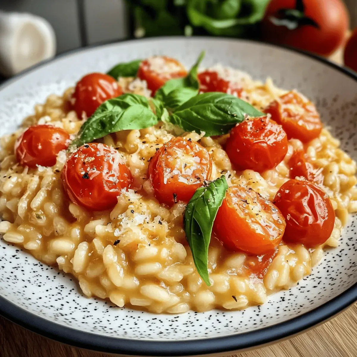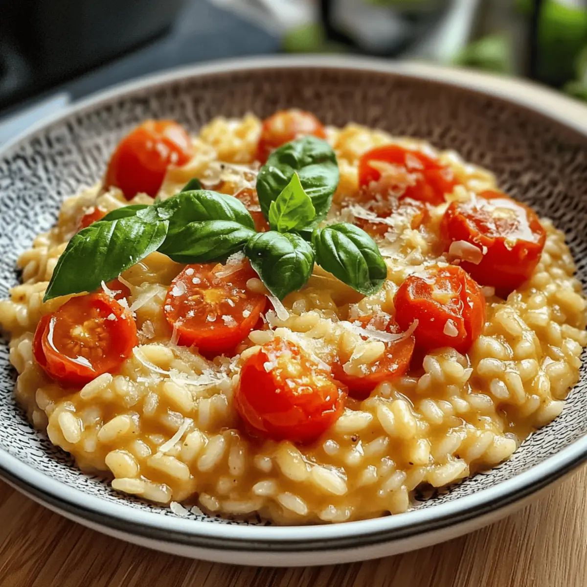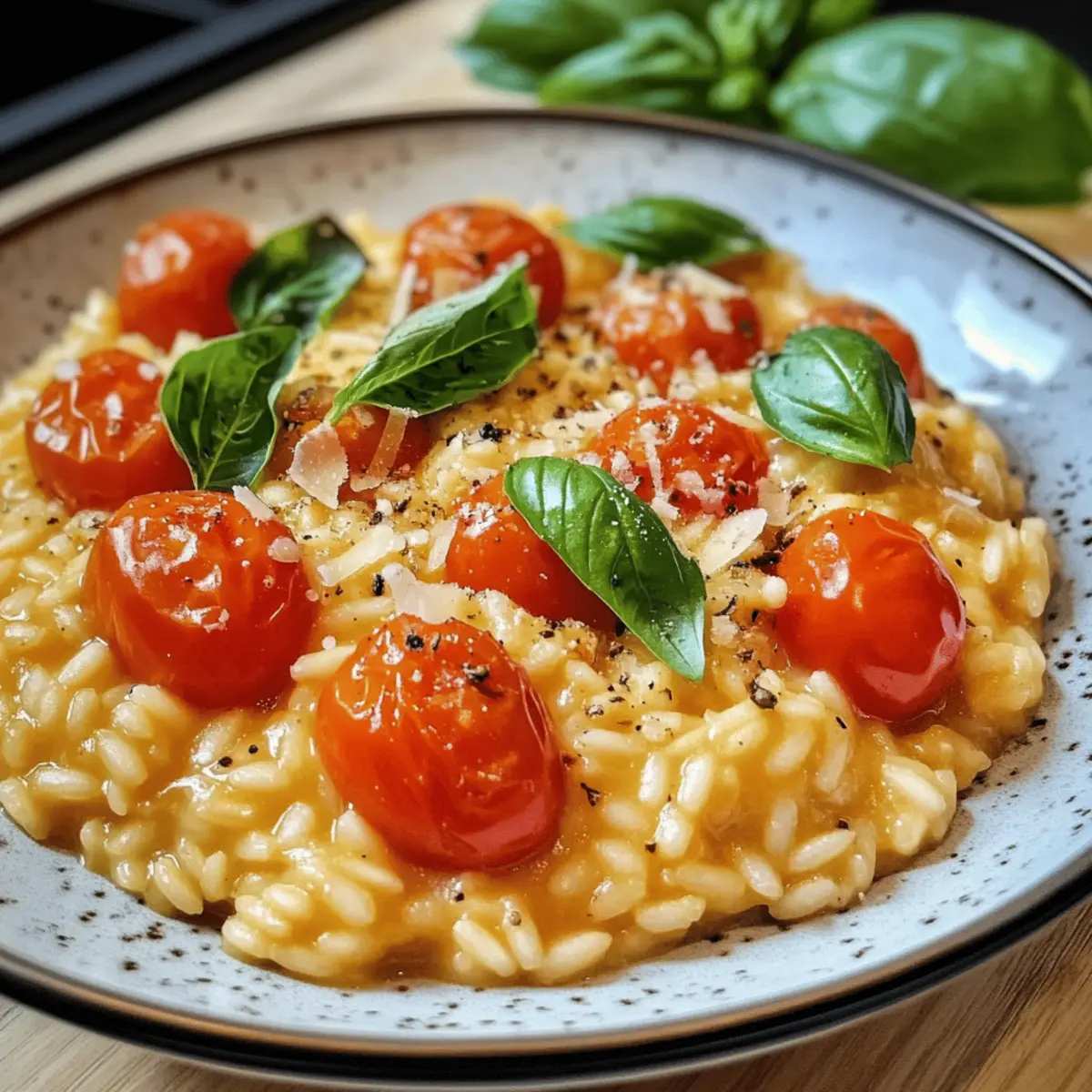 „Hast du schon einmal die köstliche Verführung eines perfekten Risottos erlebt?“ Diese Frage brachte mich zurück zu dem Tag, als ich zum ersten Mal ein Tomatenrisotto zubereitet habe. Das Resultat war so cremig und voller Geschmack, dass ich mich sofort in dieses unkomplizierte Tomatenrisotto Rezept verliebte. Die fruchtigen Kirschtomaten und der reichhaltige Tomatenmark verleihen dem Gericht eine harmonische Süße, während frisches Basilikum und ein Hauch Weißwein das Geschmacksprofil auf ein neues Level heben. Und das Beste daran? Du kannst dieses Gericht in nur 40 Minuten zubereiten! Ideal für ein schnelles Abendessen oder als beeindruckendes Gericht für deine Gäste. Bist du bereit, den italienischen Flair in deine Küche zu bringen? Warum ist Risotto so beliebt? Cremigkeit, die perfekt deiner Zunge schmeichelt: Dieses Tomatenrisotto Rezept verwandelt einfache Zutaten in ein raffiniertes Gericht voller Aromen. Einfache Zubereitung: In nur 40 Minuten zauberst du ein köstliches Essen, ohne stundenlang in der Küche zu stehen. Frische Zutaten wie Kirschtomaten und Basilikum heben den Geschmack hervor und sorgen für ein unwiderstehliches Aroma. Vielseitigkeit ist hierbei ebenfalls ein Plus – du kannst es als Hauptgericht oder Beilage servieren. Geselligkeit: Dieses Gericht beeindruckt nicht nur den Gaumen, sondern auch deine Gäste, die dich dafür lieben werden. Schau dir auch unser Rezept für Spaghetti Auflauf an, wenn du nach weiteren schnellen und leckeren Ideen suchst! Tomatenrisotto Zutaten Für den Risotto Risottoreis – Er sorgt für die perfekte Struktur und Cremigkeit; verwende Arborio, Carnaroli oder Vialone Nano für beste Ergebnisse. Olivenöl – Ideal zum Sautieren der Schalotten und trägt zur Reichhaltigkeit bei. Schalotte – Liefert einen süßen und milden Zwiebelgeschmack; kann bei Bedarf durch eine gelbe Zwiebel ersetzt werden. Tomatenmark – Intensiviert den Tomatengeschmack und macht das Risotto besonders cremig. Weißwein – Bringt Säure und Tiefe; kann durch mehr Gemüsefond ersetzt werden, wenn du es alkoholfrei magst. Gemüsefond – Gibt dem Gericht die notwendige Würze; Hühnerbrühe kann eine Alternative für nicht-vegetarische Varianten sein. Wasser – Dient zur Anpassung der Konsistenz während des Kochens. Kirschtomaten – Sorgen für Frische und natürliche Süße; können durch gewürfelte reife Tomaten ersetzt werden. Frischer Basilikum – Verbessert das Aroma und dient als geschmackvolle Garnitur; verwende getrockneten Basilikum in einer geringeren Menge, wenn nötig. Butter – Fügt am Ende Reichhaltigkeit hinzu; vegane Butter kann ebenfalls verwendet werden. Parmesan – Bringt umami Geschmack ins Risotto; ernährungsphysiologischer Hefeflocken sind eine vegane Alternative. Parmesanrinde – Optional, aber empfohlen für zusätzliche Tiefe; kann weggelassen werden, wenn nicht vorhanden. Salz und Pfeffer – Unverzichtbar für die Gewürze, um den Geschmack zu perfektionieren. Schritt-für-Schritt-Anleitung für Tomatenrisotto Rezept Step 1: Schalotte vorbereiten Beginne damit, die Schalotte zu schälen und fein zu hacken. Die fein gehackte Schalotte sorgt für eine aromatische Basis deines Tomatenrisotto. Lege die gehackte Schalotte beiseite, während du die nächsten Schritte vorbereitest. Step 2: Schalotten anbraten Erhitze in einem Topf bei mittlerer Hitze 2 Esslöffel Olivenöl. Gib die gehackte Schalotte dazu und brate sie etwa 1-2 Minuten lang an, bis sie weich und leicht durchsichtig ist. Achte darauf, dass die Schalotten nicht braun werden, um den süßen Geschmack zu bewahren. Step 3: Tomatenmark und Reis hinzufügen Füge nun 2 Esslöffel Tomatenmark zu den angebratenen Schalotten hinzu und rühre gut um. Lass die Mischung 1-2 Minuten kochen, damit sich die Aromen entfalten, bevor du 250 g Risottoreis dazu gibst. Rühre alles kräftig durch, sodass der Reis gleichmäßig mit dem Tomatenmark umhüllt ist. Step 4: Mit Weißwein ablöschen Optional kannst du 100 ml Weißwein in die Mischung gießen. Rühre gut um, bis der Wein fast vollständig verdampft ist. Wenn du kein Wein verwenden möchtest, kannst du stattdessen 100 ml Gemüsefond hinzufügen und ebenfalls gründlich umrühren. Step 5: Brühe nach und nach hinzufügen Füge nun ein paar Stiele frischer Basilikum und die Parmesanrinde hinzu. Beginne dann, nach und nach 800 ml Gemüsefond in 100-150 ml Portionen hinzuzufügen. Rühre das Risotto regelmäßig um, damit es gleichmäßig gar wird und die perfekte cremige Konsistenz erhält. Step 6: Flüssigkeit anpassen Achte darauf, dass der Reis nicht am Topfboden kleben bleibt. Füge bei Bedarf mehr Flüssigkeit hinzu, wenn das Risotto zu trocken wirkt. Die ständige Rührbewegung ist entscheidend, um die cremige Textur des Tomatenrisotto zu erreichen. Step 7: Kirschtomaten und Basilikum vorbereiten Während das Risotto köchelt, wasche die Kirschtomaten und schneide sie halb durch. Pflücke auch die Blätter des frischen Basilikums ab, um sie später als Garnitur zu verwenden. Die frischen Tomaten bringen zusätzlich Süße und Textur ins Gericht. Step 8: Garzeit überprüfen Sobald der gesamte Fond eingefügt ist, teste nach etwa 18-20 Minuten, ob der Reis al dente ist. Wenn er noch zu fest ist, kann etwas mehr Flüssigkeit hinzukommen. Das Risotto sollte eine cremige Textur haben, aber der Reis sollte noch einen leichten Biss haben. Step 9: Finale Zutaten hinzufügen Entferne die Basilikumstiele und die Parmesanrinde aus dem Risotto. Rühre dann 50 g geriebenen Parmesan und 20 g kalte Butter ein, bis alles gut vermischt ist und die Butter geschmolzen ist. Diese Zutaten verleihen dem Gericht eine besondere Cremigkeit und Geschmackstiefe. Step 10: Abschmecken und anrichten Schmecke das Tomatenrisotto mit Salz und Pfeffer ab. Füge die vorbereiteten Kirschtomaten und frisch gepflückten Basilikum hinzu und lasse das Risotto 2-3 Minuten ruhen, bevor du es servierst. Dieses köstliche Tomatenrisotto Rezept wird d