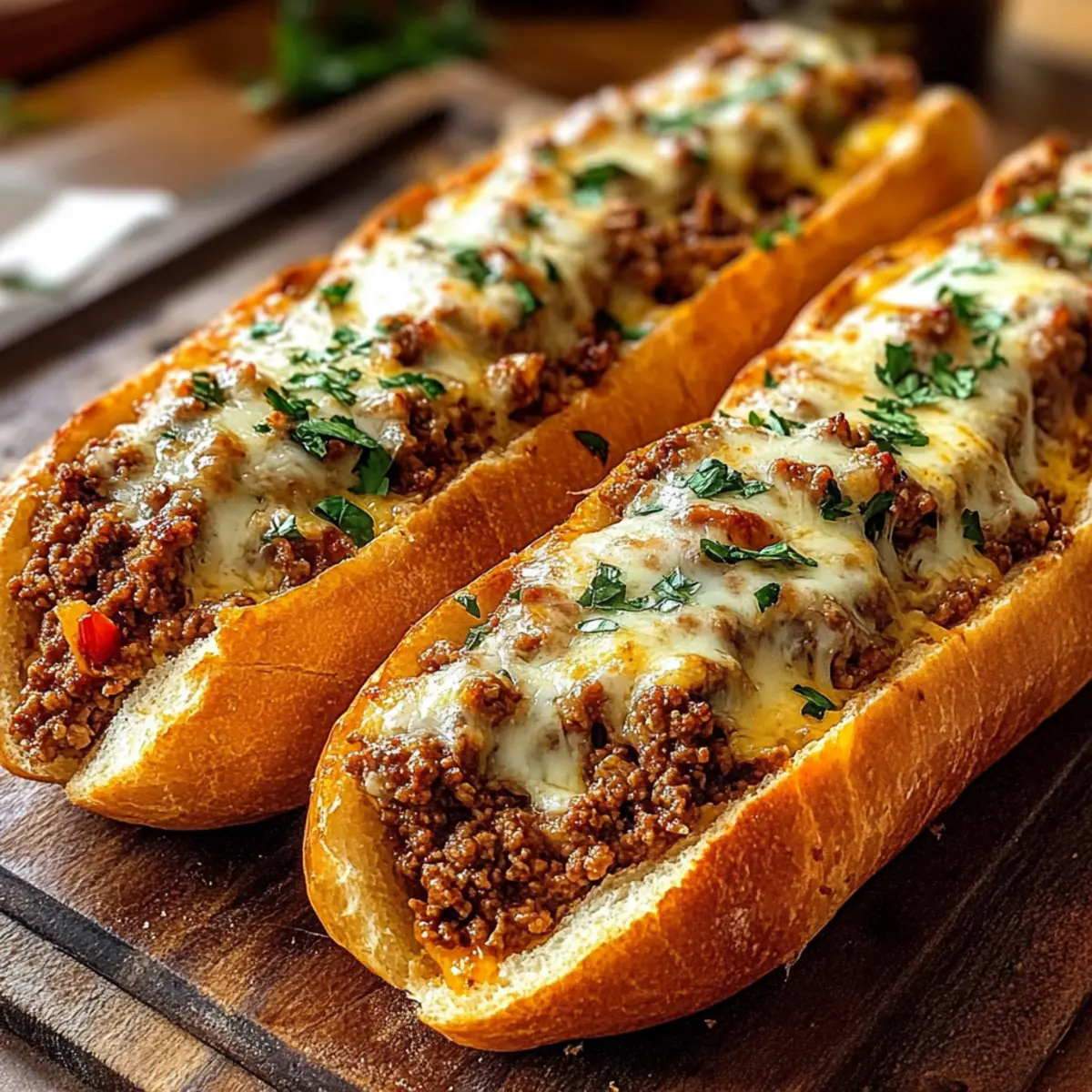 Einfachheit: Die Zubereitung dieser Überbackenen Hackfleisch-Baguettes ist kinderleicht und erfordert nur grundlegende Kochkenntnisse. Herzhafter Genuss: Die Kombination aus würzigem Rinderhackfleisch und schmelzendem Käse sorgt für einen Geschmack, der begeistert. Vielseitigkeit: Du kannst je nach Vorlieben auch vegetarische oder vegane Alternativen verwenden, was dieses Gericht für jeden geeignet macht. Perfekt für jeden Anlass: Ob für ein Familienessen oder einen entspannten Abend mit Freunden – sie sind immer ein Hit. Und wenn du noch mehr Ideen für Beilagen suchst, schau dir auch unsere leckeren Salatrezepte an!