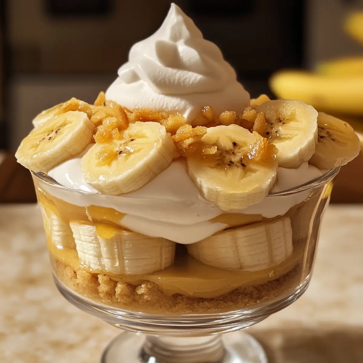 Es gibt Momente in der Küche, die das Herz höher schlagen lassen – und die Zubereitung dieser unwiderstehlichen Bananenpudding-Becher mit karamelisierten Bananen ist genau so ein Moment. Dieser köstliche, no-bake Nachtisch ist nicht nur kinderleicht zuzubereiten, sondern verleiht jeder Zusammenkunft auch einen Hauch von Eleganz. Mit den zarten Schichten aus cremigem Pudding und dem warmen, gerösteten Aroma der karamelisierten Bananen wird jede Portion zu einem Erlebnis, das Erinnerungen weckt und Freunde begeistert. Perfekt zum Vorbereiten, kann dieser süße Leckerbissen bis zu 24 Stunden im Voraus zubereitet werden, sodass du stressfrei genießen kannst. Wer könnte da widerstehen? Lass uns gemeinsam diesen genussvollen Klassiker neu entdecken! Warum werden Sie dieses Rezept lieben? Einfachheit: Die Zubereitung erfordert nur wenige Schritte und ist ideal für Anfänger. Reiche Geschmäcker: Die karamelisierten Bananen bringen eine köstliche Süße und einen Hauch von Röstgeschmack in jeden Bissen – unwiderstehlich! Flexibilität: Ob für ein festliches Essen oder ein einfaches Familiendessert, diese Bananenpudding-Becher passen zu jedem Anlass. Langanhaltende Frische: Perfekt zum Vorbereiten bis zu 24 Stunden im Voraus, sodass du keinen Stress hast. Verlängerte Freude: Diese Becher sind ein Genuss, der sowohl Erwachsene als auch Kinder begeistert und daher ideal zum Teilen ist. Entdecke auch unsere Tipps für Variationen und Optionen und finde heraus, wie du dieses Rezept an deinen persönlichen Geschmack anpassen kannst! Unwiderstehliche Bananenpudding-Becher Zutaten Für den Pudding Bananenpudding-Mix – Sorgt für die cremige Basis des Desserts; verwende einen Koch- und Serviermix, um die optimale Textur und den besten Geschmack zu erzielen. Milch – Unverzichtbar für die Zubereitung des Puddings; Vollmilch wird für zusätzliche Reichhaltigkeit empfohlen. Für die Sahne Schlagsahne – Für die selbstgemachte Sahne; sorgt für eine leicht luftige Textur. Puderzucker – Verleiht der Sahne Süße ohne Körnigkeit. Für die Bananen Frische Bananen – Bevorzuge leicht reife oder etwas underripe Bananen, um übermäßiges Braunwerden und Matsche zu vermeiden. Butter – Wird zum Karamellisieren verwendet und intensiviert den Geschmack der Bananen. Brauner Zucker – Ergänzt die Bananen beim Karamellisieren und verleiht ihnen zusätzlich Süße. Für die Schichten Mini Nilla Wafers – Klassische Komponente für das Schichten und die Textur; Alternativen sind Mini-Chessman-Kekse oder glutenfreie Optionen. Diese unwiderstehlichen Bananenpudding-Becher sind die perfekte Kombination aus Einfachheit und Genuss. Lass dich inspirieren und entdecke die Freude an diesem köstlichen Dessert! Schritt-für-Schritt-Anleitung für Unwiderstehliche Bananenpudding-Becher mit Karamellbananen Step 1: Pudding zubereiten Bereite den Bananenpudding gemäß der Verpackungsanweisungen vor. Koche die Mischung in einem Topf unter ständigem Rühren, bis sie eindickt, etwa 5-7 Minuten. Fülle den Pudding in eine Schüssel, decke ihn mit Frischhaltefolie ab und lasse ihn für mindestens 4 Stunden im Kühlschrank fest werden. Step 2: Sahne schlagen Nimm die kalte Schlagsahne und gib sie in eine gekühlte Rührschüssel. Verwende einen elektrischen Mixer, um die Sahne auf mittlerer Geschwindigkeit zu schlagen, bis steife Spitzen entstehen, was etwa 3-5 Minuten dauern sollte. Füge den Puderzucker langsam hinzu und schlage weiter, bis alles gut vermischt ist und eine luftige Textur hat. Step 3: Pudding und Sahne vermengen Nimm den gekühlten Pudding aus dem Kühlschrank und falte vorsichtig die geschlagene Sahne unter. Verwende einen Spachtel und hebe die Sahne sanft unter den Pudding, um die Luftigkeit zu bewahren. Achte darauf, dass sich die beiden Mischungen gut verbinden, ohne zusammenzufallen. Step 4: Bananen karamellisieren Erhitze eine Pfanne bei mittlerer Hitze und füge die Butter sowie den braunen Zucker hinzu. Sobald die Butter geschmolzen ist und die Mischung zu blubbern beginnt, gib zwei Drittel der Bananenscheiben dazu. Karamellisiere die Bananen für etwa 3-4 Minuten, bis sie leicht goldbraun sind. Lasse sie anschließend kurz abkühlen. Step 5: Schichten der Becher Beginne, die unwiderstehlichen Bananenpudding-Becher in klaren Dessertgläsern zu schichten. Beginne mit einer Schicht Pudding, gefolgt von einer Schicht Mini Nilla Wafers, dann einer Schicht frischer Bananenscheiben und karamelisierten Bananen. Wiederhole den Vorgang und schließe mit der restlichen Puddingmischung ab. Step 6: Kühlen und servieren Decke die gefüllten Becher mit Frischhaltefolie ab und stelle sie für mindestens 2 Stunden in den Kühlschrank, damit sich die Aromen vermischen. Für das beste Geschmackserlebnis sollte man die Becher idealerweise 24 Stunden vorher zubereiten. Vor dem Servieren mit frisch geschnittenen Bananen und Waffeln garnieren. Was passt zu unwiderstehlichen Bananenpudding-Bechern mit karamelisierten Bananen? Genieße die süßen Momente, während du diese cremigen Becher in voller Pracht präsentierst und mit passenden Beilagen kombinierst. Cremige Schlagsahne: Verleiht dem Dessert zusätzliche Luftigkeit und macht jeden Bissen noch verführerischer. Frische Beeren: Himbeeren oder Erdbeeren bieten einen erfrischenden Kontrast zu der Süße des Puddings und bringen Farbe auf den Teller. Kekse oder Brownies: Knackige Kekse oder fudgy Brownies sorgen für Textur und bieten einen aufregenden Kontrast zu dem cremigen Dessert. Eine perfekte Überraschung in jedem Löffel! Nussiges Granola: Ein Hauch von Granola fügt einen knusprigen Biss hinzu und rundet die cremigen Schichten harmonisch ab. Es bringt auch einen gesunden Twist ins Spiel. Karamellsauce: Ein zusätzlicher Schuss Karamellsauce auf den Bechern verstärkt das süße Erlebnis und hinterlässt einen bleibenden Eindruck bei deinen Gästen. Kalte Milch oder Kaffee: Eine Tasse kalte Milch oder ein cremiger Kaffee passt hervorragend, 