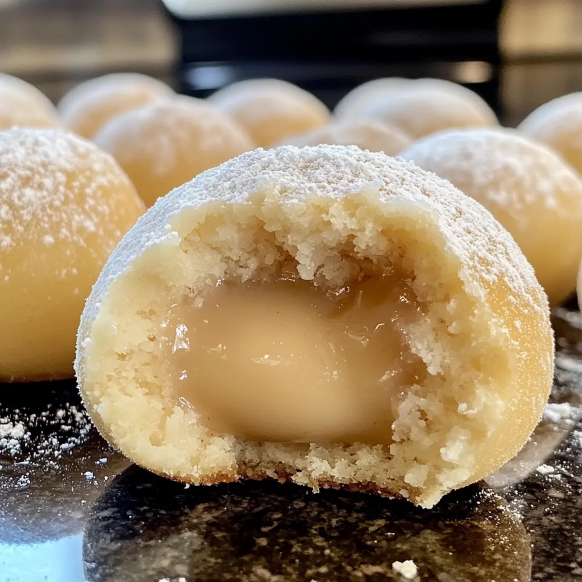 Die sanften, weihnachtlichen Aromen von Vanille und Nougat erfüllen die Luft, während ich in meiner Küche stehe und diese kleinen Köstlichkeiten zaubere. Es gibt etwas Magisches an den Vanillekipferl-Kugeln mit Marzipan und Nougat, die nicht nur mein Herz, sondern auch die Herzen meiner Gäste im Sturm erobern. Diese kleinen Delikatessen sind nicht nur einfach zuzubereiten, sondern auch perfekt zum Teilen und Verschenken. Sie gefallen nicht nur den Naschkatzen, sondern bringen auch festliche Stimmung auf jeden Tisch. Mit dieser Rezeptvariation kannst du deiner Kreativität freien Lauf lassen – probiere verschiedene Nüsse oder Füllungen aus! Welche besondere Note wirst du deinen Kugeln verleihen? Warum sind diese Kugeln so unwiderstehlich? Einzigartiger Geschmack: Die Mischung aus zarter Vanille, süßem Marzipan und schokoladigem Nougat sorgt für ein schmackhaftes Erlebnis, das jede Süßigkeit übertrifft. Einfach zuzubereiten: Die Schritte sind leicht nachvollziehbar, selbst für Kochanfänger – du kannst diese Leckereien im Handumdrehen zubereiten. Vielseitigkeit: Mit verschiedenen Nüssen oder Füllungen kannst du deine persönliche Note hinzufügen und die Kugeln nach deinem Geschmack anpassen. Festliche Stimmung: Perfekt für die Feiertage, verbreiten diese Kugeln eine wunderbare Freude und sind ein Highlight auf jeder Weihnachtsfeier. Teilen ist wichtig: Diese Kugeln eignen sich hervorragend zum Verschenken – zeige deinen Freunden, wie viel Liebe in handgemachten Köstlichkeiten steckt! Vanillekipferl-Kugeln mit Marzipan und Nougat Zutaten Hinweis: Hier sind die nötigen Zutaten für die köstlichen Vanillekipferl-Kugeln mit Marzipan und Nougat. Für den Teig Weiche Butter – sorgt für eine zarte Teigstruktur; pflanzliche Margarine ist eine gute vegane Alternative. Zucker – gibt dem Teig die notwendige Süße; verwende braunen Zucker für einen intensiveren Karamellgeschmack. Vanilleschote – für einen intensiven Vanillegeschmack; Vanilleextrakt kann ebenfalls genutzt werden. Eigelbe – verleihen dem Teig Struktur und Bindung; du kannst auch Apfelmus als Eiersatz verwenden. Gemahlene Mandeln – sorgen für einen nussigen Geschmack; ersetzbar durch Haselnüsse oder Walnüsse. Mehl – sorgt für die Stabilität des Teigs; eine glutenfreie Mischung ist ebenfalls möglich. Backpulver – sorgt dafür, dass der Teig aufgeht. Für die Füllung Nougat – sorgt für die schokoladige Füllung; du kannst auch andere Schokoladensorten verwenden. Marzipan – für die süße Füllung, die Komplexität bringt; Pistazienpaste ist eine spannende Variante. Schritt-für-Schritt-Anleitung für Vanillekipferl-Kugeln mit Marzipan und Nougat Step 1: Teig vorbereiten Die weiche Butter mit dem Zucker und dem Mark der Vanilleschote in einer Rührschüssel schaumig schlagen. Dies dauert etwa 3-5 Minuten, bis die Masse hell und cremig ist. Achte darauf, die Zutaten gut zu vermischen, um eine gleichmäßige Textur zu erhalten. Step 2: Zusätze einarbeiten Füge die Eigelbe nacheinander unter die Mischung hinzu und rühre gut um. Danach die gemahlenen Mandeln, das Mehl und das Backpulver hinzufügen. Knete den Teig leicht, bis er geschmeidig und leicht klebrig ist, was ungefähr 5 Minuten in Anspruch nehmen kann. Step 3: Teig kühlen Wickle den Teig in Klarsichtfolie ein und lege ihn für mindestens 30 Minuten in den Kühlschrank. Dies hilft, den Teig fester zu machen, wodurch das Formen der Kugeln erheblich erleichtert wird. Währenddessen kannst du die Füllung vorbereiten. Step 4: Füllung erstellen Schneide den Nougat in kleine Stücke, etwa 1 cm groß. Forme aus dem Marzipan kleine Bällchen und drücke ein Loch in die Mitte jedes Stücks. Lege das Nougatstück in das Loch, forme das Marzipan wieder zusammen und achte darauf, dass das Nougat vollständig umhüllt ist. Step 5: Kugeln formen Nimm etwa 15 g Teig und forme daraus eine Kugel. Drücke ein Loch in die Mitte der Kugel und platziere die vorbereitete Marzipankugel hinein. Verschließe die Teigkugel wieder und achte darauf, dass die Füllung vollständig eingekapselt ist. Step 6: Backen Lege die kugelförmigen Teigstücke auf ein mit Backpapier ausgelegtes Backblech. Backe die Vanillekipferl-Kugeln bei 160°C für ca. 18 Minuten, bis sie eine goldgelbe Farbe annehmen. Die Kugeln sollten leicht fest, aber nicht zu braun sein. Step 7: Finish Nimm das Backblech aus dem Ofen und lasse die Kugeln kurz abkühlen. Wälze die noch warmen Kugeln in Zucker, um ihnen eine süße, knusprige Oberfläche zu verleihen. Nach dem vollständigen Abkühlen mit Puderzucker bestäuben, um einen festlichen Look zu erzielen. Aufbewahrungstipps für Vanillekipferl-Kugeln mit Marzipan und Nougat Raumtemperatur: Bewahre die Kugeln an einem kühlen und trockenen Ort auf, damit sie bis zu 3 Tagen frisch bleiben. Achte darauf, sie in einem Behälter mit Deckel zu halten. Kühlschrank: Im Kühlschrank bleiben die Vanillekipferl-Kugeln etwa eine Woche haltbar. Stelle sicher, dass sie in einem luftdichten Behälter aufbewahrt werden, um ein Austrocknen zu vermeiden. Gefrierfach: Die Kugeln können bis zu drei Monate eingefroren werden. Lege sie in eine gefriergeeignete Box, trenne sie mit Backpapier, damit sie nicht zusammenkleben. Auftauen: Zum Auftauen die gefrorenen Kugeln einfach über Nacht in den Kühlschrank legen. So bleiben sie schön zart und lecker. Variationen & Alternativen für Vanillekipferl-Kugeln Entfalte deine Kreativität und passe die Vanillekipferl-Kugeln an deinen persönlichen Geschmack an – die Möglichkeiten sind vielfältig und köstlich! Nussvielfalt: Experimentiere mit Walnüssen oder Haselnüssen für unterschiedliche nussige Aromen, die dem Teig eine interessante Textur verleihen. Schokoladenwechsel: Verwende anstelle von Nougat Zartbitter- oder Vollmilchschokolade für einen ganz neuen Geschmackshorizont. Kräuterische Note: Ein Hauch Zimt oder Muskatnuss kann dem Teig eine winterliche Gewürznote verleihen und die Weihnach