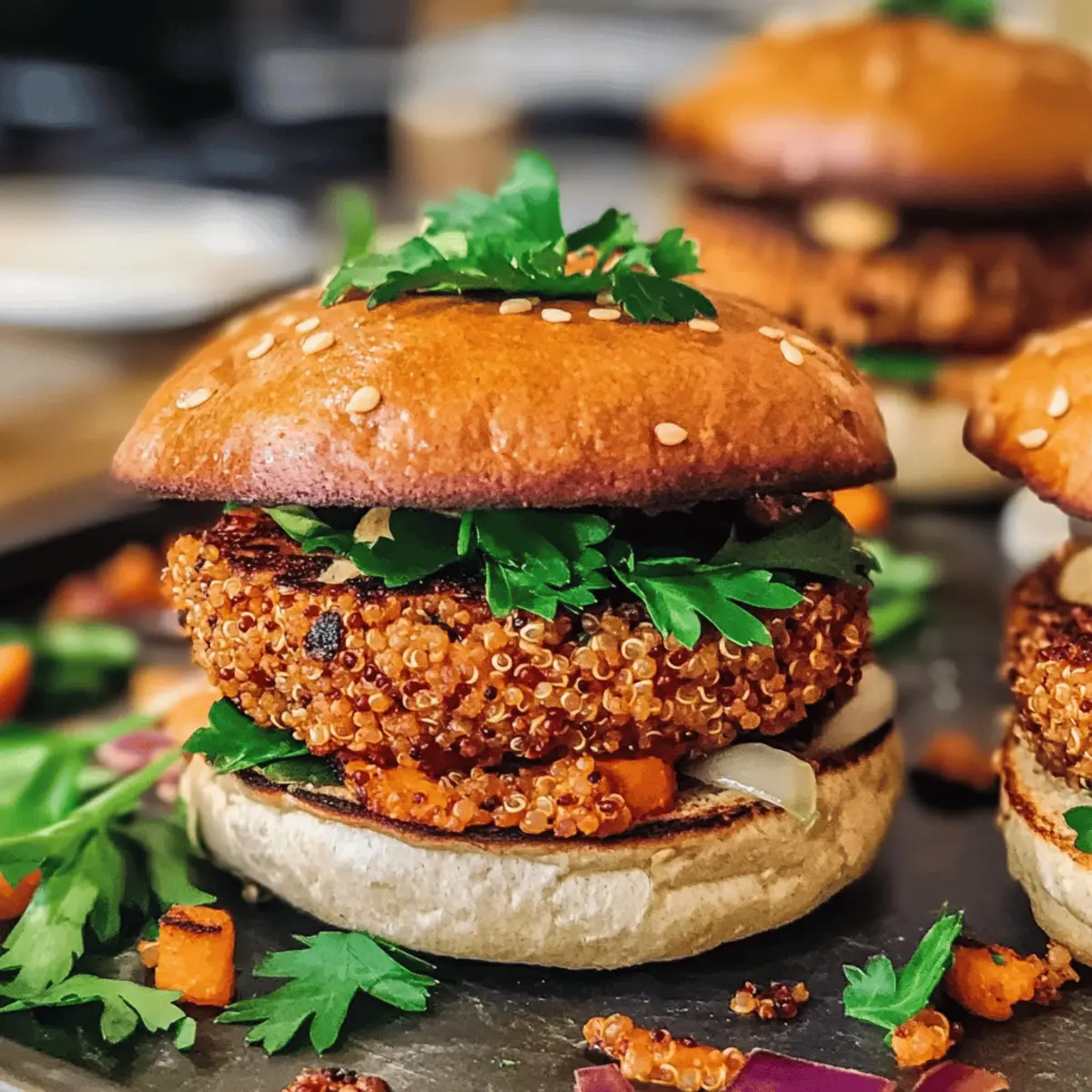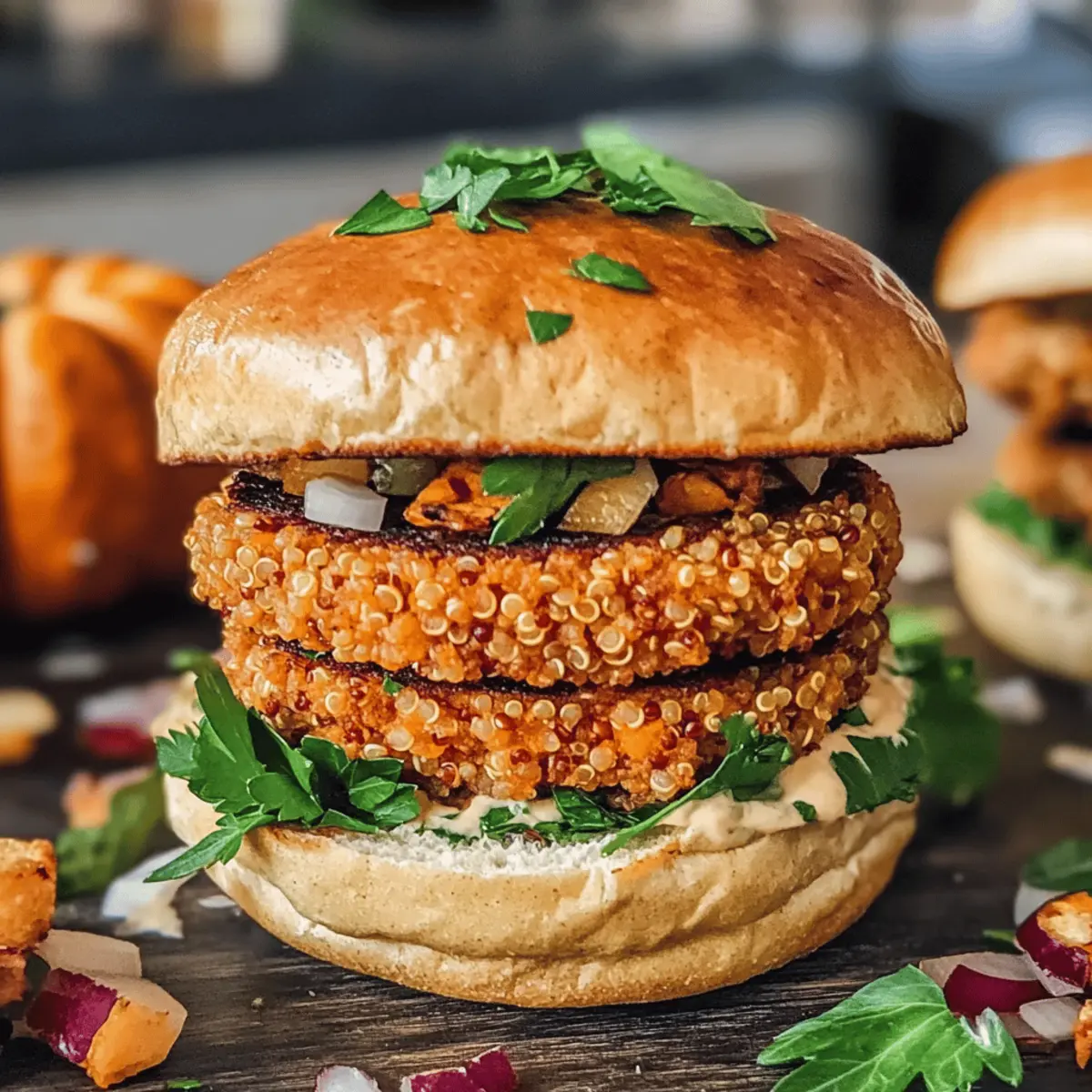 Die herbstlichen Aromen von Kürbis und Gewürzen haben mich in den letzten Tagen richtig gepackt! Diese veganen Kürbisquinoa-Burger sind die perfekte Antwort darauf – sie sind außen schön knusprig und innen angenehm cremig. Dieses Rezept für veganer Kürbisburger bringt nicht nur Abwechslung auf den Tisch, sondern ist auch glutenfrei und nussfrei, so dass jeder mithelfen kann, sich gesund zu ernähren. Ideal für schnelle Mahlzeiten unter der Woche oder als schmackhafte Snack-Option für Partys – verfeinere sie je nach Belieben mit deinen Lieblingszutaten! Was wäre dein persönlicher Twist für diese leckeren Burger? Warum sind diese Burger so besonders? Gesundheitlich: Diese veganen Kürbisquinoa-Burger sind nicht nur lecker, sondern auch nährstoffreich und enthalten wertvolle Proteine sowie Ballaststoffe. Vielseitig: Du kannst das Rezept ganz nach deinem Geschmack anpassen – egal ob mit verschiedenen Hülsenfrüchten oder Kräutern, der Kreativität sind keine Grenzen gesetzt! Zeitsparend: Mit einfachen, schnellen Schritten sind sie perfekt für ein unkompliziertes Abendessen oder einen schnellen Snack. Herbstliche Aromen: Die Kombination aus Kürbis und Gewürzen spiegelt den Geist der Saison wider. Perfekt für alle: Diese Burger sind nicht nur für Veganer geeignet, sondern jeder, der leckeres Essen liebt, wird begeistert sein! Kombiniere sie mit einem frischen Salat oder knusprigen Süßkartoffelpommes und genieße den vollmundigen Geschmack. Veganer Kürbisburger Zutaten • Diese köstlichen veganen Kürbisburger sind nicht nur einfach zuzubereiten, sondern auch anpassbar für verschiedene Geschmäcker! Für die Burger-Patties Kürbispüree – sorgt für Feuchtigkeit und einen süßen, erdigen Geschmack; verwende hausgemachtes oder konserve Kürbispüree. Quinoa – bietet eine hervorragende Textur und Protein; kann durch Bulgur oder Reis ersetzt werden. Rapsöl – zum Braten der Patties; kann durch Olivenöl oder anderes Kochöl ersetzt werden. Zwiebel – bringt Geschmack mit; bis zur Durchsichtigkeit anschwitzen. Knoblauch – sorgt für aromatische Tiefe. Haferflocken – fungieren als Bindemittel; für eine feinere Textur kannst du sie zu Hafermehl mahlen. Kichererbsen – Hauptquelle für Proteine; können durch andere Bohnen wie schwarze oder Kidneybohnen ersetzt werden. Walnüsse – für zusätzlichen Crunch und Geschmack; können durch Sonnenblumenkerne für eine nussfreie Option ersetzt werden. Petersilie – frische Kräuter für zusätzlichen Geschmack; könnte durch Koriander ersetzt oder weggelassen werden. Tomatenmark – fügt eine umami Note hinzu. Getrocknete Kräuter – verstärken den Geschmack; eine Kombination aus Basilikum, Oregano und Thymian wird empfohlen. Kreuzkümmel – bringt Wärme und Tiefe in die Burger. Gewürze (Cayenne, Salz, Kürbisgewürz) – sorgen für die nötige Würze und können nach Geschmack angepasst werden. Für die Servierung Burger-Brötchen – serviere die Patties auf deinem bevorzugten Brötchen. Hummus, Feldsalat, veganer Joghurt – empfohlene Toppings, um die Burger zu verfeinern. Nutze diesen Zutatenmix für deine eigenen veganen Kürbisburger und entdecke die unendlichen Möglichkeiten, die dir die Verpackung des Geschmackes bietet! Schritt-für-Schritt-Anleitung für vegane Kürbisburger Step 1: Kürbispüree vorbereiten Bereite entweder dein eigenes Kürbispüree zu oder verwende ein hochwertiges, aus der Dose. Wenn du frischen Kürbis verwendest, schäle und schneide ihn in Stücke, koche ihn in Wasser für etwa 15 Minuten, bis er weich ist, und püriere ihn dann zu einer glatten Masse. Lass das Püree abkühlen. Step 2: Quinoa kochen Koche die Quinoa gemäß den Anweisungen auf der Verpackung – in der Regel etwa 15 Minuten in der doppelten Menge Wasser. Wenn die Quinoa fertig ist und das Wasser aufgesogen wurde, lass sie abkühlen. Dieses proteinreiche Getreide ist eine wichtige Zutat für deine veganen Kürbisburger. Step 3: Zwiebel und Knoblauch anbraten Erhitze in einer Pfanne etwas Rapsöl bei mittlerer Hitze. Füge eine fein gehackte Zwiebel hinzu und brate sie etwa 2-3 Minuten an, bis sie glasig und weich ist. Dann füge den gehackten Knoblauch hinzu und brate ihn für eine weitere Minute mit, bis er aromatisch ist. Nimm die Pfanne vom Herd und lass die Mischung etwas abkühlen. Step 4: Haferflocken mahlen Nimm die Haferflocken und mahle sie in einer Küchenmaschine oder einem Mixer zu einer groben Mehlsubstanz, die als Bindemittel für die Burger dient. Dieser Schritt sorgt für eine bessere Konsistenz der veganen Kürbisburger und erleichtert das Formen der Patties. Step 5: Kichererbsen und Walnüsse mischen Gib die Kichererbsen, grob gehackte Walnüsse und frische Petersilie in die Küchenmaschine und püriere alles einige Sekunden, bis die Mischung grob vermengt, aber nicht zu stark püriert ist. Diese Kombination wird das Herzstück der Burger-Patties und gibt ihnen einen leckeren Crunch. Step 6: Alle Zutaten vermengen In einer großen Schüssel vereine das Kichererbsengemisch mit dem Kürbispüree, der gekochten Quinoa, dem Tomatenmark, den getrockneten Kräutern, Kreuzkümmel und dem Hafermehl. Rühre gut um, bis alle Zutaten gleichmäßig verteilt sind, und forme eine klebrige Masse, die bereit ist, in Patties geformt zu werden. Step 7: Patties formen Teile die Mischung in 6 gleich große Portionen auf und forme jede Portion zu einem Patty. Drücke die Patties mit den Händen leicht fest, damit sie beim Braten die Form behalten. Der nächste Schritt wird die Zubereitung der veganen Kürbisburger in der Pfanne sein. Step 8: Patties braten Erhitze in einer Pfanne bei mittlerer bis hoher Hitze etwas Rapsöl. Brate die Patties für etwa 5-6 Minuten auf jeder Seite, bis sie goldbraun und knusprig sind. Achte darauf, die Patties nicht zu überladen, damit sie gleichmäßig garen. Die äußere Schicht wird knusprig, während das Innere cremig bleibt. Step 9: Servieren und genießen Serviere d