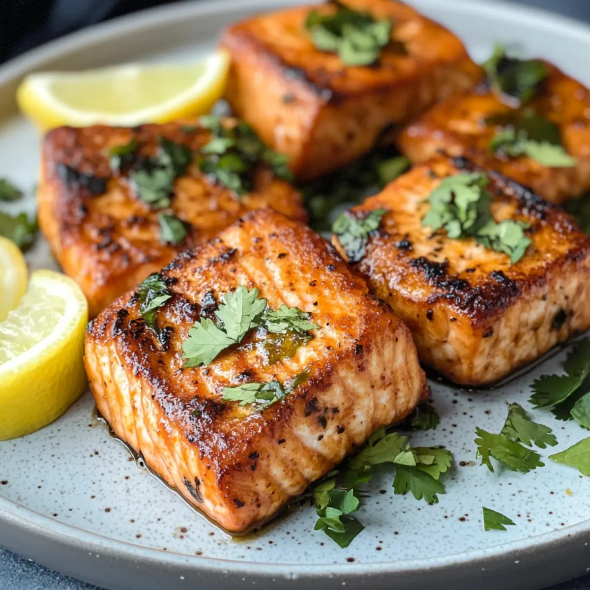 Würze den gebratenen Tofu mit frischem schwarzem Pfeffer, roten Pfefferflocken und gehacktem Koriander. Serviere ihn mit Zitronenschnitzen und optionaler veganer Tartarsoße als Beilage. Genieße deinen Crispy Veganer Lachs aus Tofu als schmackhafte und gesunde Alternative zu traditionellen Fischgerichten!