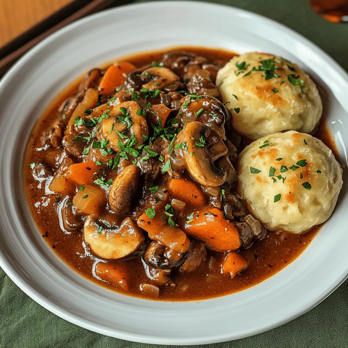 Genießen Sie dieses köstliche vegane Gulasch mit Pilzen und Semmelknödeln, das nicht nur wärmt, sondern auch Herzen erobert.
