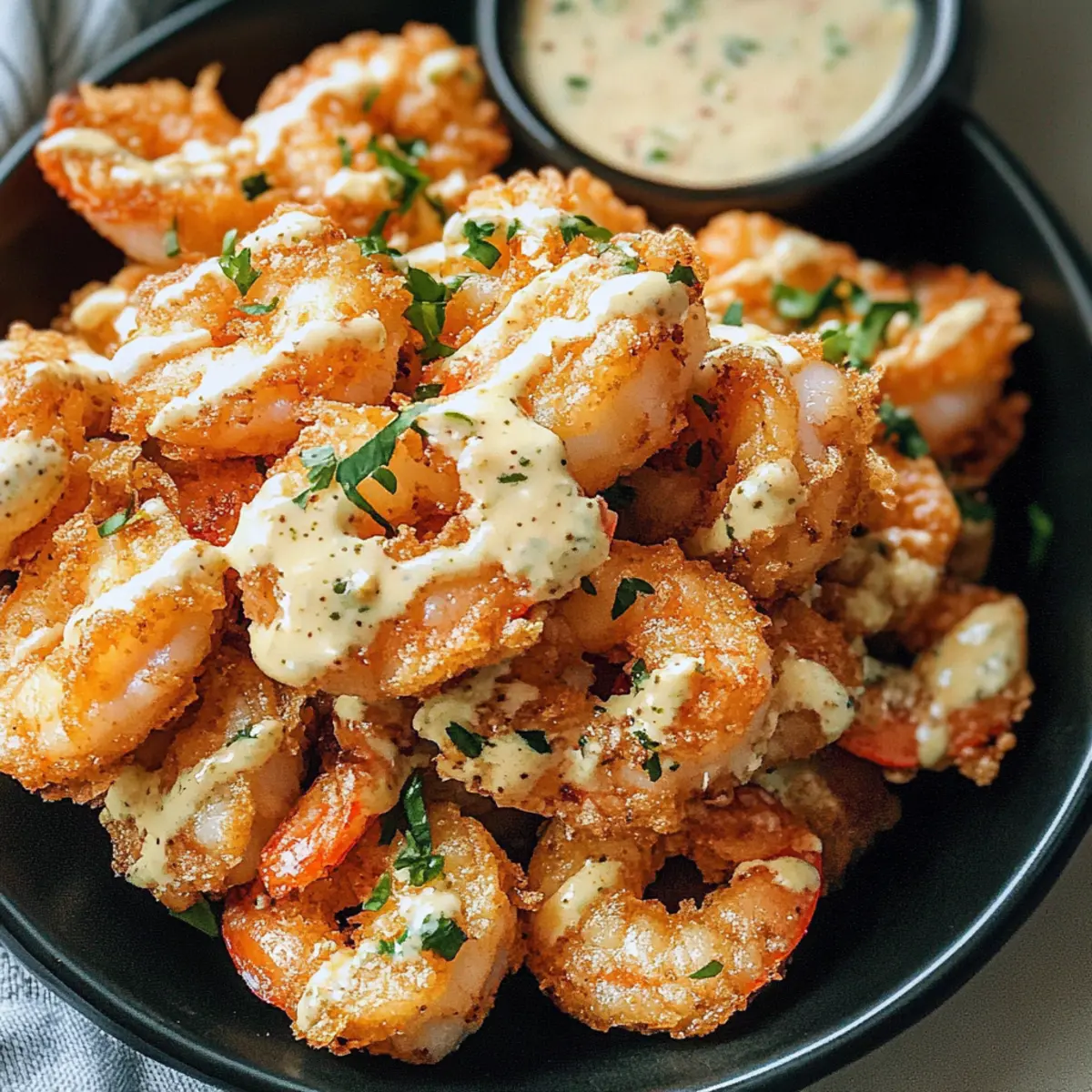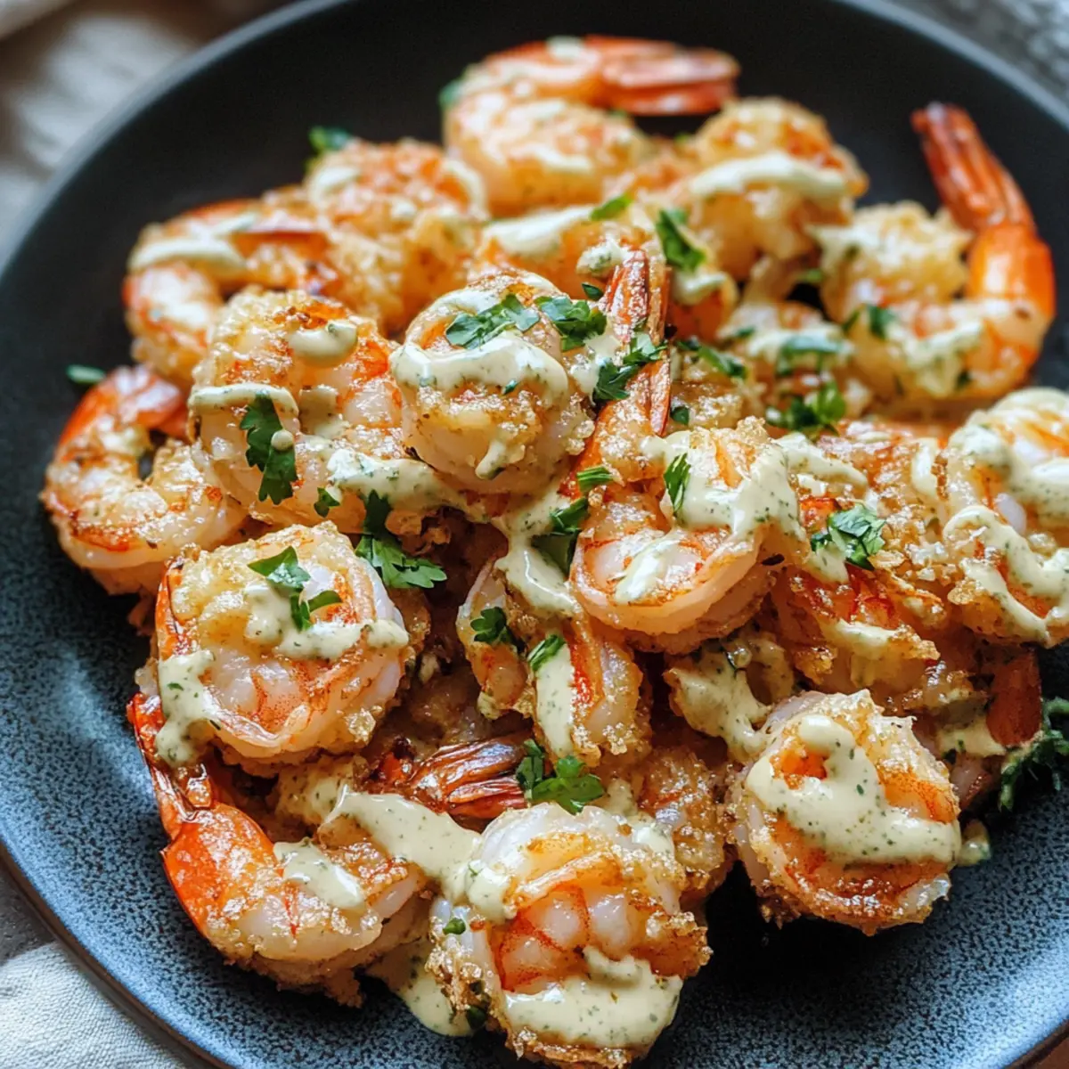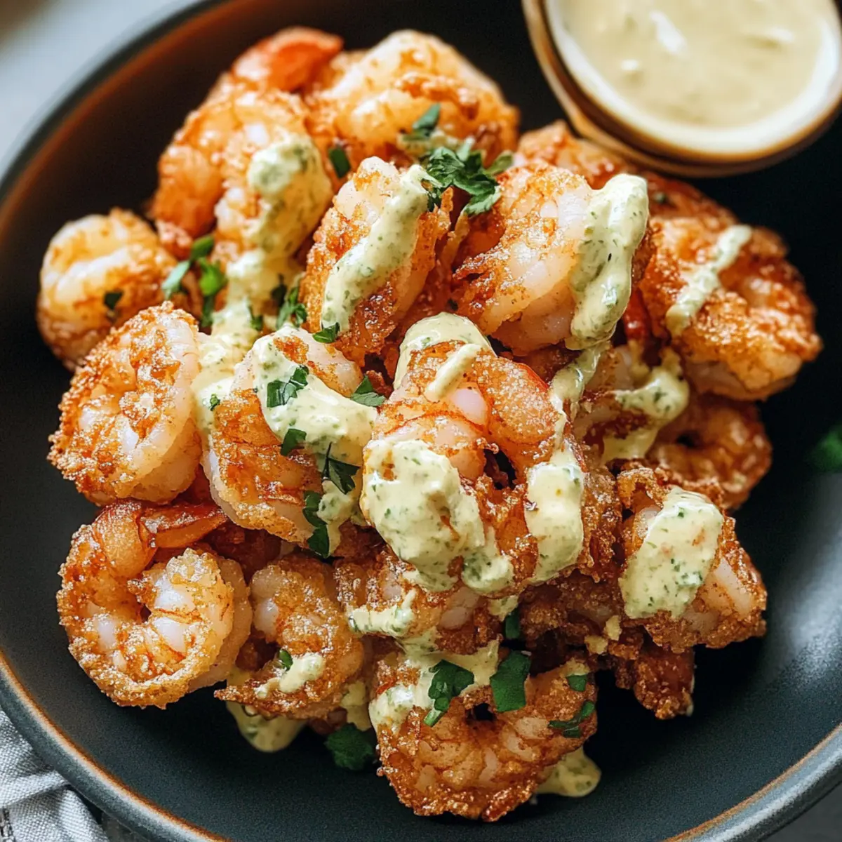 „Kannst du den scharfen Kick von Wasabi spüren?“ hörte ich, als ich meine ersten knusprigen Wasabi-Mayo-Garnelen zubereitete. Diese aufregende Kombination aus zarten, goldbraun gebratenen Garnelen und einer cremigen, würzigen Sauce aus Kewpie-Mayonnaise bringt ein Stück Restaurant-Feeling direkt in deine Küche. Mit nur wenigen Zutaten zauberst du einen beeindruckenden Appetizer, der sowohl für besondere Anlässe als auch für ein entspanntes Dinner zu Hause perfekt ist. Und das Beste daran? Diese leckeren Garnelen sind nicht nur einfach zuzubereiten, sondern werden auch deine Gäste begeistern. Bist du bereit, deinem nächsten Gericht eine aufregende Wendung zu geben? Warum wirst du diese Garnelen lieben? Einfachheit: Die Zubereitung ist ein Kinderspiel und benötigt nur wenige Schritte! Würzige Note: Der Wasabi bringt eine köstliche Schärfe, die ideal mit der cremigen Mayo harmoniert. Perfekter Genuss: Ob als Snack oder als Partydish – diese Garnelen sind ein Hit! Leichter Genuss: Mit frischen Zutaten zauberst du ein Gericht, das auch in edlen Restaurants zu finden ist. Flexibilität: Probiere diese Technik mit anderen Meeresfrüchten wie Pfifferlinge mit Spinat oder serviere sie mit einer Beilage wie einer Waldorfsalat für ein Full-Service Dinner! Wasabi-Mayo-Garnelen Zutaten • Verpasse nicht die Gelegenheit, diese köstlichen Garnelen zu probieren! Für die Garnelen Garnelen – Verwende frische, unbehandelte Garnelen für den besten Geschmack; gefrorene sind auch akzeptabel, wenn sie richtig aufgetaut und trocken sind. Shaoxing-Wein – Er verleiht eine wunderbare Umami-Note; kann durch trockenen Sherry ersetzt werden. Salz – Verstärkt den Geschmack der Garnelen und der Marinade. Weißer Pfeffer – Bietet eine milde Schärfe; kann bei Bedarf durch schwarzen Pfeffer ersetzt werden. Ingwer – Sorgt für ein erdiges Aroma und zartes Fleisch; frischer Ingwer ist am besten. Für die Sauce Kewpie-Mayonnaise – Die Basis der Sauce; ihre Süße ergänzt perfekt den Wasabi. Reguliere den Schärfegrad bei Bedarf. Wasabi – Das Gewürz der Sauce; passe die Menge nach deinem Geschmack an. Zitronensaft – Sorgt für eine angenehme Säure, die die Sauce aufhellt. Für die Panade Ei – Bindet die Panade und sorgt für eine fluffige Konsistenz. Backsoda – Hilft, eine leichtere Panade zu kreieren und Soggigkeit zu verhindern. Maisstärke – Bildet die Struktur der Panade und sorgt für eine knusprige Hülle; 1/2 bis 3/4 Tasse je nach Eigröße verwenden. Zum Frittieren Pflanzenöl – Zum flachen Frittieren; wähle ein Öl mit hohem Rauchpunkt. Für die Garnitur Koriander – Verleiht Farbe und frische Nuancen als Garnitur. Mit diesen Zutaten zauberst du die perfekte Mischung für deine Wasabi-Mayo-Garnelen, die nicht nur einfach, sondern auch unglaublich lecker sind! Schritt-für-Schritt-Anleitung für Wasabi-Mayo-Garnelen Step 1: Garnelen marinieren Die Garnelen gründlich unter kaltem Wasser abspülen und trocken tupfen. In einer Schüssel die Garnelen mit Shaoxing-Wein, Salz, weißem Pfeffer und frisch geriebenem Ingwer vermengen. Lassen Sie die Mischung für 10-15 Minuten ruhen, um die Aromen einzuziehen. Dies sorgt für saftige, geschmackvolle Wasabi-Mayo-Garnelen. Step 2: Die Sauce vorbereiten In einer separaten Schüssel Kewpie-Mayonnaise, Zitronensaft und Wasabi gründlich vermischen. Passen Sie die Menge des Wasabis nach Ihrem persönlichen Geschmack an, um die gewünschte Schärfe zu erreichen. Diese cremige Sauce wird das Herzstück Ihres Gerichts und kreiert eine harmonische Verbindung zu den knusprigen Garnelen. Step 3: Die Panade herstellen Fügen Sie ein Ei und Backpulver zu den marinierten Garnelen hinzu und rühren Sie die Mischung gut durch. Nach und nach Maisstärke einarbeiten, bis die Garnelen gleichmäßig und gut umhüllt sind. Die Panade ist entscheidend für die Knusprigkeit der Wasabi-Mayo-Garnelen, also stellen Sie sicher, dass sie gut haftet. Step 4: Garnelen frittieren In einer großen Pfanne 1,5 cm hoch Pflanzenöl erhitzen, bis es heiß ist (ca. 180°C). Frittieren Sie die Garnelen in kleinen Portionen für 2-3 Minuten, bis sie goldbraun und knusprig sind. Wenden Sie die Garnelen zur Halbzeit, um eine gleichmäßige Bräunung zu gewährleisten. Step 5: Garnelen abkühlen lassen Die gebratenen Garnelen vorsichtig mit einer Schaumkelle aus der Pfanne nehmen und auf einem Drahtgestell abtropfen lassen. Achten Sie darauf, sie nicht zu stapeln, damit sie während des Abkühlens nicht matschig werden. Dies ist ein wichtiger Schritt, um die perfekte Textur Ihrer Wasabi-Mayo-Garnelen zu bewahren. Step 6: Anrichten und servieren Kurz bevor Sie die Garnelen servieren, in eine Schüssel geben und mit der vorbereiteten Wasabi-Mayo-Sauce gut vermischen. Garnieren Sie das Gericht mit frischem Koriander für einen zusätzlichen Farbtupfer und frischen Geschmack. Ihre köstlichen Wasabi-Mayo-Garnelen sind nun bereit, genossen zu werden! Variationen & Alternativen zur Wasabi-Mayo-Garnelen Lass deiner Kreativität freien Lauf und passe dieses Rezept nach deinem Geschmack an! Anderes Meeresfrüchte: Probiere Scampis oder Tintenfisch anstelle von Garnelen für ein ganz neues Geschmackserlebnis. Jede Option bringt ihren eigenen Charme und sorgt für eine köstliche Abwechslung. Würziger Kick: Füge Chili-Flocken hinzu für zusätzliche Schärfe, wenn du es richtig krachen lassen möchtest. Diese kleine Ergänzung wird das Gericht in eine feurige Delikatesse verwandeln. Kräutermischung: Nutze frische Dill- oder Schnittlaucharomen statt Koriander für einen anderen, frischen Geschmack. Diese Kräuter bringen eine feine, ansprechende Note in dein Gericht. Frittier-Alternative: Probiere die Garnelen zu backen anstelle von frittieren für eine leichtere Option. So bleibst du bei deiner Gesundheitsroutine, ohne auf Geschmack zu verzichten. Asiatische Noten: Ergänze den Teig mit etwas Sesamöl für einen intensiveren Geschmack und ein Hauch von Asien. Diese Zutat 
