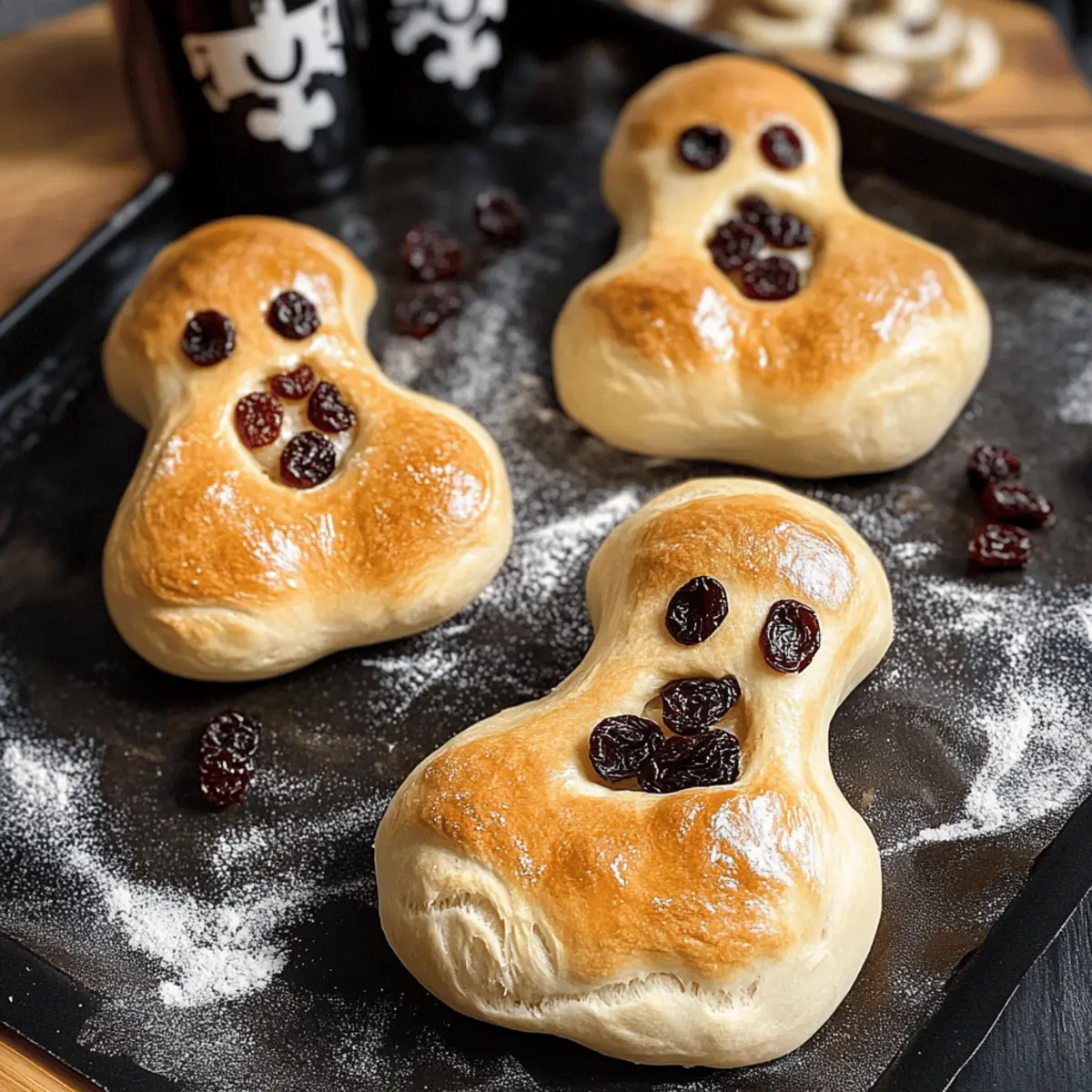 In der Dämmerung, wenn Halloween näher rückt, wird die Vorfreude auf gruselige Leckereien greifbar. Die fluffigen Weckgeister (Ghostly Sweet Buns) sind genau das, was ich benötige, um die festliche Stimmung zu heben! Diese kleinen, gespenstischen Brötchen, die ganz ohne Zucker und Weizenmehl auskommen, sind nicht nur eine gesunde Alternative, sondern auch eine herzliche Aktivität, die Kinder lieben werden. Sie sind perfekt, um die kleine Gemeinschaft bei einem schaurigen Brunch zu versammeln oder einfach als süßer Snack für die kleinen Geister der Gespensterzeit. Bist du bereit, deine Küche in ein schauriges Bäckerei-Paradies zu verwandeln? Warum sind Weckgeister so besonders? Geselligkeit garantiert: Diese süßen, gruseligen Brötchen eignen sich perfekt für einen schaurigen Brunch mit Freunden und Familie. Einfach zuzubereiten: Sie erfordern nur grundlegende Backkenntnisse, was sie ideal für Hobbybäcker macht. Gesunde Alternative: Mit Zutaten wie Äpfelmus und einem Verzicht auf Zucker sind sie eine köstliche, zuckerfreie Option für Kinder. Vielfältig anpassbar: Ersetze Rosinen durch andere Trockenfrüchte, um deinen persönlichen Touch hinzuzufügen. Festlich und verspielt: Die Form der Geister macht das Backen zu einem spaßigen Erlebnis, das die Kreativität anregt. Lass dich von den Weckgeistern inspiriëren! Zutaten für Weckgeister • Hefeteig (Yeast Dough) – sorgt für die leichte und fluffige Textur und wird ohne traditionellen Zucker und Weizenmehl hergestellt. • Rosinen (Raisins) – dienen als Augen, liefern natürliche Süße und eine zähe Konsistenz. • Getrocknete Sauerkirschen (Dried Sour Cherries) – fungieren als Mund und verleihen einen säuerlichen Geschmack, der die Süße ausbalanciert. • Äpfelmus (Applesauce) [Optionale Alternative] – kann Eier ersetzen, um den Zuckergehalt weiter zu reduzieren und vegane Diäten zu unterstützen. Step-by-Step Instructions für Weckgeister Step 1: Teig vorbereiten Vermische in einer großen Schüssel 1 Päckchen Trockenhefe mit 250 ml lauwarmem Wasser und lasse es etwa 10 Minuten schäumen. Füge dann 200 g alternative Mehlmischung sowie 100 g Äpfelmus hinzu und rühre, bis ein weicher Teig entsteht. Du solltest die Konsistenz sehen, dass der Teig leicht klebrig, aber formbar ist. Step 2: Kneten Bestäube deine Arbeitsfläche leicht mit Mehl und knete den Teig für etwa 5-7 Minuten, bis er geschmeidig und elastisch ist. Der Teig sollte sich von der Fläche lösen und keine klebrigen Reste hinterlassen. Achte darauf, ihn gut zu kneten, damit die Weckgeister fluffig werden. Step 3: Gehen lassen Platziere den Teig in einer leicht gefetteten Schüssel und decke ihn mit einem sauberen Geschirrtuch ab. Stelle die Schüssel an einen warmen Ort und lasse den Teig für ca. 1 Stunde gehen, bis er sich verdoppelt hat. Du erkennst, dass er bereit ist, wenn sich seine Größe merklich vergrößert hat. Step 4: Formen Nach dem Gehen den Teig auf die bemehlte Oberfläche legen und in 8-10 gleich große Portionen teilen. Forme jede Portion zu einem kleinen Geist, indem du sie oval und dann die Oberseite schmaler machst. Setze Rosinen für die Augen und getrocknete Sauerkirschen für den Mund ein, um die Gesichter der Weckgeister zu gestalten. Step 5: Zweites Gehen Lasse die geformten Geister auf ein mit Backpapier ausgelegtes Blech legen und decke sie erneut mit einem Geschirrtuch ab. Lass sie für weitere 20-30 Minuten ruhen, damit sie leicht aufgehen können. Achte darauf, dass sie nicht austrocknen, während sie ruhen. Step 6: Backen Heize den Ofen auf 180 Grad Celsius vor und backe die Weckgeister für ca. 20-25 Minuten, bis sie goldbraun sind. Du weißt, dass sie fertig sind, wenn sie leicht auf dem Blech klingen, wenn du sanft darauf klopfst. Der verführerische Duft wird dir das Wasser im Mund zusammenlaufen lassen. Step 7: Abkühlen Nach dem Backen lasse die Weckgeister auf einem Gitterrost für mindestens 10 Minuten abkühlen. Dadurch erhältst du eine angenehm weiche Textur. Warte, bis sie vollständig abgekühlt sind, bevor du sie servierst oder in einen luftdichten Behälter aufbewahrst. Weckgeister: Die köstlichen Variationen Entdecke, wie du die Weckgeister nach deinem Geschmack anpassen kannst und jedem Bissen eine besondere Note verleihst! Glutenfrei: Verwende glutenfreies Mehl anstelle der üblichen Mehlmischung, um auch glutenempfindlichen Gästen eine Freude zu machen. Das Ergebnis bleibt fluffig und lecker. Vegan: Ersetze die Äpfelmus-Menge durch Banane oder eine andere fruchtige Purée, um eine vegane Version zu kreieren. Der natürliche Zuckergehalt sorgt für wunderbaren Geschmack. Nussig: Füge gemahlene Mandeln oder Haselnüsse zur Teigmischung hinzu, um den Geschmack zu intensivieren und eine nussige Textur zu erzielen. Das verleiht den Weckgeistern das gewisse Etwas. Zimt und Zucker: Bestreue die fertigen Weckgeister mit einer Zimt-Zucker-Mischung, um eine süßere und würzigere Note zu erhalten. Ideal für alle Süßschnäbel! Obststückchen: Integriere kleine Äpfel- oder Birnenstückchen in den Teig, um zusätzliche Frische und ein fruchtiges Aroma zu erhalten. Ein aufregender Biss bei jedem Stück. Schokoladige Überraschung: Füge einige dunkle Schokoladenstückchen hinzu, um den kleinen Gespenstern eine schokoladige Note zu verleihen. Für Schokoladenliebhaber ein absolutes Muss! Schärfe: Wenn du es gerne würzig magst, mische etwas Zimt oder Ingwerunderte in den Teig. Die Kombination aus Süße und Schärfe wird dich begeistern! Getrocknete Früchte: Ersetze die Sauerkirschen durch Trockenfrüchte wie Datteln oder Feigen für einen süßeren Biss und eine neue Geschmacksdimension. Eine fruchtige Überraschung in jedem Bissen macht diese Weckgeister einzigartig. Beim Backen sind der Kreativität keine Grenzen gesetzt! Probiere eine dieser Varianten aus und erweitere dein Repertoire an köstlichen, gesunden Leckereien. Und wenn du nach weiteren kreativen Backideen suchst, wirf ei