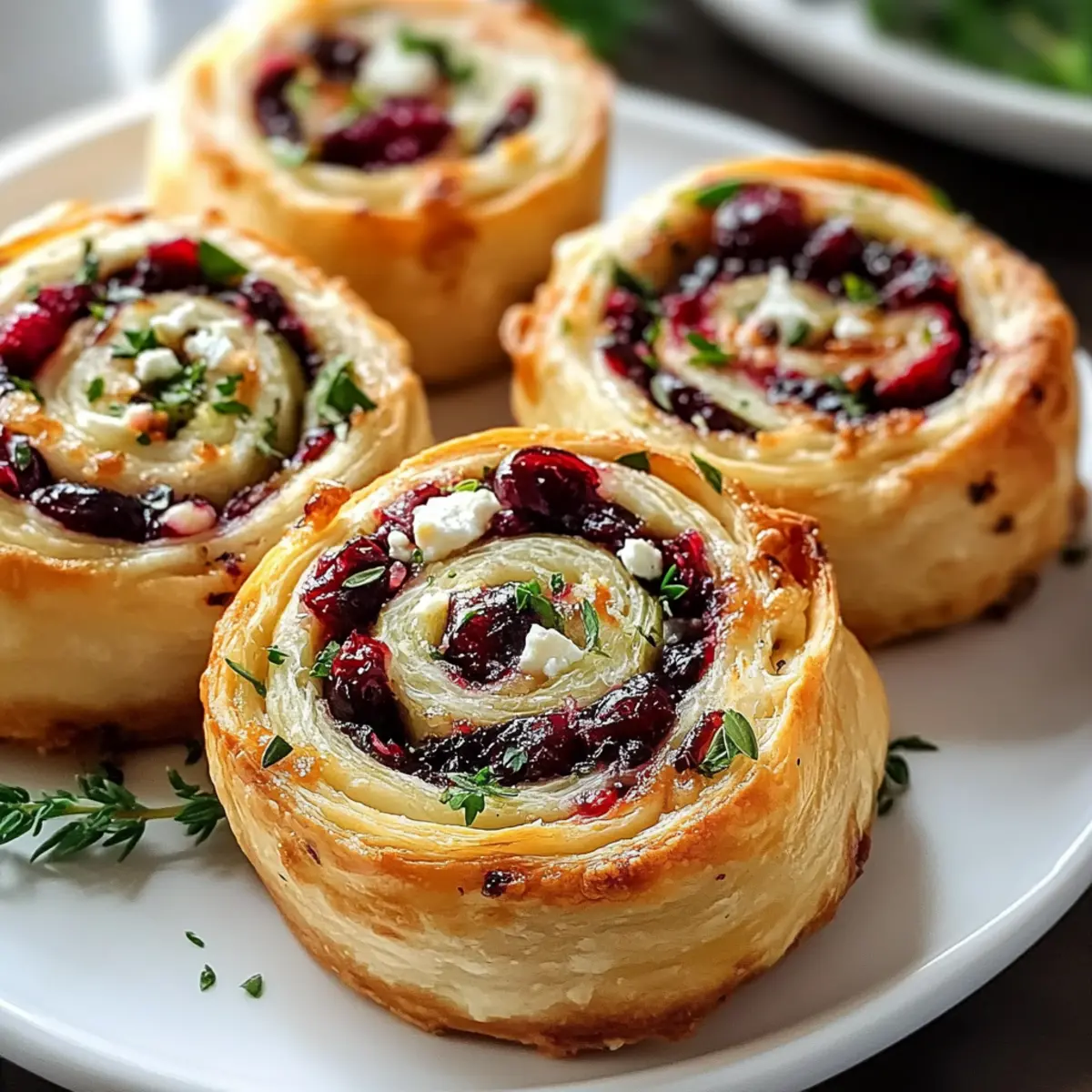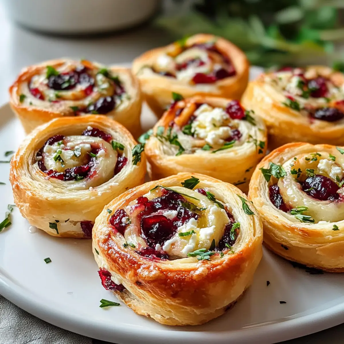 Der Duft von frisch gebackenem Gebäck erfüllt die Küche, während ich an meinem nächsten Festessen arbeite. Diese Weihnachts-Cranberry-Feta-Pinwheels sind nicht nur ein genussvoller Hingucker, sondern auch ein wahres Highlight auf jedem Feiertagsbuffet. Die Kombination aus der süß-säuerlichen Note der Cranberries und dem salzigen Feta in einer zarten Blätterteig-Hülle schafft eine harmonische Balance, die alle Gäste verzaubern wird. Dank der einfachen Zubereitung sind sie perfekt für alle, die während der hektischen Feiertage Eindruck schinden möchten, ohne Stunden in der Küche zu verbringen. Und das Beste? Diese vegetarischen Leckerbissen können ganz einfach an verschiedene Ernährungsbedürfnisse angepasst werden. Neugierig, wie einfach es ist, diese festlichen Köstlichkeiten selbst zu machen? Lassen Sie uns gleich loslegen! Warum sind diese Pinwheels so besonders? Einfachheit: Die Zubereitung ist unkompliziert und erfordert keine komplexen Techniken, ideal für Küchenneulinge. Vielfalt: Variieren Sie die Füllung ganz nach Ihrem Geschmack! Feta kann durch Ziegenkäse oder eine vegane Alternative ersetzt werden. Festlicher Genuss: Diese Pinwheels sind nicht nur köstlich, sondern auch ein echter Hingucker auf jedem Buffet. Zeitersparnis: Bereiten Sie sie im Voraus vor! Sie lassen sich hervorragend einfrieren und schnell aufbacken. Crowd-Pleaser: Die Kombination aus süßen und salzigen Aromen begeistert garantiert jede Gästeschar, vom Gourmet bis zum Snackliebhaber. Stellen Sie sich vor, wie Ihre Gäste sie bewundern, während Sie gleichzeitig die Vorzüge dieser köstlichen Weihnachts-Cranberry-Feta-Pinwheels genießen! Weihnachts-Cranberry-Feta-Pinwheels Zutaten • Diese festlichen Pinwheels gefallen nicht nur durch ihren Geschmack, sondern sind auch kinderleicht zuzubereiten! Für den Teig Gefrorenes Blätterteig (2 Platten; ca. 500g) – Die Basis für die Pinwheels; nutzen Sie Butter-Blätterteig für den besten Geschmack und die optimale Fluffigkeit. Für die Füllung Frischkäse (226g, vollfett, weich) – Sorgt für eine cremige Textur; kann durch eine vegane Frischkäse-Alternative ersetzt werden. Feta-Käse (113g, zerkrümelt) – Verleiht eine salzige Note; eine milde Variante wäre Ziegenkäse. Getrocknete Cranberries (½ Tasse, fein gehackt) – Für Süße und eine schöne Farbe; frische Cranberries bieten einen intensiveren Geschmack. Frischer Rosmarin (2 EL, fein gehackt) – Hebt das Aroma hervor; kann auch durch Thymian ersetzt werden. Frischer Thymian (1 EL, fein gehackt) – Fügt Tiefe hinzu; italienische Gewürzmischung als Alternative ist möglich. Brauner Zucker (1 EL) – Betont die Süße und balanciert die Aromen; weißer Zucker eignet sich ebenfalls. Schwarzer Pfeffer (½ TL, frisch gemahlen) – Gibt einen leichten Kick; nach Geschmack anpassen. Knoblauchpulver (¼ TL, optional) – Für eine herzhaft-salzige Note; weglassen für eine mildere Variante. Salz (Prise, nach Geschmack) – Verstärkt den Gesamteindruck. Für die Glasur Großes Ei (1) – Für den Ei-Wasch, der den goldenen Glanz erzeugt; ein Flachsei eignet sich hervorragend für vegane Versionen. Wasser oder Milch (1 EL) – Zum Vermischen mit dem Ei für die Glasur; pflanzliche Milch als vegane Option verwenden. Für die Garnitur (optional) Frische Rosmarinzweige & ganze Cranberries – Für die ansprechende Dekoration der fertigen Pinwheels. Diese Weihnachts-Cranberry-Feta-Pinwheels werden garantiert ein Hit auf Ihrem festlichen Buffet und sind super einfach zuzubereiten! Schritt-für-Schritt-Anleitung für Weihnachts-Cranberry-Feta-Pinwheels Schritt 1: Füllung vorbereiten Den Frischkäse in eine Schüssel geben und mit einem Handmixer oder einem Schneebesen cremig schlagen, bis er leicht und luftig ist. Dann den zerkrümelten Feta, die gehackten Cranberries, den Rosmarin, Thymian, braunen Zucker, schwarzen Pfeffer, Knoblauchpulver und eine Prise Salz unterheben. Schmecken Sie die Füllung ab und passen Sie die Gewürze nach Belieben an. Schritt 2: Blätterteig log formen Eine der Blätterteigplatten auf einer bemehlten Arbeitsfläche ausrollen. Die Hälfte der Füllung gleichmäßig auf die Teigplatte streichen, dabei einen kleinen Rand lassen. Den Teig vorsichtig aber fest von einer Seite her aufrollen, sodass ein fester Log entsteht. Die Enden gut verschließen, um ein Auslaufen der Füllung zu verhindern. Schritt 3: Kühlen und schneiden Den Blätterteiglog in Frischhaltefolie einwickeln und für 15-20 Minuten in den Gefrierschrank legen, bis er fest ist. Dies erleichtert das Schneiden. Nach dem Kühlen den Log auswickeln und in ½-Zoll-dicke Scheiben schneiden. Diese Weihnachts-Cranberry-Feta-Pinwheels sollten gut zusammenhalten. Schritt 4: Zweiten Log gleichermaßen vorbereiten Wiederholen Sie die Schritte mit der zweiten Blätterteigplatte und der restlichen Füllung. Stellen Sie sicher, dass die Füllung gleichmäßig verteilt ist und die Enden fest verschlossen sind, um ein Auslaufen beim Backen zu vermeiden. Auch dieser Log geht in den Gefrierschrank, um fest zu werden. Schritt 5: Den Ofen vorheizen Heizen Sie den Ofen auf 200°C (400°F) vor und bereiten Sie ein Backblech mit Backpapier vor. Dies sorgt dafür, dass die Weihnachts-Cranberry-Feta-Pinwheels gleichmäßig gebacken werden und knusprig werden. Schritt 6: Ei-Wasch auftragen und backen In einer kleinen Schüssel das Ei mit einem Esslöffel Wasser oder Milch verquirlen, um die Ei-Wasch herzustellen. Die Schnittflächen der Pinwheels großzügig mit der Mischung bepinseln. Die Pinwheels auf das vorbereitete Backblech legen und 15-20 Minuten backen, bis sie goldbraun und flauschig sind. Halten Sie die Backbleche zur Halbzeit einmal um für eine gleichmäßige Bräunung. Schritt 7: Abkühlen und servieren Die gebackenen Weihnachts-Cranberry-Feta-Pinwheels aus dem Ofen nehmen und einige Minuten abkühlen lassen. Sie können sie warm oder bei Raumtemperatur servieren, eventuell mit frischen Rosmarinzweigen un