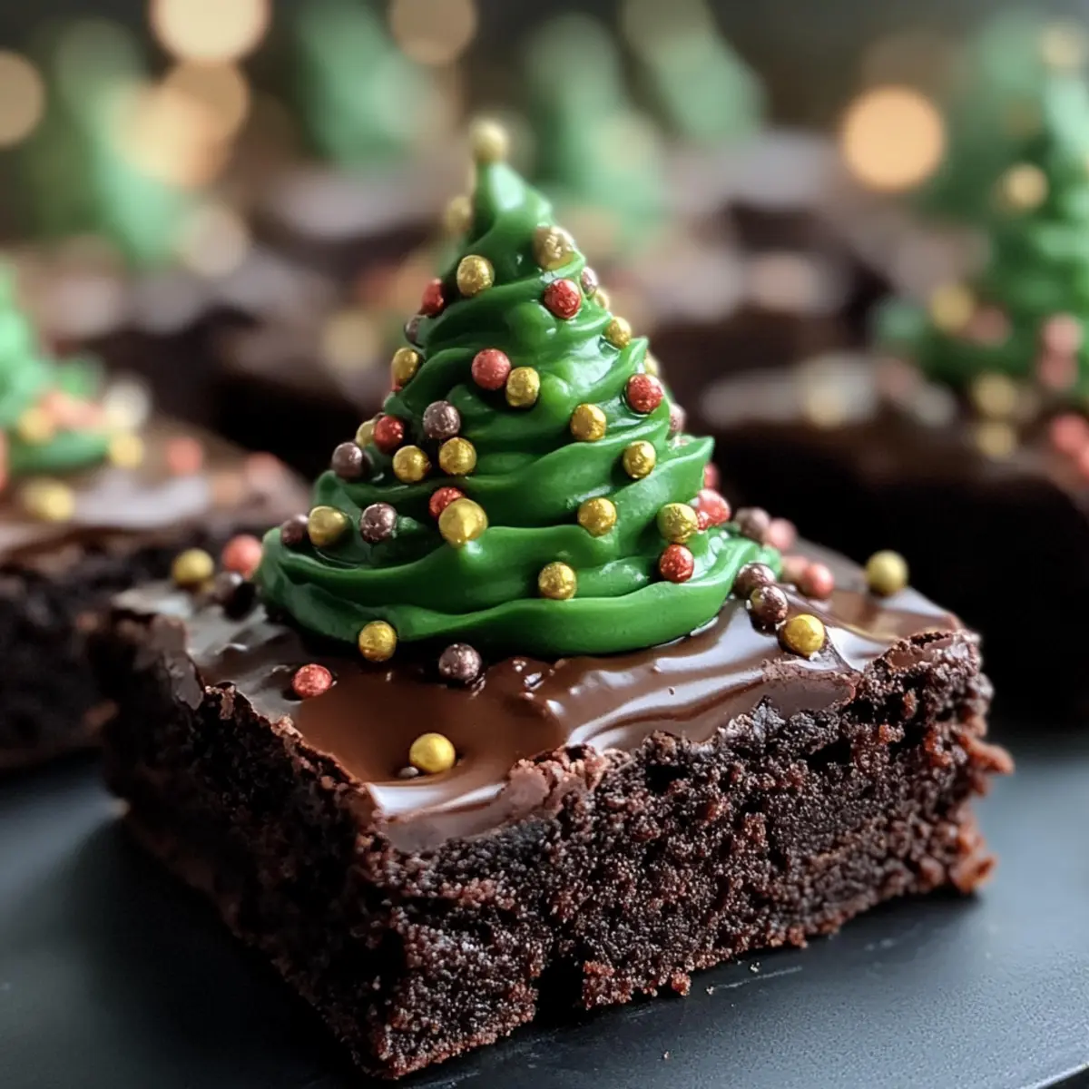 Ein verführerischer Duft von frisch gebackenem Schokoladengebäck erfüllt die Luft und zaubert sofort ein Lächeln auf mein Gesicht. Die Weihnachtszeit ist der perfekte Anlass, um mit der Familie und Freunden in der Küche kreativ zu werden – und was könnte da besser passen als meine festlichen Weihnachtsbaum Brownies? Diese köstlichen Leckereien sind nicht nur ein Augenschmaus in ihrer verspielten Baumform, sondern auch einfach zuzubereiten, was sie zu einem idealen Dessert für gesellige Anlässe macht. Mit der Möglichkeit, sie glutenfrei zuzubereiten, steht dem Genuss für alle nichts im Wege! Möchtest du erfahren, wie du diese himmlischen Brownies selbst backen und dekorieren kannst? Lass uns gleich loslegen! Warum sind Weihnachtsbaum Brownies so besonders? Einzigartige Form: Die verspielte Baumform macht diese Brownies zum Highlight jeder festlichen Veranstaltung. Einfache Zubereitung: Mit nur wenigen Zutaten sind sie auch für Backanfänger leicht umzusetzen. Kreative Variation: Du kannst die Dekoration mit bunten Streuseln und verschiedenen Glasuren anpassen, was jedes Mal ein neues Erlebnis schafft. Glutenfrei möglich: Dank der glutenfreien Alternativen können alle Mitfeiernden schlemmen. Familienfreundlich: Diese Leckerei begeistert sowohl Kinder als auch Erwachsene und bringt alle zum Lächeln! Lange Haltbarkeit: Sie sind bis zu einer Woche haltbar, also ideal für die vorbereitenden Feiertagsback-Aktionen. Wenn du mehr über verschiedene Varianten erfahren möchtest, schau dir auch unseren festlichen Rezeptführer für die Weihnachtszeit an! Weihnachtsbaum Brownie-Zutaten Für den Teig: Zartbitterschokolade – gibt den Brownies eine reichhaltige und tiefgehende Schokoladennote. Für eine süßere Variante kann Milchschokolade verwendet werden. Butter – sorgt für Feuchtigkeit und einen vollmundigen Geschmack. Kann durch eine leichtere Fettquelle wie Kokosöl ersetzt werden. Zucker – süßt die Brownies und trägt zur fudgy Textur bei. Wer es weniger süß mag, kann die Menge reduzieren. Eier – verbinden die Zutaten und sorgen für den Aufstieg. Für die besten Ergebnisse frische Eier verwenden; vegane Optionen sind möglich mit Leinsamen-Eiern. Mehl – gibt den Brownies Struktur. Für eine glutenfreie Option bitte glutenfreies Mehl verwenden. Kakaopulver – intensiviert den Schokoladengeschmack und sorgt für die tiefschwarze Farbe. Die Menge kann je nach Geschmack angepasst werden. Prise Salz – harmonisiert die Süße und hebt den Geschmack hervor. Für die Dekoration: Grüne Glasur – verleiht den Brownies eine festliche Note und lässt sie wie Weihnachtsbäume aussehen. Weiß- oder Vollmilchschokolade kann alternativ verwendet werden. Bunte Streusel – sorgen für visuelle Attraktivität und einen zusätzlichen Texturkontrast. Diese Weihnachtsbaum Brownies sind die perfekte süße Versuchung für deine Feiertagsfeier! Schritt-für-Schritt-Anleitung für Weihnachtsbaum Brownies Step 1: Ofen vorheizen Heize den Backofen auf 180 °C vor und fette eine Brownie-Form gut ein, sodass die Brownies nach dem Backen leicht herausgelöst werden können. Während der Ofen vorheizt, hast du genug Zeit, die Zutaten vorzubereiten und alles bereit zu stellen. Step 2: Schokolade und Butter schmelzen Schmelze die Zartbitterschokolade zusammen mit der Butter in einer hitzebeständigen Schale über einem Wasserbad. Rühre die Mischung langsam um, bis sie schön samtig und vollständig glatt ist. Achte darauf, dass kein Wasser in die Schokolade gelangt, damit sie nicht klumpig wird. Step 3: Zucker und Eier vermengen In einer separaten Schüssel verrühre den Zucker mit den Eiern gut, bis die Mischung hell und cremig ist. Dies sollte etwa 2-3 Minuten dauern, damit die Luft gut eingearbeitet wird, was zu einer fluffigen Konsistenz der Weihnachtsbaum Brownies beiträgt. Step 4: Schokoladenmischung einarbeiten Mische die geschmolzene Schokolade und Butter langsam unter die Zucker-Ei-Mischung, bis alles gut verbunden ist. Hier ist es wichtig, sanft zu rühren, um die Luftigkeit der Eier nicht zu verlieren und eine gleichmäßige, schokoladige Masse zu erhalten. Step 5: Trockene Zutaten hinzuzufügen Sichte das Mehl, Kakaopulver und die Prise Salz über die Schokoladenmischung. Rühre die Zutaten vorsichtig unter, bis alles gut vermischt ist. Achte darauf, die Mischung nicht zu überarbeiten, da dies die Textur der Brownies beeinträchtigen könnte. Step 6: Teig in die Form geben Gib den fertigen Teig in die vorbereitete Brownie-Form und streiche die Oberfläche mit einem Teigschaber glatt. Stelle sicher, dass der Teig gleichmäßig verteilt ist, um ein gleichmäßiges Backergebnis zu erhalten, bevor du die Form in den vorgeheizten Ofen gibst. Step 7: Brownies backen Backe die Weihnachtsbaum Brownies etwa 25-30 Minuten lang, bis ein Zahnstocher in der Mitte sauber herauskommt. Achte darauf, die Brownies nicht zu lange zu backen, um die feuchte, fudgy Konsistenz zu bewahren, die sie so besonders macht. Step 8: Abkühlen und formen Lasse die Brownies nach dem Backen vollständig in der Form abkühlen. Sobald sie abgekühlt sind, kannst du die Brownies in eine Baumform schneiden, indem du einfach die Ecken abrundest und die Oberseite spitz zulaufend gestalten. Step 9: Dekorieren Dekoriere die geschnittenen Brownies mit grüner Glasur, indem du sie in Baumform aufträgst. Streue farbige Streusel darüber, um kleine “Ornamente” zu erstellen. Lass deiner Kreativität freien Lauf und gestalte deine Weihnachtsbaum Brownies so festlich, wie du willst! Perfekte Vorbereitung der Weihnachtsbaum Brownies Die Weihnachtsbaum Brownies sind ideal für eine stressfreie Vorbereitungszeit während der Feiertage! Du kannst den Teig bis 3 Tage im Voraus vorbereiten: einfach die geschmolzene Schokolade und Butter mit Zucker und Eiern vermengen, anschließend die trockenen Zutaten hinzufügen. Den fertigen Teig kannst du dann abgedeckt im Kühlschrank aufbewahren, um die Frische zu bewahren. Wenn d