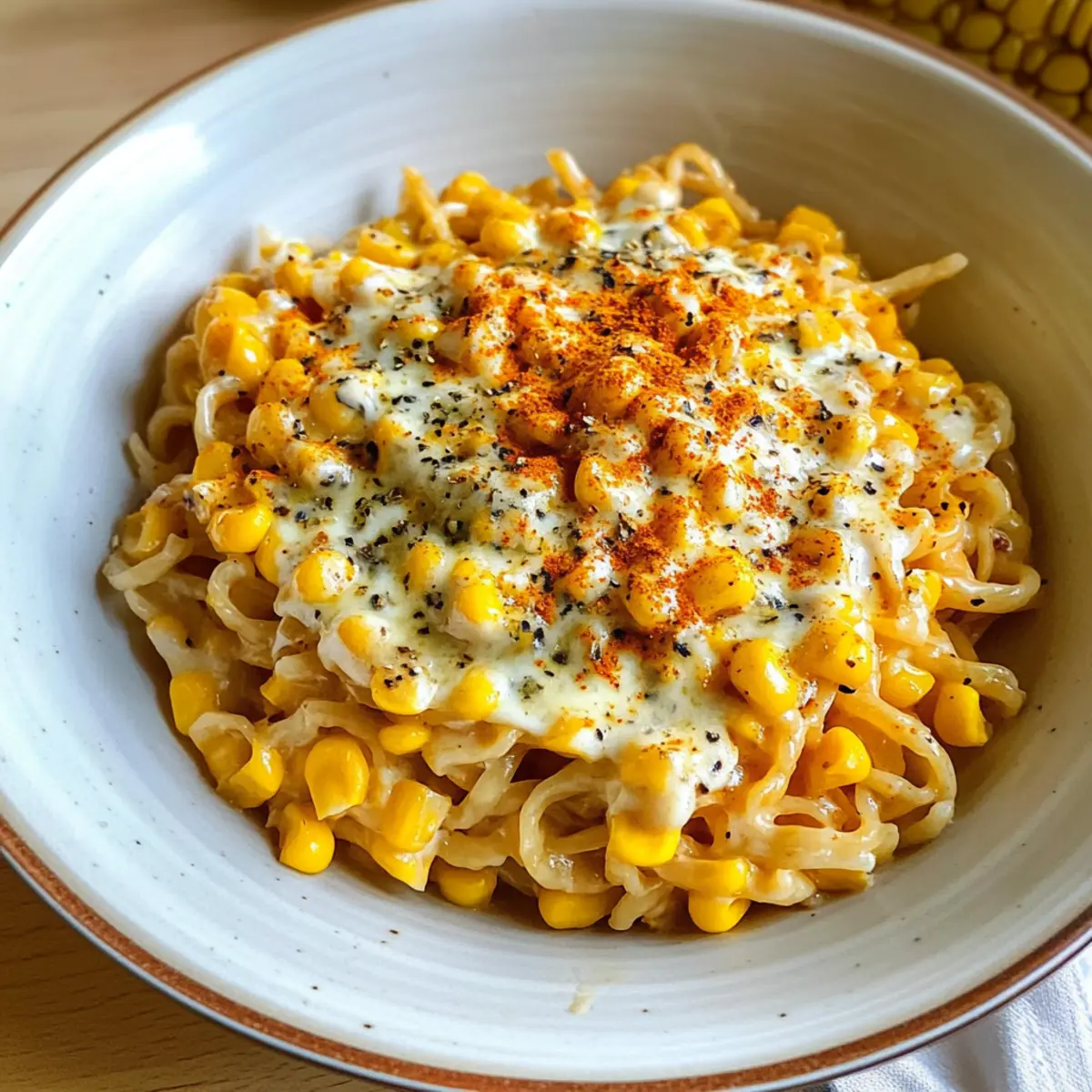 Perfekte Textur: Die zähen Nudeln harmonieren perfekt mit dem cremigen Käse und dem knusprigen Mais, was jeder Gabel ein besonderes Erlebnis verleiht.