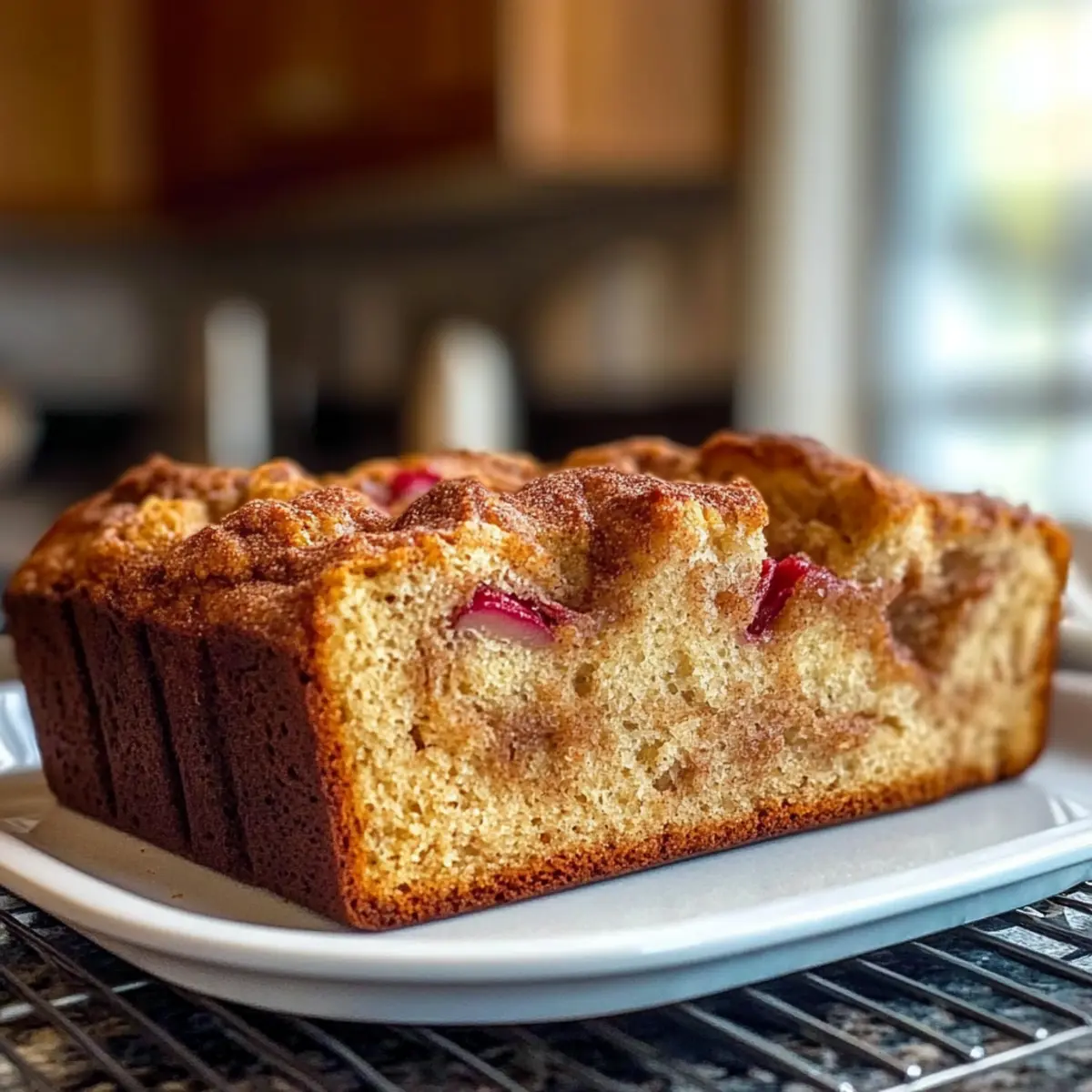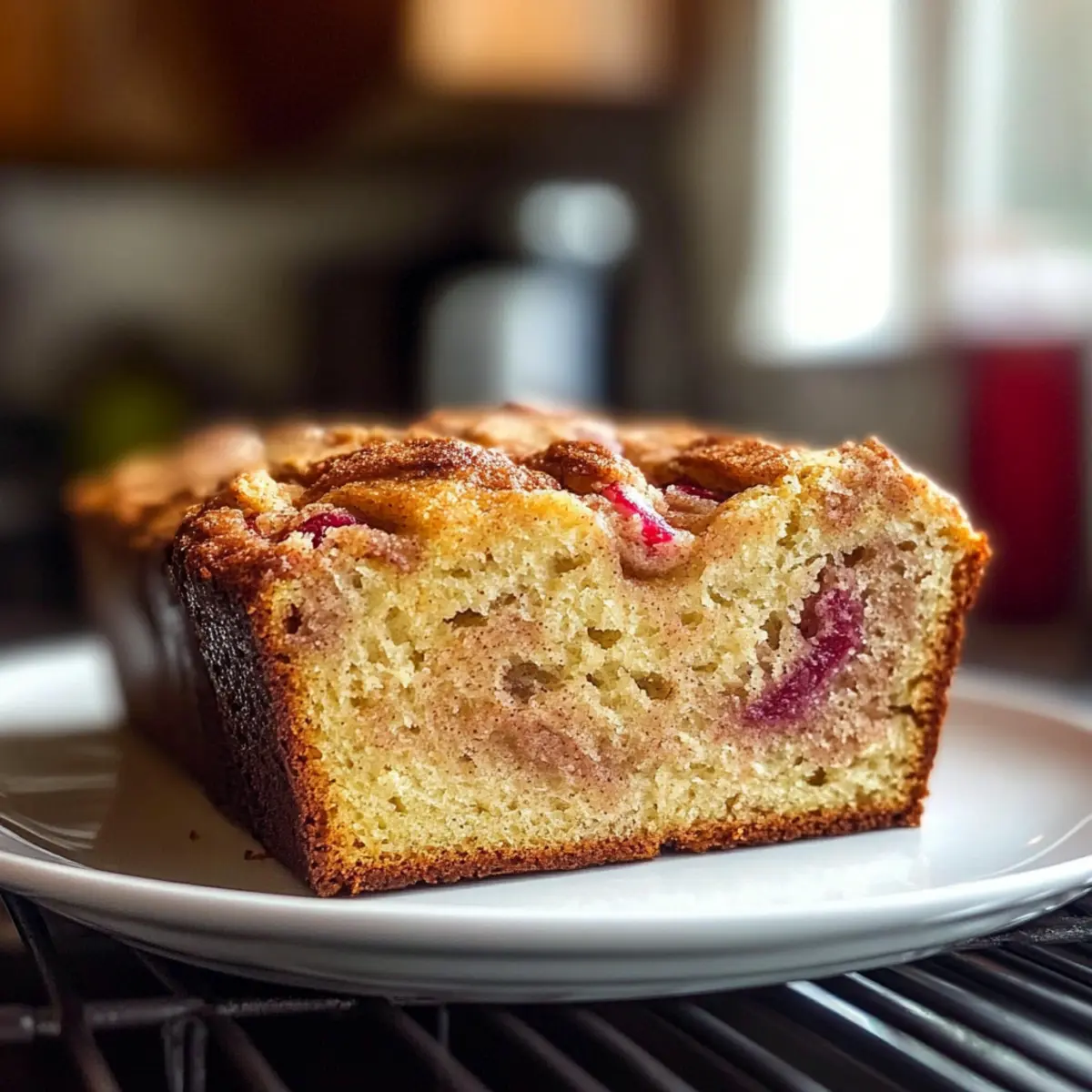 Hast du jemals den unwiderstehlichen Duft frisch gebackenen Brotes wahrgenommen, der durch deine Küche zieht? Es gibt kaum etwas Besseres als ein warmes Stück Zimt Rhabarber Brot, das den Tag erhellt. Diese einfache Rezeptur vereint die spritzige Frische des Rhabarbers mit der warmen, würzigen Note von Zimt, um einen saftigen Laib zu kreieren, der perfekt für Frühstück, Brunch oder als süßer Snack zwischendurch ist. Ganz ohne Stress gelingt dieses feine, vegetarische Brot im Handumdrehen und sorgt damit für den idealen Start in den Tag oder eine kleine Auszeit am Nachmittag. Bist du bereit, die Küche in eine wahre Bäckerei zu verwandeln? Lass uns gemeinsam dieses schmeichelhafte Rezept entdecken! Warum wirst du dieses Rezept lieben? Vielseitigkeit: Dieses Zimt Rhabarber Brot ist nicht nur lecker, sondern auch unglaublich anpassbar. Du kannst die Hauptzutat variieren, indem du Erdbeeren oder Äpfel hinzufügst – perfekt für eine saisonale Entdeckung! Einfache Zubereitung: Mit nur wenigen Grundzutaten aus der Vorratskammer ist es ein Kinderspiel, selbst für weniger erfahrene Bäcker. Saftige Textur: Jeder Bissen ist feucht und zart, dank der Kombination aus Rhabarber und saurer Sahne – eine wahre Gaumenfreude! Schnelle Zubereitung: In weniger als einer Stunde kannst du ein frisches, aromatisches Brot genießen, das den perfekten Begleiter zu Kaffee oder Tee bietet. Familienfreundlich: Dieses Brot ist ein Hit bei Jung und Alt und macht es zur idealen Wahl für Brunch oder als Snack für die Familie. Egal ob du nach einer neuen Frühstücksidee suchst oder einfach nur etwas Leckeres für den Nachmittag zaubern möchtest, dieses Rezept wird dich nicht enttäuschen! Zimt Rhabarber Brot Zutaten • Für dein Zimt Rhabarber Brot benötigst du folgende Zutaten: Für den Teig: Allzweckmehl – sorgt für die Struktur des Brotes. Backpulver – hilft, das Brot aufzugehen und macht es luftig. Natron – ein zusätzliches Triebmittel für eine perfekte Konsistenz. Salz – verstärkt die Süße und balanciert die Aromen. Gemahlener Zimt – sorgt für die warme, würzige Note im Brot. Pflanzenöl oder geschmolzene Butter – hält das Brot schön saftig. Zucker – süßt das Brot und harmoniert mit dem Rhabarber. Saure Sahne oder griechischer Joghurt – fügt Feuchtigkeit und einen leicht säuerlichen Geschmack hinzu; Buttermilch kann hier auch verwendet werden. Großes Ei – bindet die Zutaten und sorgt für die Textur. Vanilleextrakt – intensiviert die Süße und den Geschmack. Gehackter Rhabarber – die Hauptfrucht, die dem Brot seine spritzige Note verleiht; in 1/4 bis 1/2 Zoll große Stücke schneiden. Optionaler Belag: Zimt-Zucker oder Streusel – für eine süße Kruste und extra Geschmack. Mit diesen einfachen Zutaten bereitest du ein köstliches Zimt Rhabarber Brot zu, das dich und deine Lieben begeistern wird! Step-by-Step Instructions for Zimt Rhabarber Brot Step 1: Ofen vorheizen Heize den Ofen auf 175 °C (350 °F) vor. Fette eine 9×5-Zoll Kastenform gründlich ein und bestäube sie leicht mit Mehl oder lege sie mit Backpapier aus, damit das Zimt Rhabarber Brot später problemlos herausgenommen werden kann. Step 2: Trockenbestandteile mischen In einer mittelgroßen Schüssel das Allzweckmehl, Backpulver, Natron, Salz und den gemahlenen Zimt gut vermengen. Verwende einen Schneebesen, um Klumpen zu vermeiden und eine gleichmäßige Mischung zu erzielen. Dies sorgt für eine gute Konsistenz deines Brotes. Step 3: Feuchte Zutaten kombinieren In einer großen Schüssel das Pflanzenöl (oder die geschmolzene Butter), Zucker, saure Sahne, das Ei und den Vanilleextrakt mit einem Handmixer oder Schneebesen gründlich verrühren, bis die Mischung schön glatt ist. Die Feuchtigkeit der Zutaten ist entscheidend für das saftige Ergebnis des Zimt Rhabarber Brots. Step 4: Teig formen Gib die trockenen Zutaten langsam zu den feuchten Zutaten und verrühre sie gerade so lange, bis sie sich kombinieren. Achte darauf, nicht zu lange zu rühren, um ein zähes Brot zu vermeiden. Hebe dann vorsichtig die gehackten Rhabarberstückchen unter, um gleichmäßige Verteilung zu erreichen. Step 5: In die Form füllen Gieße den Teig in die vorbereitete Kastenform und glätte die Oberfläche mit einem Löffel oder einem Teigschaber. Wenn gewünscht, streue etwas Zimt-Zucker oder Streusel über den Teig, um dem Zimt Rhabarber Brot eine köstliche, knusprige Kruste zu verleihen. Step 6: Backen Backe das Brot im vorgeheizten Ofen für etwa 50-60 Minuten. Es ist bereit, wenn ein Holzspiess, der in die Mitte gesteckt wird, sauber herauskommt und die Oberseite goldbraun ist. Step 7: Abkühlen lassen Lasse das Brot nach dem Backen 10 Minuten in der Form abkühlen. Anschließend nimm es aus der Form und lege es auf ein Kuchengitter, um vollständig abzukühlen. So bleibt das Zimt Rhabarber Brot schön feucht und lässt sich leicht schneiden. Was passt zu Zimt Rhabarber Brot? Hast du schon einmal überlegt, welche leckeren Begleiter dein frisch gebackenes Zimt Rhabarber Brot noch besser zur Geltung bringen könnten? Lass dich von diesen köstlichen Ideen inspirieren und verwandle dein Gericht in eine richtig festliche Mahlzeit. Creme Fraiche: Verleiht dem Brot eine cremige, leicht säuerliche Note, die perfekt mit der Frische des Rhabarbers harmoniert. Frischer Obstsalat: Eine Mischung aus saisonalen Früchten bringt Farbe und Leichtigkeit auf den Tisch – eine erfrischende Ergänzung! Nussige Granola: Streue etwas knuspriges Granola darüber für einen wunderbaren Kontrast in der Textur und extra Geschmack. Tee oder Kaffee: Ein heißes Getränk, wie ein aromatischer Tee oder frisch gebrühter Kaffee, rundet das Frühstückserlebnis ab und erinnert an gemütliche Momente. Joghurt mit Honig: Eine kleine Schüssel griechischer Joghurt mit einem Spritzer Honig bietet eine köstliche, gesunde Variante, die das Zimt Rhabarber Brot wunderbar ergänzt. Vanilleeis: Für einen Dessert-Twist serviere eine war