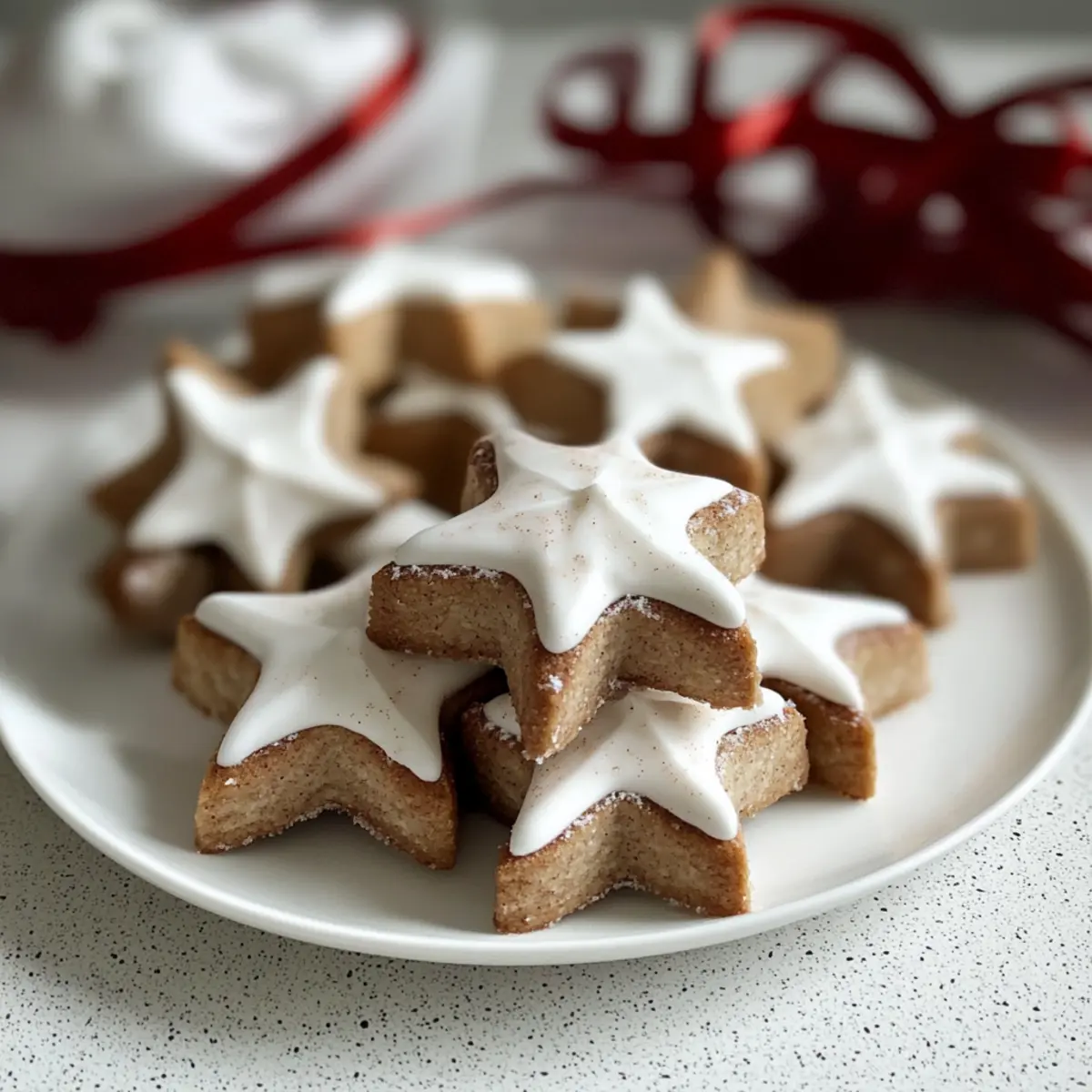 Während ich den ersten Schnee durch mein Fenster beobachtete, überkam mich eine wunderbare Vorfreude auf die Winterzeit. Es gibt nichts Besseres, als den verführerischen Duft von frisch gebackenen Zimtsternen (Zimtsterne) in der Luft zu haben. Diese traditionellen deutschen Weihnachtsplätzchen sind nicht nur ein Fest für die Sinne, sondern auch kinderleicht zuzubereiten – perfekt für alle, die gerne Zeit in der Küche verbringen und es lieben, ihre Lieben mit selbstgemachten Leckereien zu überraschen. Die Zimtsterne sind wunderbar weich und chewy, was sie zu einem idealen Begleiter für festliche Kaffeetafeln oder als Geschenk für Freunde und Familie macht. Neugierig auf das Rezept, das euch in die zauberhafte Welt der Weihnachtsbäckerei entführt? Warum sind Zimtsterne so besonders? Tradition: Diese Zimtsterne sind ein fester Bestandteil der deutschen Weihnachtskultur und bringen Erinnerungen an festliche Zeiten. Einfachheit: Das Rezept ist kinderleicht und benötigt keine speziellen Backkünste – perfekt für alle Kochliebhaber! Aromatisch: Der herrliche Duft von Zimt und Nelken erfüllt euer Zuhause und sorgt für eine gemütliche Atmosphäre. Teilen: Diese weichen, chewy Kekse sind ideal für die Feiertage und lassen sich wunderbar verschenken oder mit Freunden bei einer Tasse Kaffee genießen. Kreativität: Ihr könnt mit verschiedenen Nussvariationen experimentieren oder die Kekse in Schokolade tauchen für einen zusätzlichen Genuss. Für noch mehr tolle Rezepte, schaut euch unsere anderen Weihnachtsdesserts an! Zimtsterne Zutaten • Zucker (Sugar) – sorgt für die nötige Süße; für eine gesündere Option könnt ihr Kokoszucker verwenden. • Mandeln (Almonds) – verleiht dem Teig eine nussige Note; könnt ihr auch durch Walnüsse oder Pekanüsse ersetzen. • Haselnüsse (Hazelnuts) – ergänzt den Mandelgeschmack; ganzjährige Nutzung von Mandeln ist ebenfalls möglich. • Eiweiß (Egg Whites) – gibt dem Teig Struktur und hilft beim Herstellen der glasierten Oberfläche; kein Ersatz empfohlen. • Zimt (Cinnamon) – ist die wichtigste Zutat für den charakteristischen Geschmack der Zimtsterne. • Nelken (Cloves) – sorgen für zusätzliche Wärme und Tiefe; für einen milderen Geschmack sind sie optional. • Zitronenschale (Lemon Zest) – bringt frische Zitrusnoten; alternativ könnt ihr auch Orangenschale verwenden. • Salz (Salt) – verstärkt den Gesamteindruck der Aromen. Schritt-für-Schritt-Anleitung für Zimtsterne Step 1: Ofen vorheizen und Nüsse rösten Heizt den Ofen auf 180°C vor und legt die Mandeln sowie Haselnüsse auf ein Backblech. Rösten Sie die Nüsse für etwa 8-10 Minuten, bis sie leicht goldbraun sind. Nehmt sie aus dem Ofen und lasst sie abkühlen. Dieser Schritt ist wichtig, um die Aromen der Nüsse für die Zimtsterne zu intensivieren. Step 2: Teigmischung vorbereiten In einer großen Schüssel mischt ihr Marzipan, Zucker und Eiweiß gut durch, bis die Masse glatt ist. Fügt dann Zimt, Nelken, Salz und Zitronenschale hinzu und vermengt alles gründlich. Diese Mischung bildet die Basis für eure Zimtsterne und sorgt für den unverwechselbaren Geschmack. Step 3: Nüsse hinzufügen und kühlen Faltet die abgekühlten, fein gehackten Nüsse vorsichtig unter den Teig. Nachdem alles gut vermischt ist, wrappt die Schüssel in Frischhaltefolie und stellt sie über Nacht in den Kühlschrank. Das Kühlen verbessert den Geschmack und die Struktur der Zimtsterne erheblich. Step 4: Eiweiß schlagen Am nächsten Tag schlagt ihr die Eiweiße in einer sauberen Schüssel mit einem elektrischen Mixer, bis sie schaumig werden. Fügt nach und nach den Puderzucker hinzu und schlagt weiter, bis eine steife und glänzende Baisermasse entsteht. Gebt zum Schluss etwas Zitronensaft hinzu, um die Stabilität zu erhöhen. Step 5: Teig ausrollen Rollt den gekühlten Teig auf einer mit gemahlenen Haselnüssen bestäubten Arbeitsfläche etwa 1 cm dick aus. Der Teig kann klebrig sein, daher ist es hilfreich, die Oberfläche gut zu bestäuben, um das Ausrollen zu erleichtern. Dieser Schritt sorgt dafür, dass die Zimtsterne die richtige Konsistenz haben. Step 6: Sterne ausstechen und bestreichen Verwendet einen Ausstecher in Form von Sternen, um eure Plätzchen aus dem Teig auszuschneiden. Legt die Sterne auf ein mit Backpapier ausgelegtes Blech. Bestreicht die Oberseiten der Sterne vorsichtig mit der vorbereiteten Baisermasse, um eine schimmernde Glasur zu erhalten, die den Zimtsterne ein schönes Finish verleiht. Step 7: Zimtsterne backen Backt die Zimtsterne im vorgeheizten Ofen für etwa 15 Minuten, bis die Unterseiten leicht gebräunt sind. Achtet darauf, dass die Oberseiten der Kekse schön glänzend bleiben. Nach dem Backen lasst ihr die Zimtsterne auf dem Blech vollständig abkühlen und trocknen, damit sie die perfekte weiche und chewy Textur erhalten. Was passt gut zu Zimtsterne? Ergänze deinen festlichen Tisch mit köstlichen Begleitern, die den Geschmack der Zimtsterne wunderbar unterstreichen. Cremige Vanillesauce: Diese süße, samtige Sauce verstärkt den Zimtgeschmack und bietet eine köstliche Balance. Ideal zum Dippen oder als Topping. Tee oder Kaffee: Das warme Aroma von Gewürztee oder frisch gebrühtem Kaffee harmoniert perfekt mit den Zimtsternen und lädt zum Genießen ein. Frischer Obstsalat: Eine Mischung aus saftigen Zitrusfrüchten und Äpfeln bringt Frische und eine angenehme Säure, die den süßen Geschmack der Kekse auflockert. Schokoladenstückchen: Dunkle Schokolade ergänzt die Gewürze und verleiht den Zimtsternen eine tiefere Geschmacksebene; ein Genuss für Schokoladenliebhaber! Marzipanfiguren: Diese traditionellen Leckereien sind eine süße Ergänzung und bieten eine ähnliche Textur, die harmonisch mit den Zimtsternen kombiniert werden kann. Glühwein: Das wärmende, würzige Aroma von Glühwein ist die perfekte Begleitung zu den Zimtsternen und verleiht der Runde eine festliche Note. Karamellsauce: Diese süße 